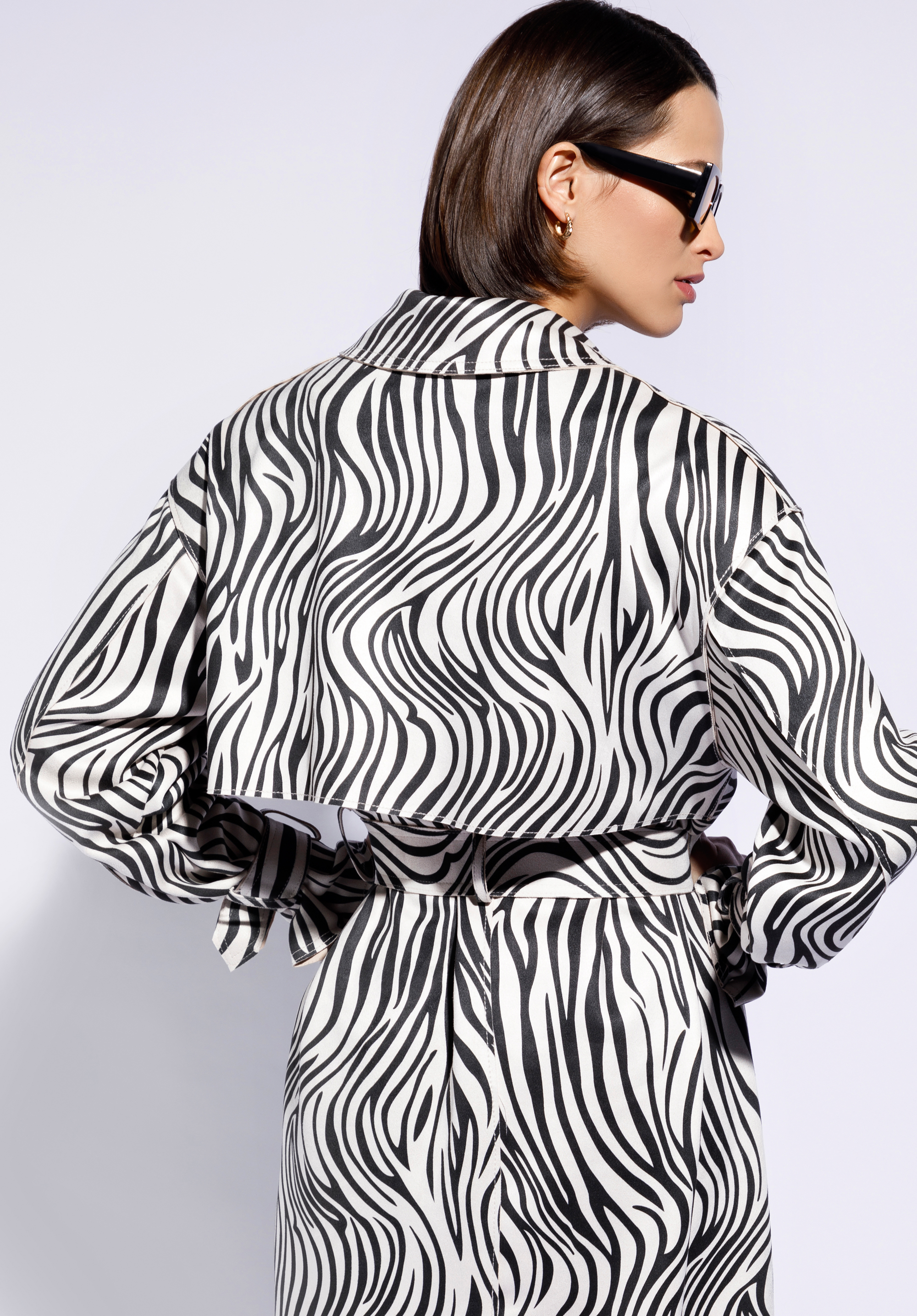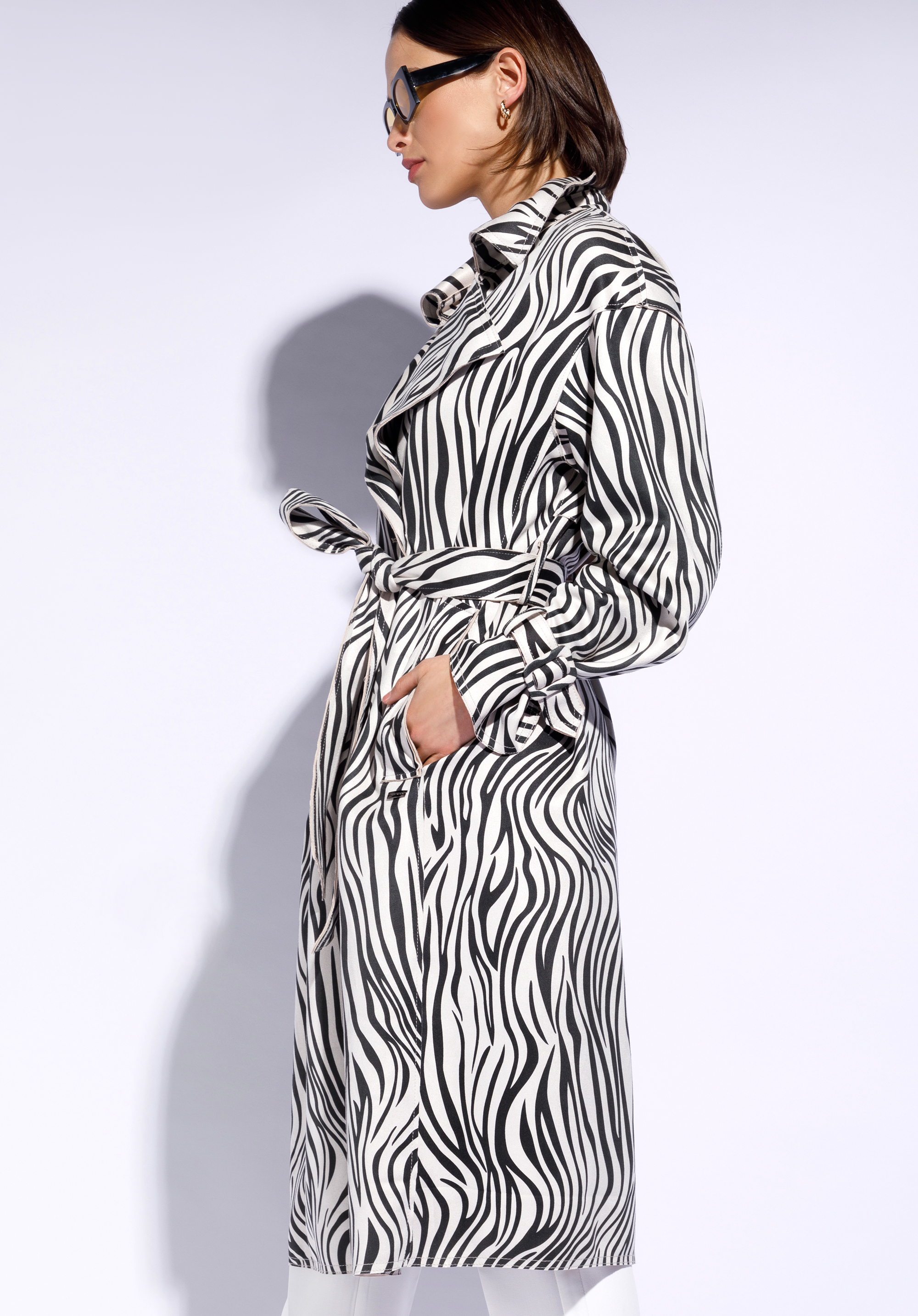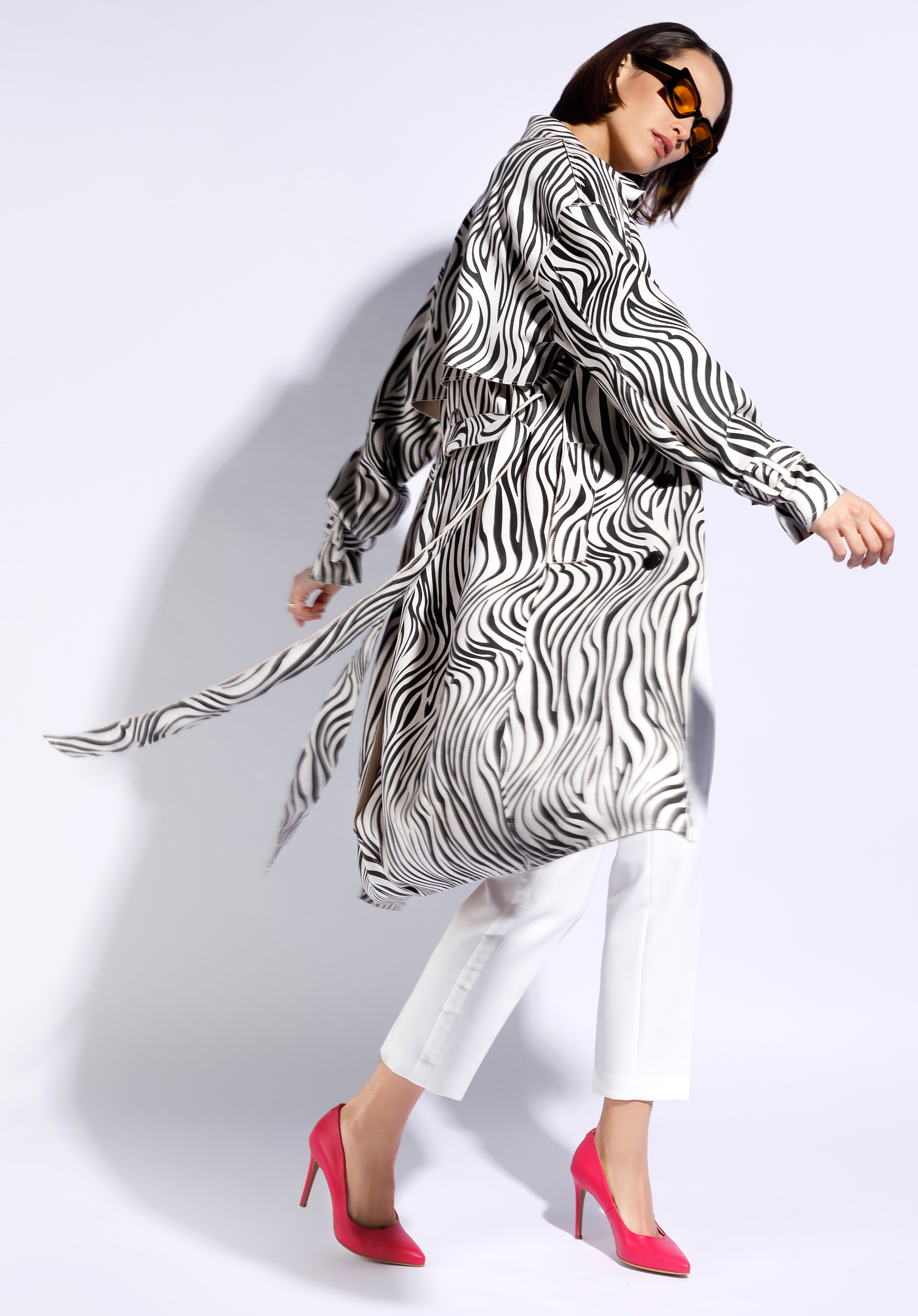 Красивий дизайн - це ще не все - регульовані бретелі на рукавах, численні строчки і довга кокетка ззаду надають йому додатковий, незабутній шарм. А м''який приємний на дотик матеріал не сковує рухів і приємно лягає на тіло. Жіноче двобортне пальто з тваринним принтом на гудзиках або підв’язане поясом виглядає чудово будь-де та завжди!