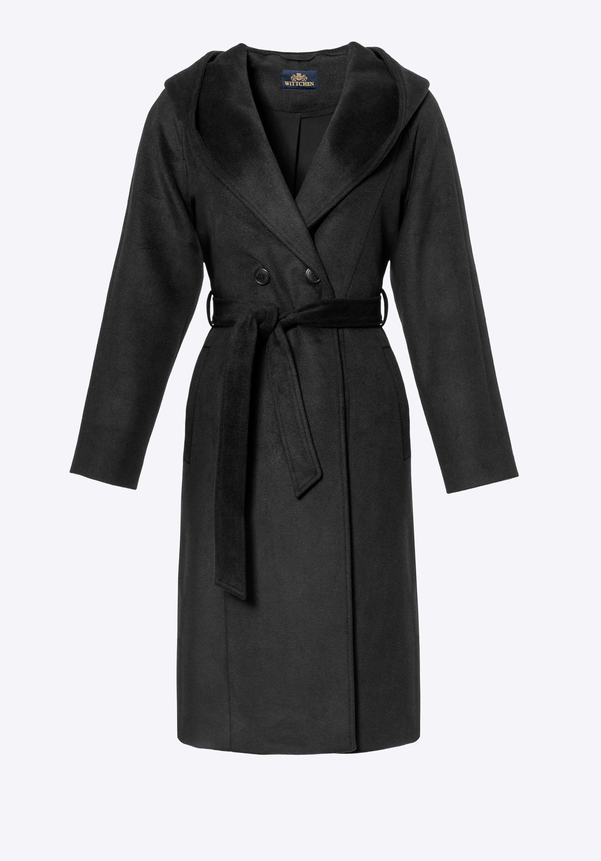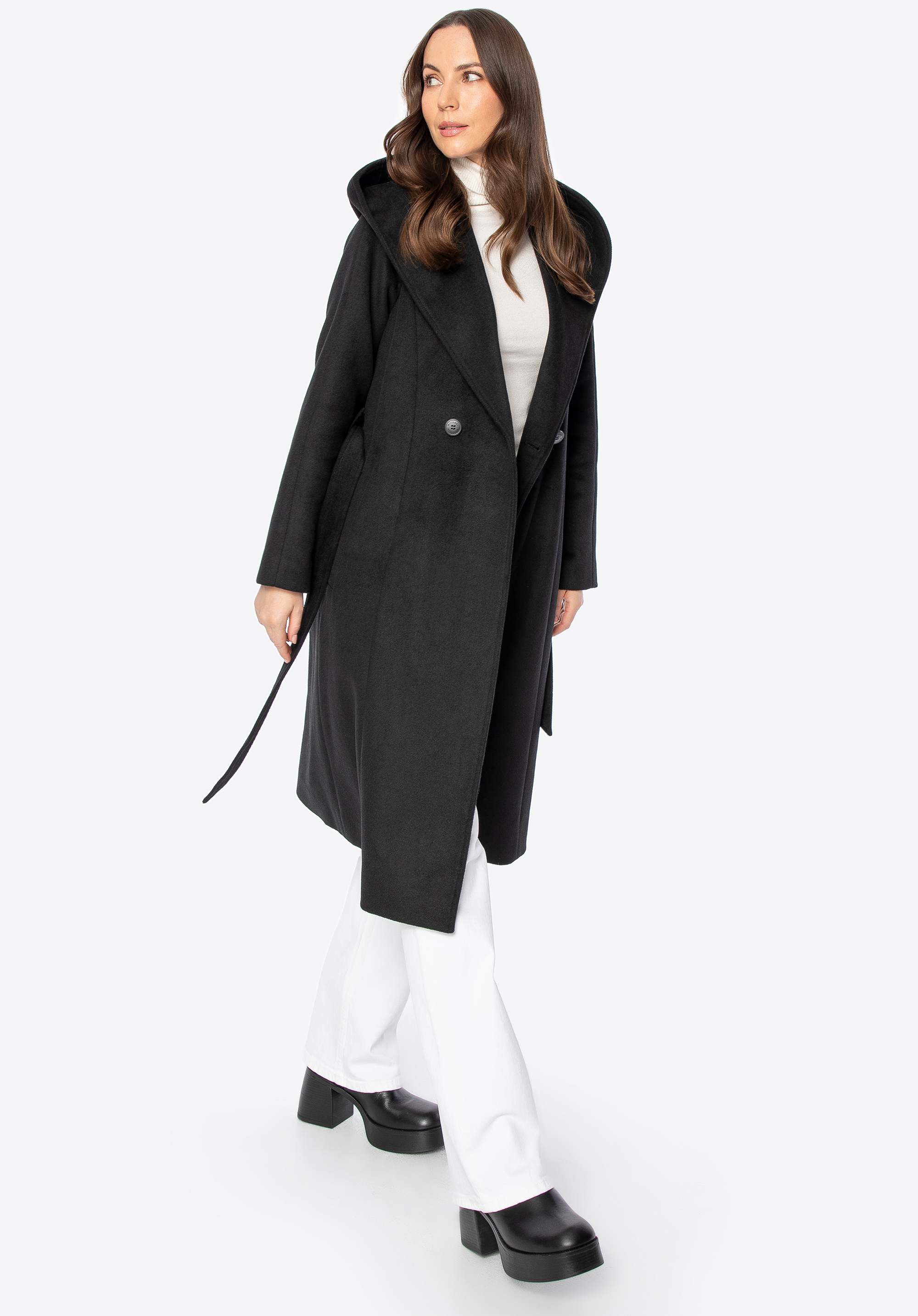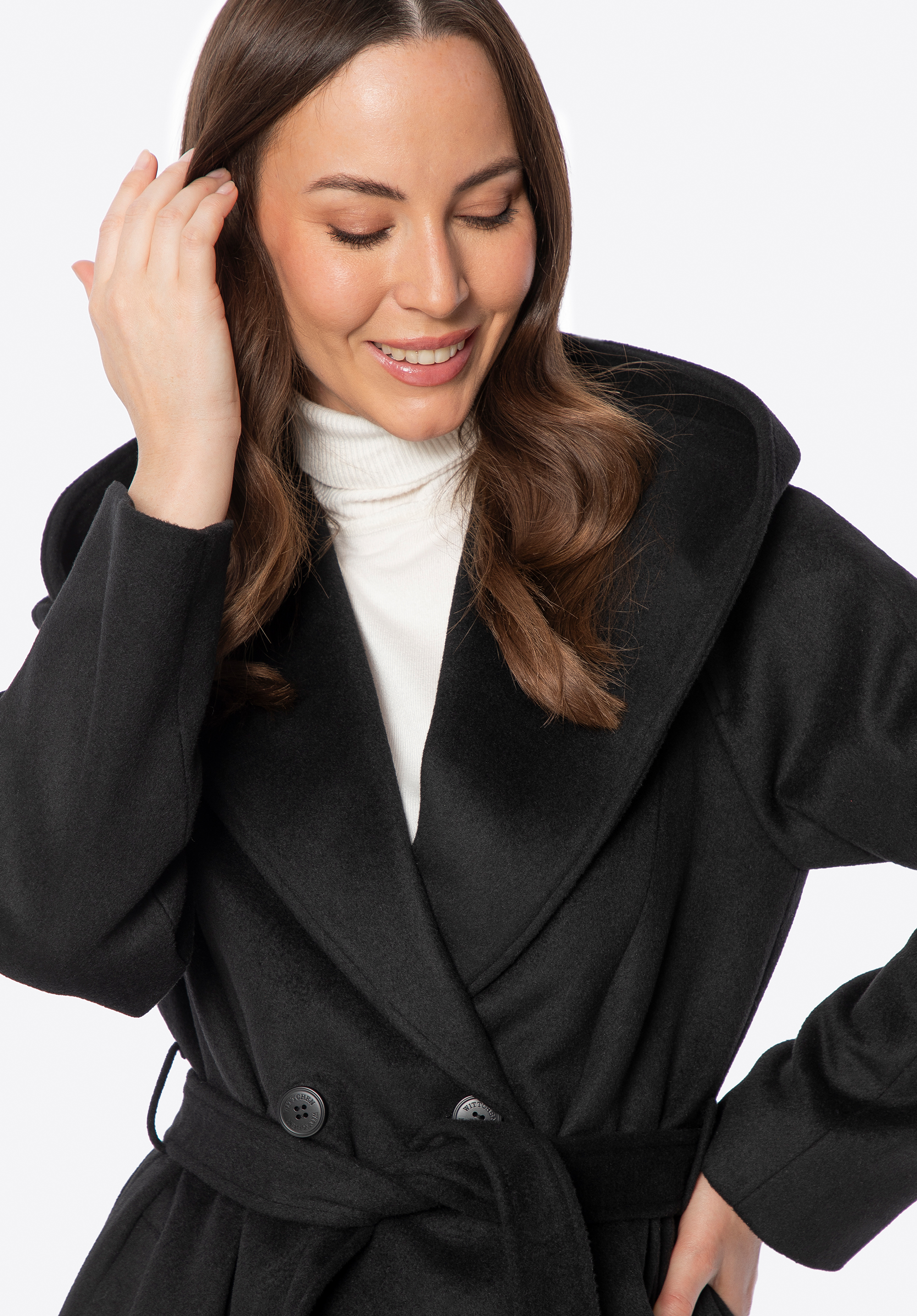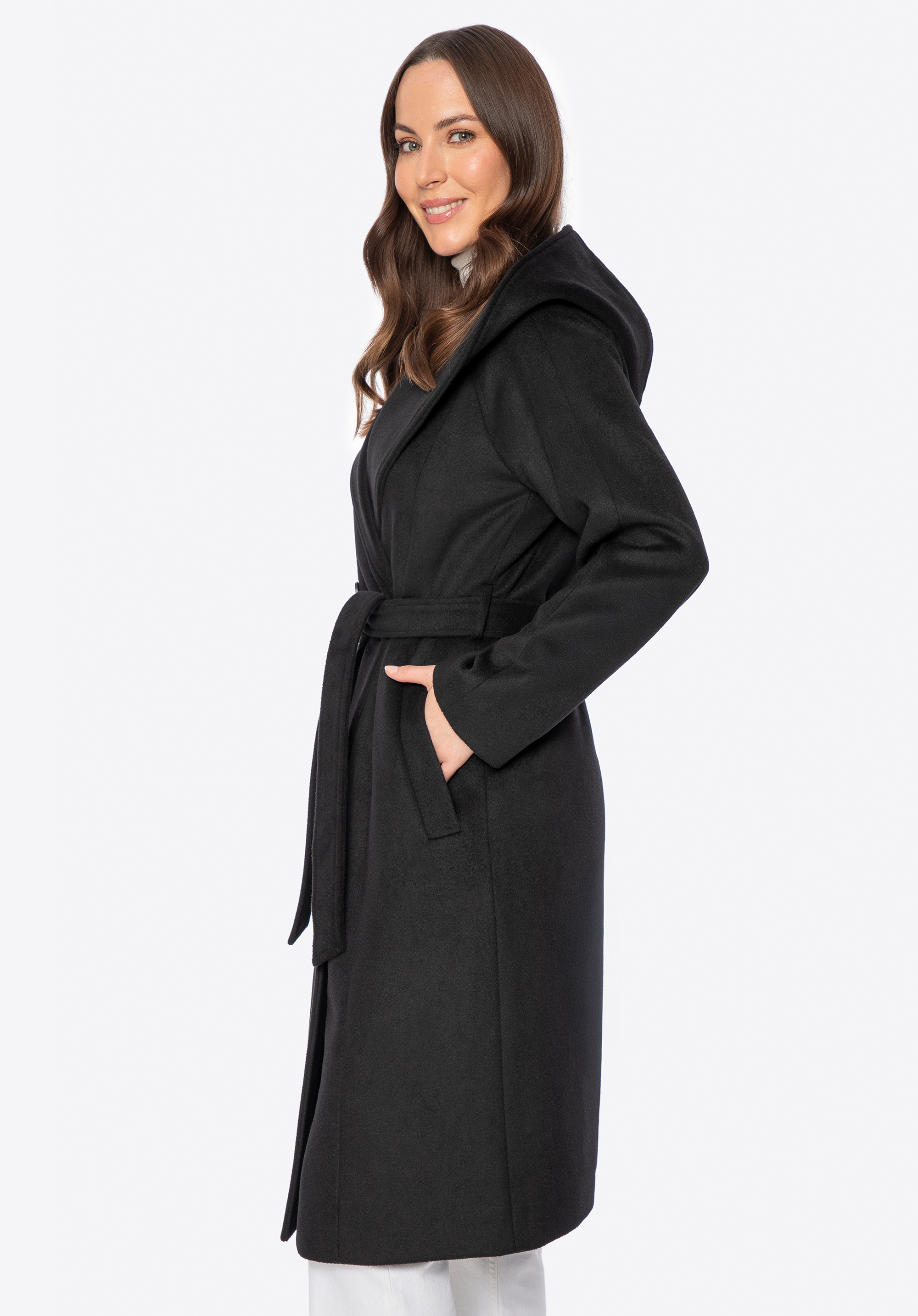 Класика з сучасним відтінком – довге жіноче пальто з капюшоном та поясом