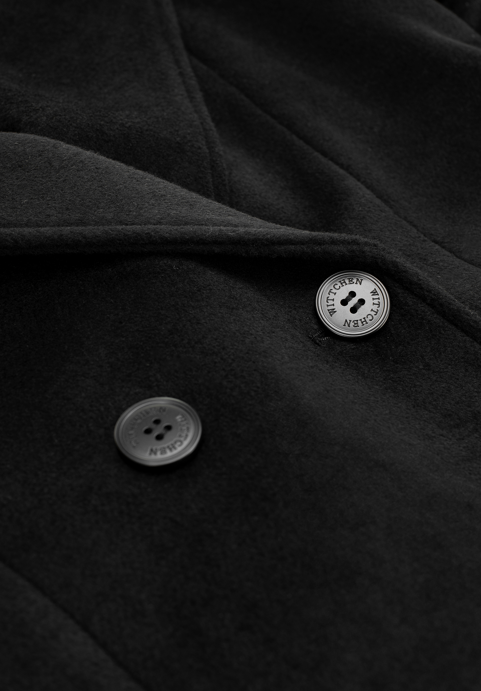 - Двобортна застібка на гудзики з логотипом: Елегантна й функціональна деталь, що додає шарму та захищає від холоду.