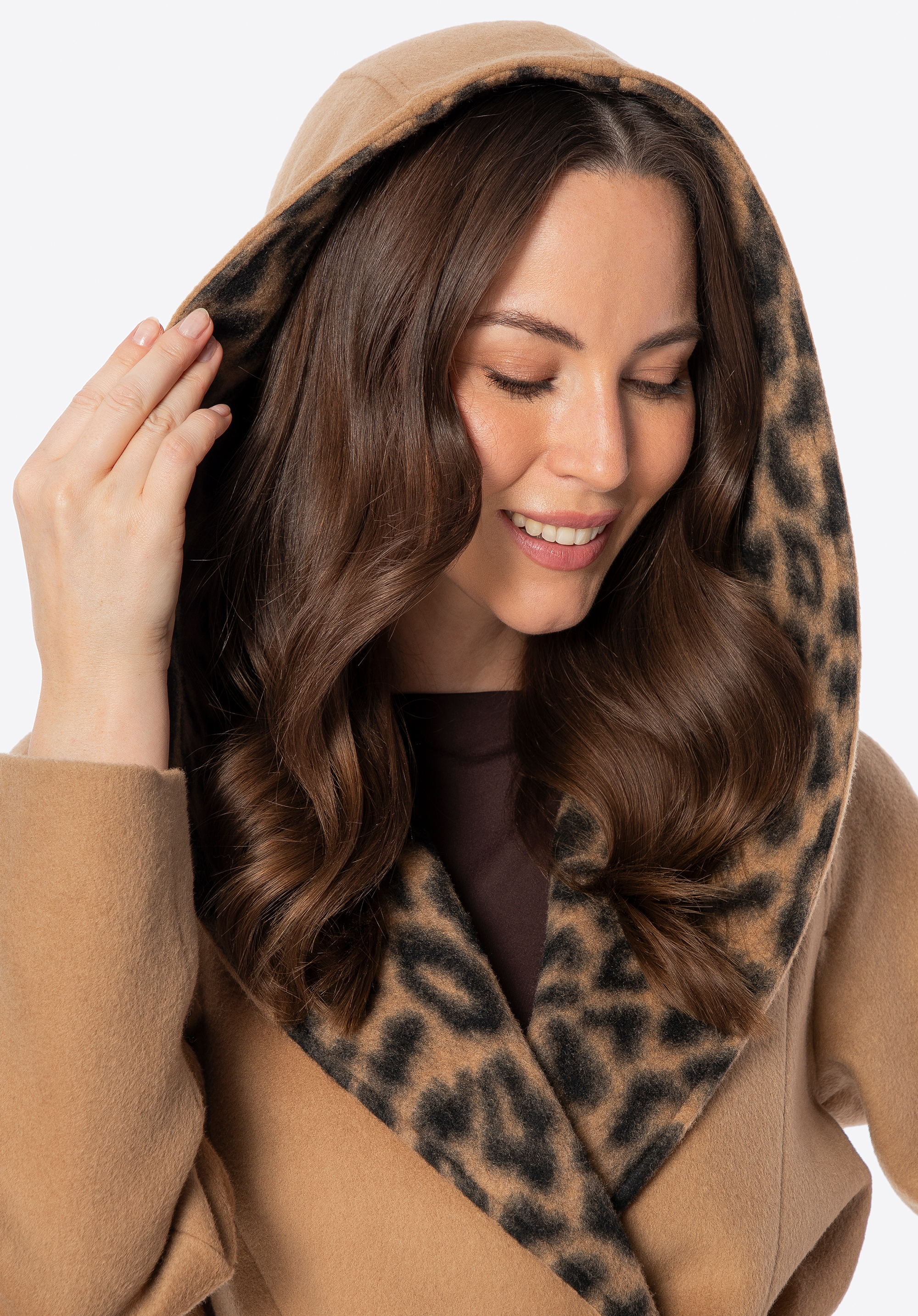 Це довге, двобортне жіноче пальто з капюшоном — поєднання елегантності та функціональності, яке стане чудовим вибором як для міського повсякдення, так і для більш формальних виходів. Створене з увагою до деталей, воно зачаровує класичним кроєм, доповненим сучасними рішеннями: застібкою на гудзики, регульованим поясом на талії та делікатним розрізом ззаду. Капюшон додає образу невимушеного, кежуального характеру, водночас захищаючи від холоду та вітру. Дві бокові кишені забезпечують зручність, а підкладка з віскози гарантує комфорт навіть у поєднанні з теплішими образами.