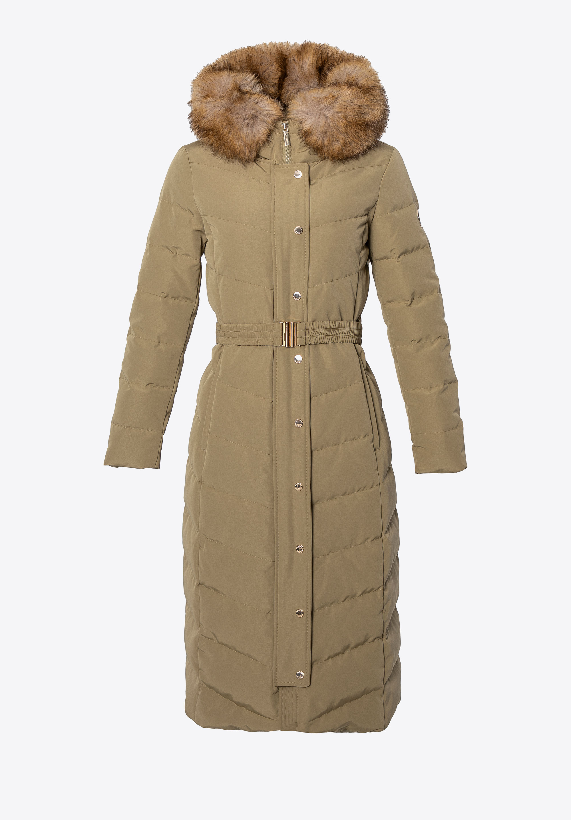 Підготуйтеся до зими зі стилем, що поєднує комфорт та елегантність. Це жіноче пальто – більше ніж просто верхній одяг, це прояв вашого вишуканого смаку та почуття досконалості. Зовнішній матеріал з поліестеру, стійкий до атмосферних умов, та внутрішня частина з нейлоновою підкладкою створюють ідеальне поєднання, яке ефективно захищає від холоду. Наповнення з натурального пуху та пір''я забезпечує виняткову теплоізоляцію – обволікає теплом навіть під час найсильніших морозів.
