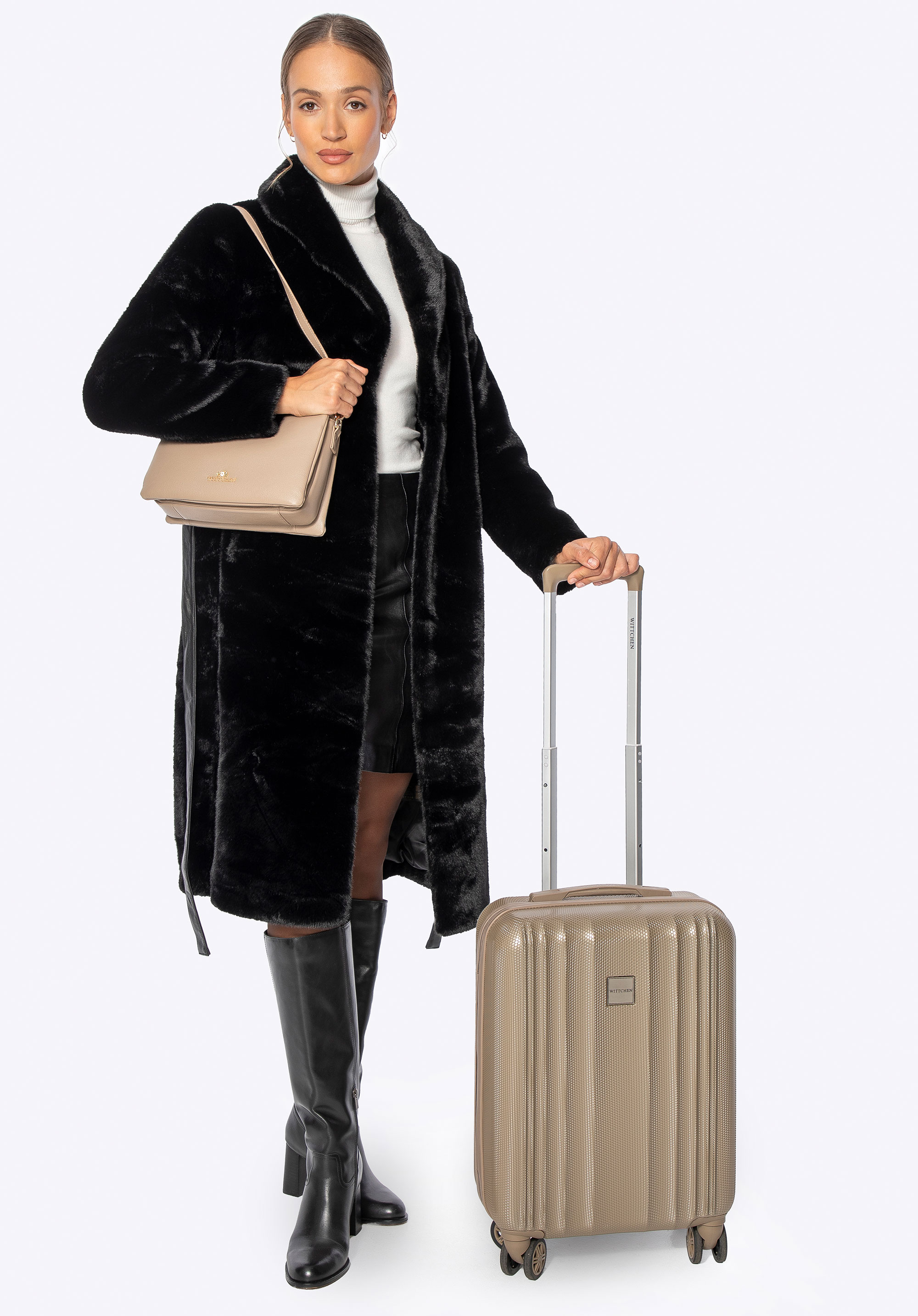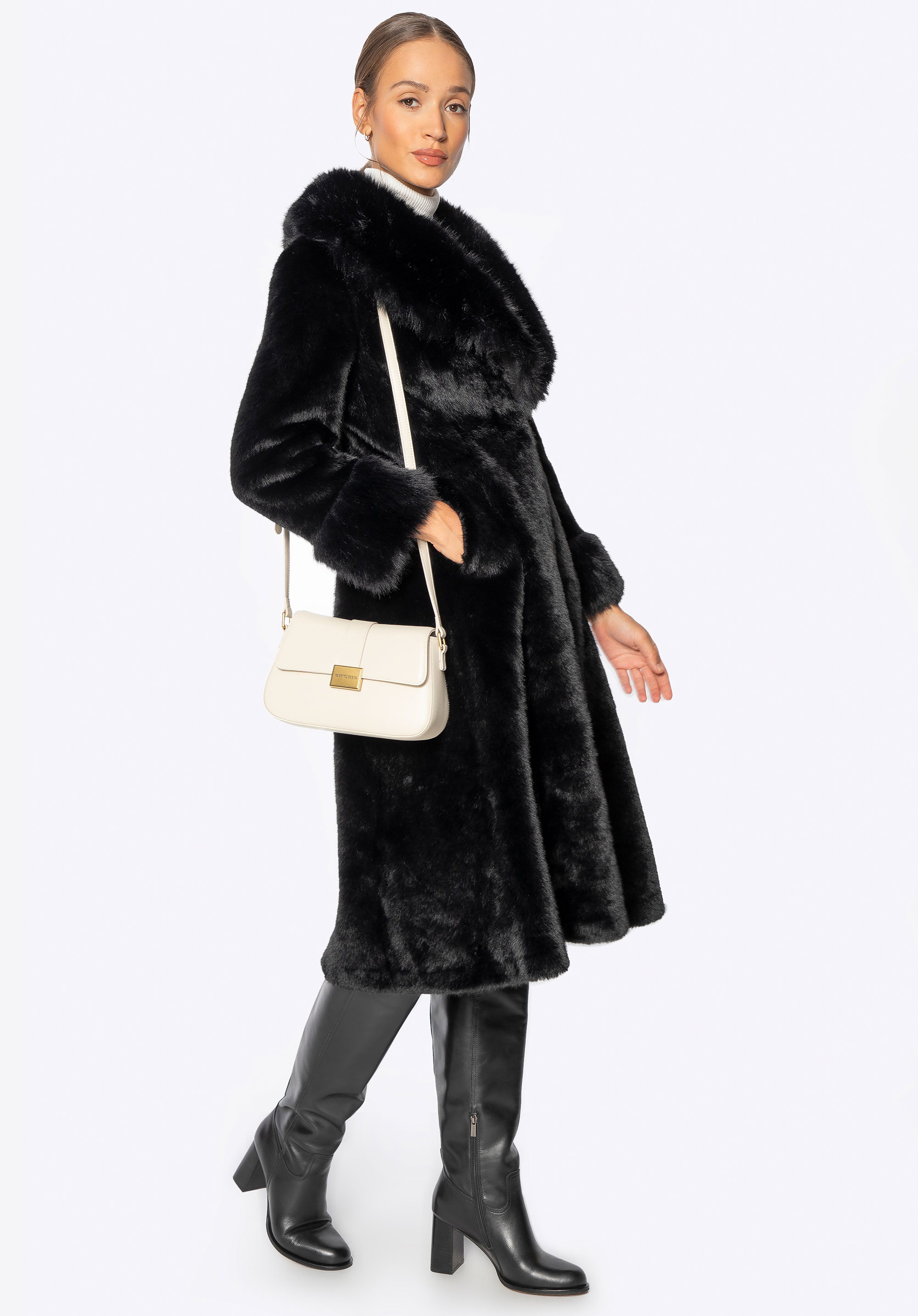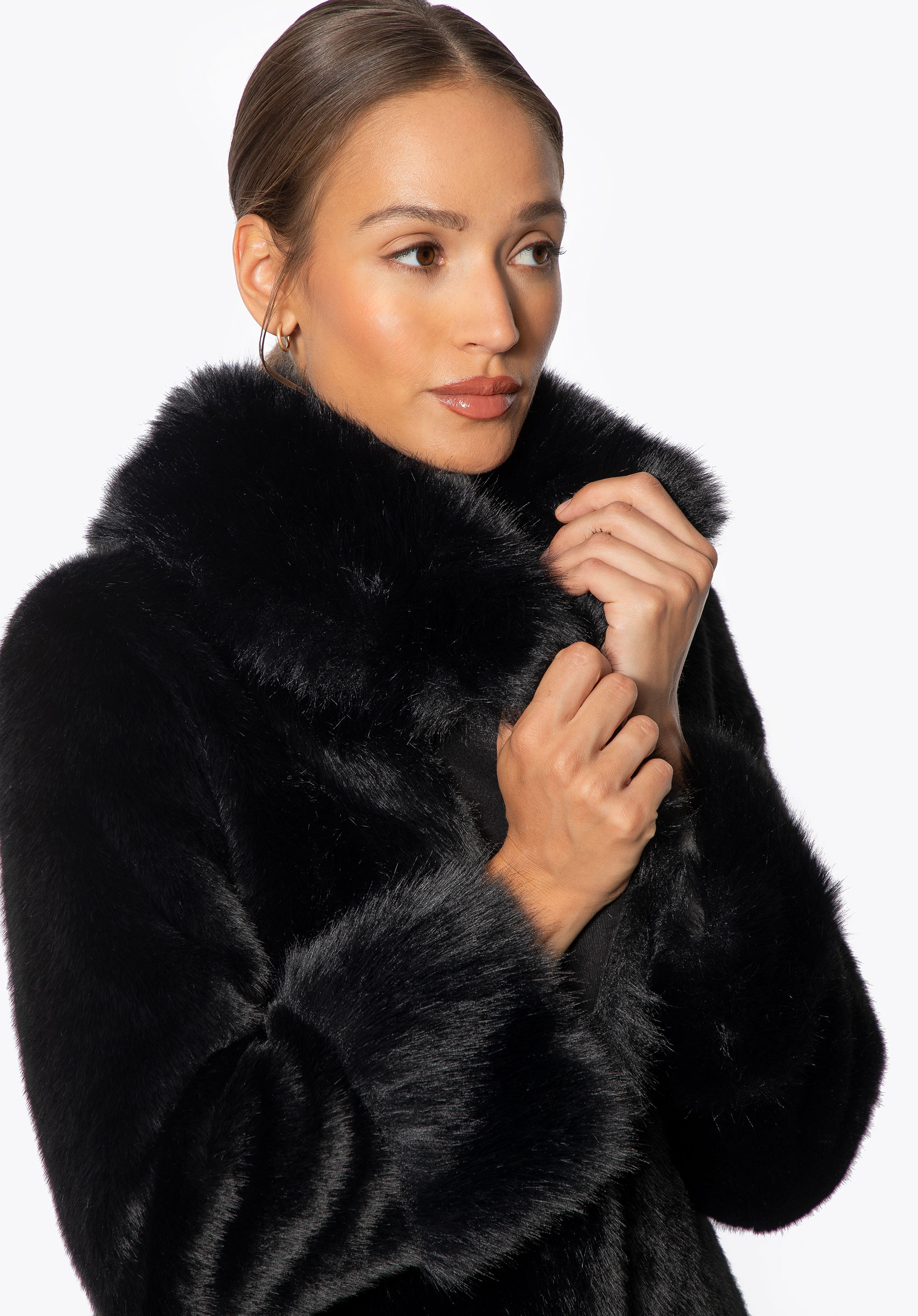 Це довге пальто поєднує в собі класичний стиль з комфортом і практичністю для холодних днів. Виготовлене повністю з м''якого штучного хутра, воно ніжно облягає силует, забезпечуючи комфорт і легкість у носінні. Комір зі штучного хутра додає характеру та елегантності, красиво обрамляючи обличчя та надаючи виробу розкішного вигляду. Дві бічні кишені забезпечують місце, щоб зігріти руки або носити дрібні предмети першої необхідності, не порушуючи чітких ліній дизайну.