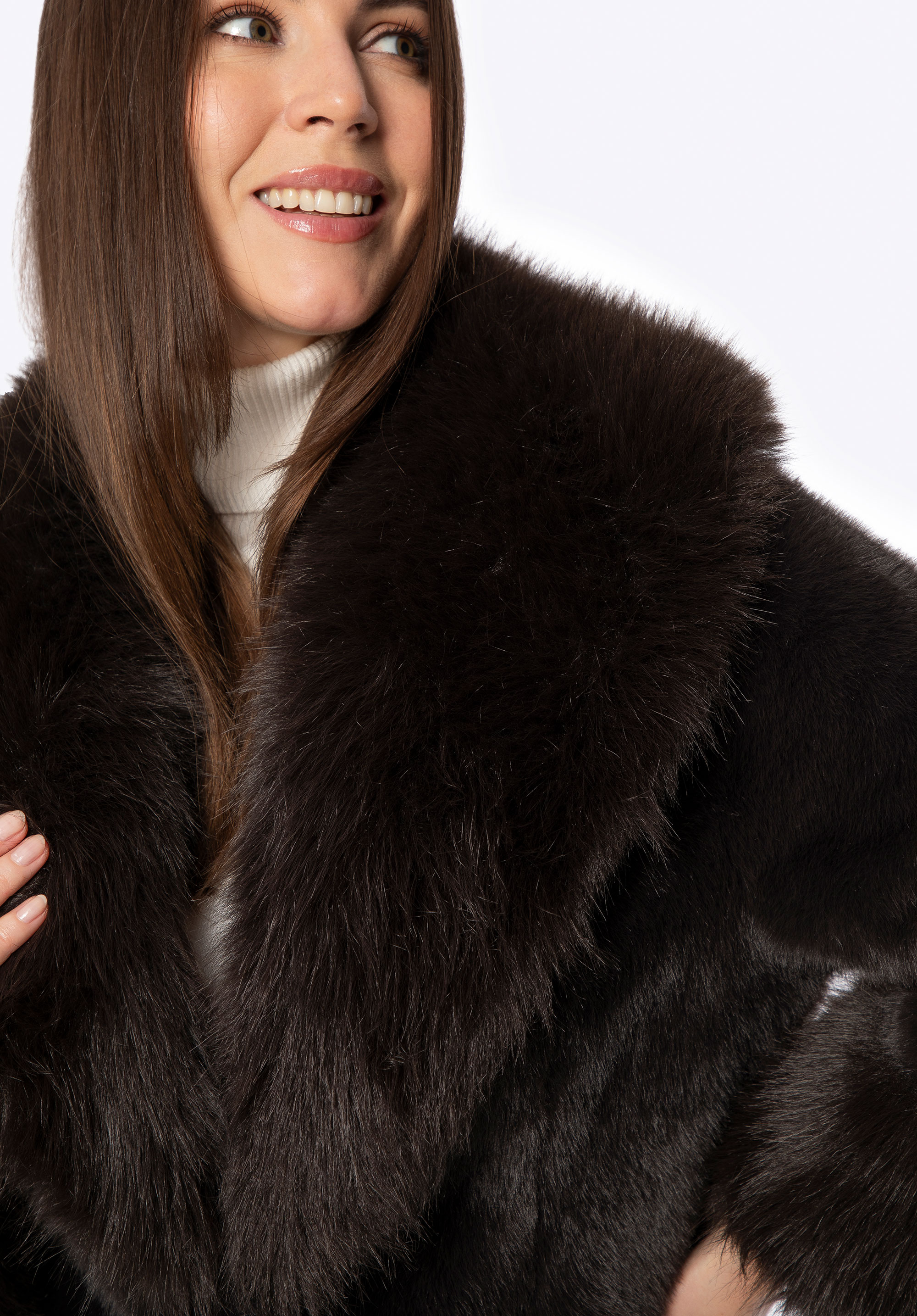 - Матеріал: М''яке штучне хутро з поліестеру, яке приємно огортає тіло та додає розкішного характеру.