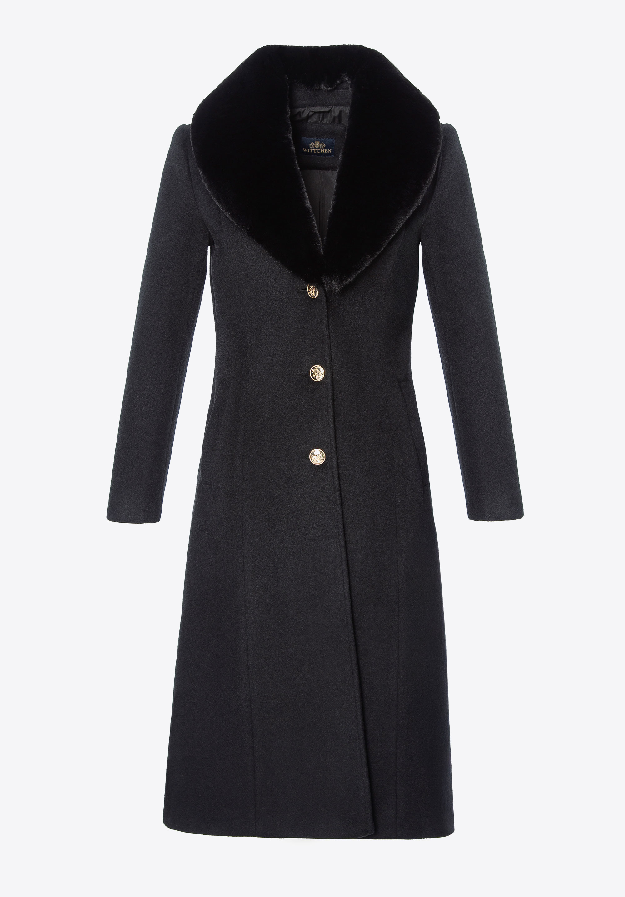 Це жіноче пальто — уособлення стилю та жіночої елегантності. Приталений крій підкреслює силует, а класичні гудзики з логотипом додають вишуканості та витонченого характеру. Знімний комір із м’якого хутра дозволяє змінювати стиль — від затишного й елегантного до легкого та сучасного. Дві практичні кишені з боків забезпечують функціональність і зручне місце для дрібниць або щоб зігріти руки. Це універсальне пальто поєднує комфорт, стиль і практичність, і чудово підходить як для повсякденного носіння, так і для більш формальних нагод.
