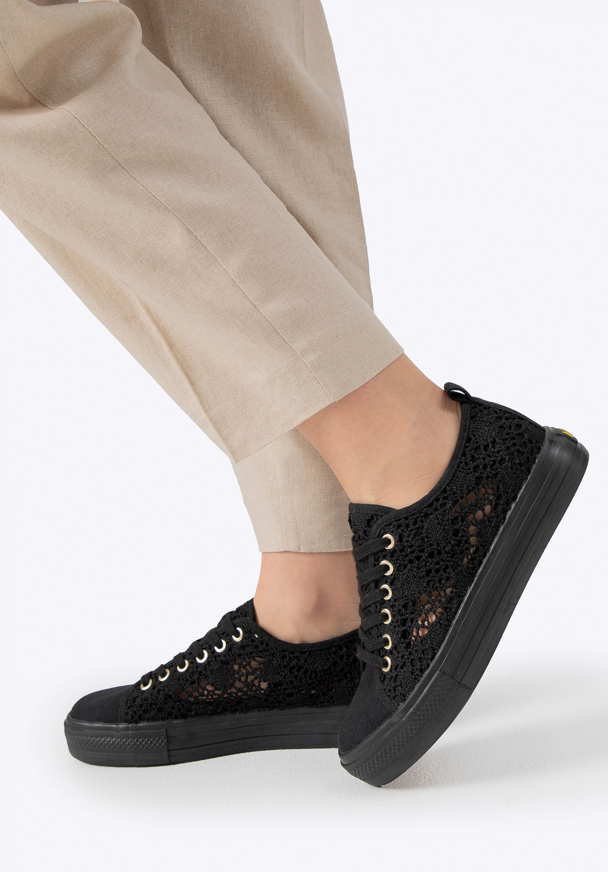 Поєднайте комфорт із модним стилем із цими винятковими кросівками! Виготовлені з перфорованого синтетичного матеріалу з тонким тканим малюнком, вони не тільки привертають увагу, але й забезпечують повітропроникність і комфорт протягом усього дня. Їх сучасний дизайн, ергономічна форма та закруглений носок гарантують, що кожен крок у цьому взутті буде особливим. Гумова підошва на платформі полегшує кожен крок, забезпечуючи стабільність, а логотип бренду додає нотку ексклюзивності.