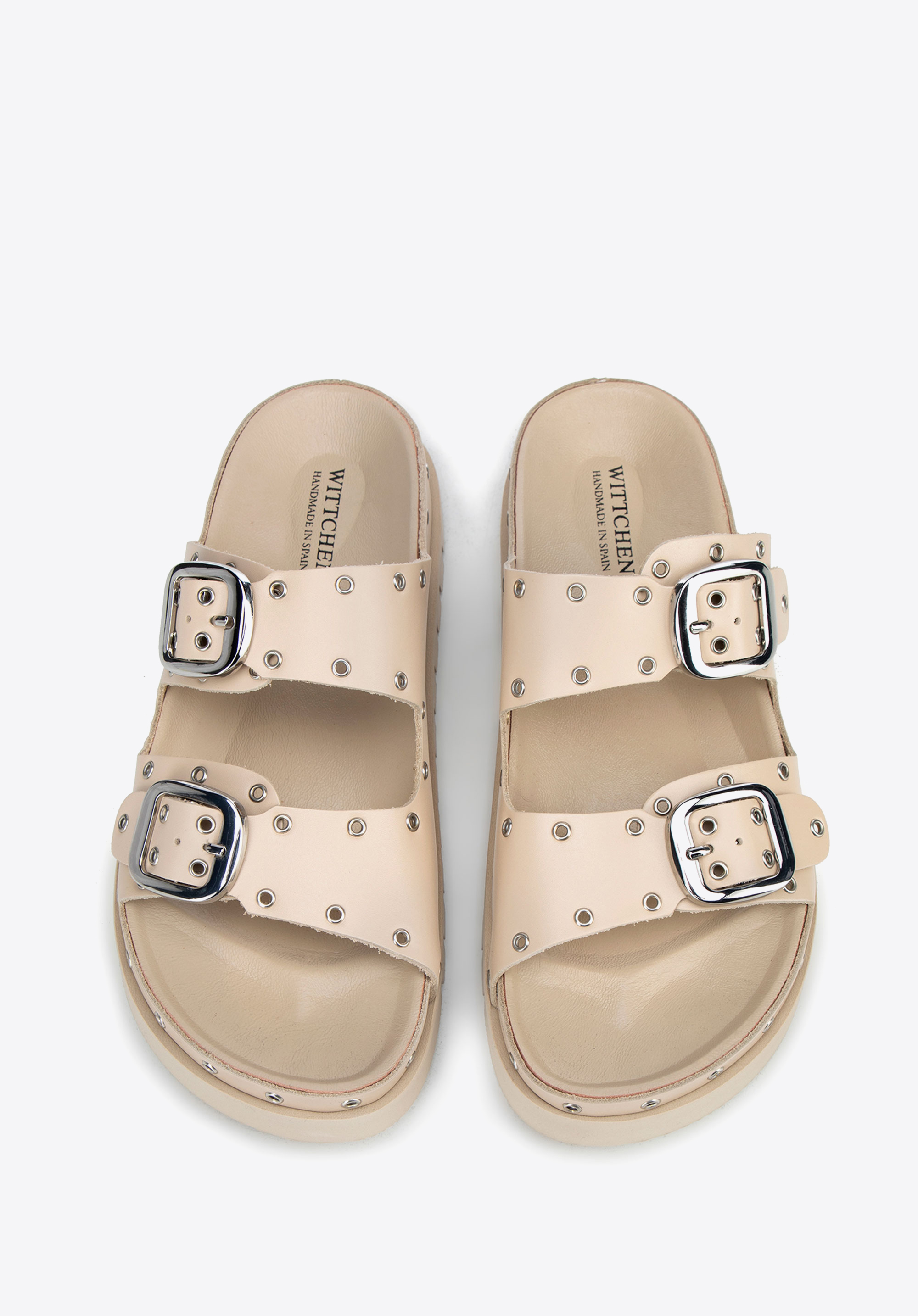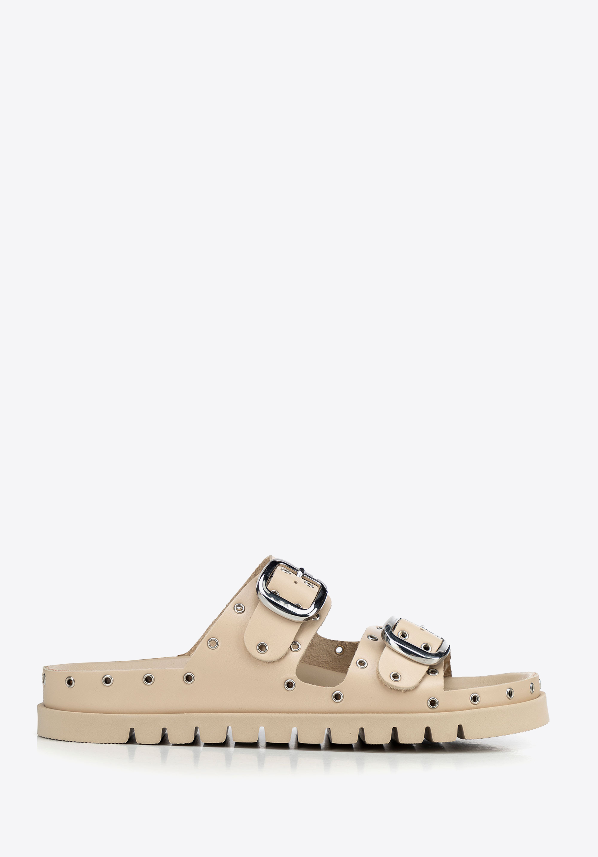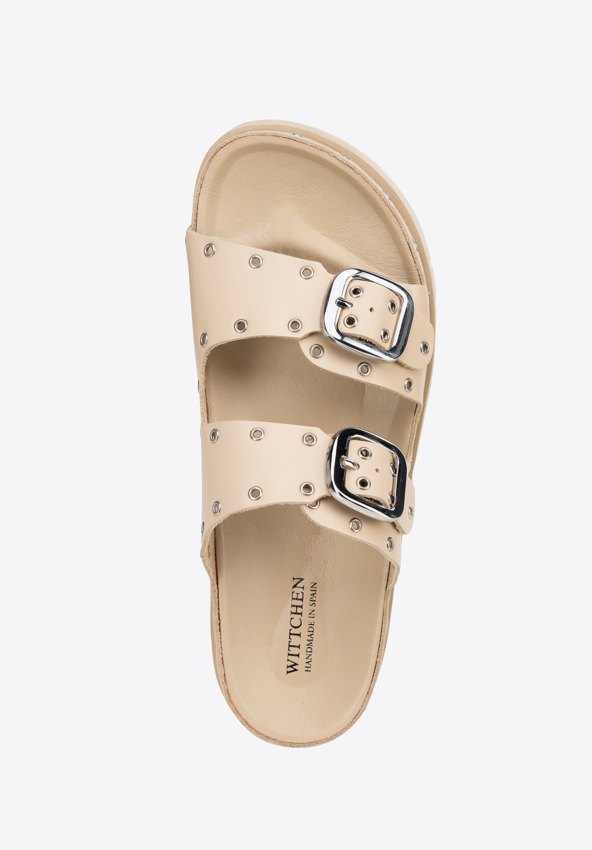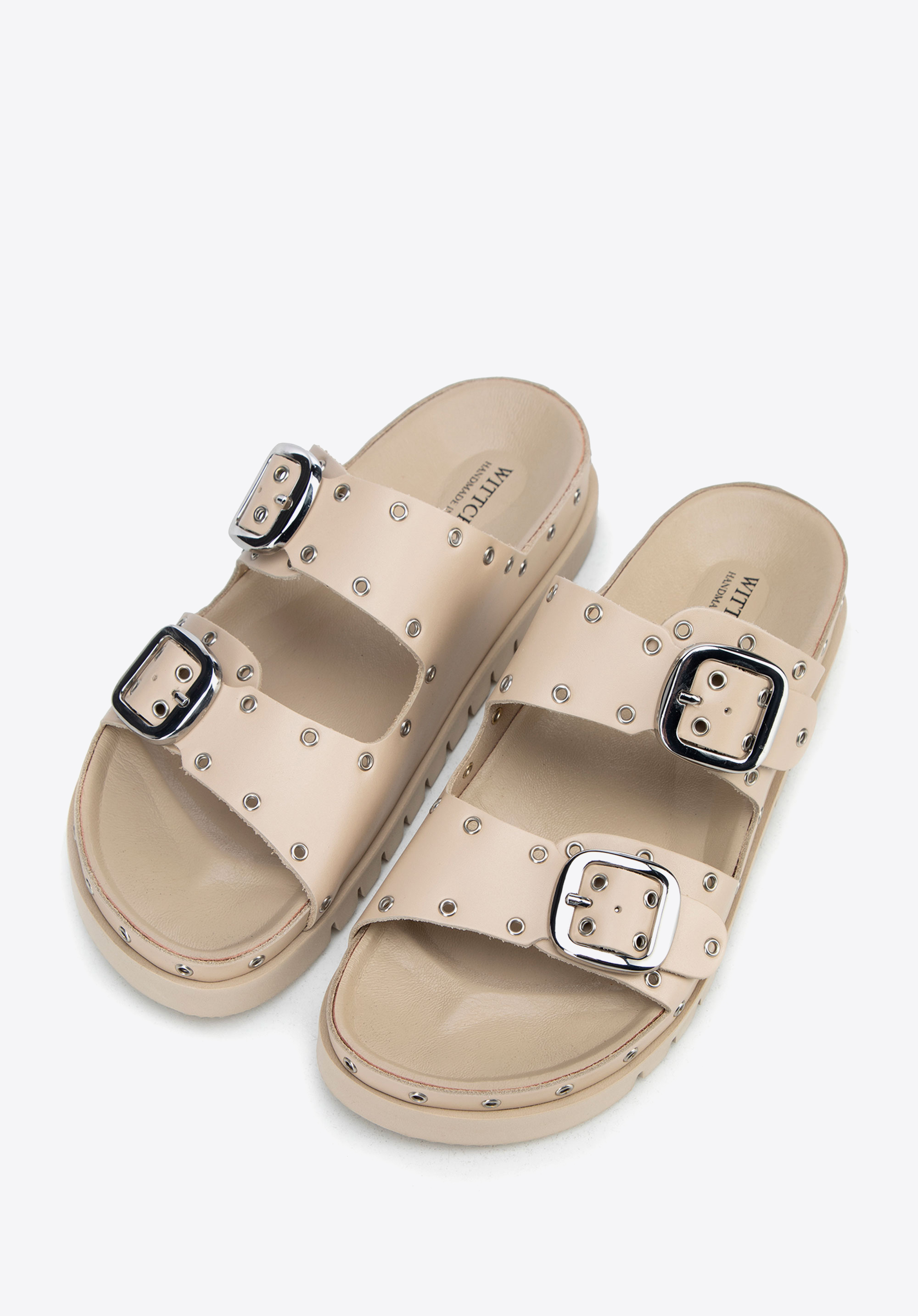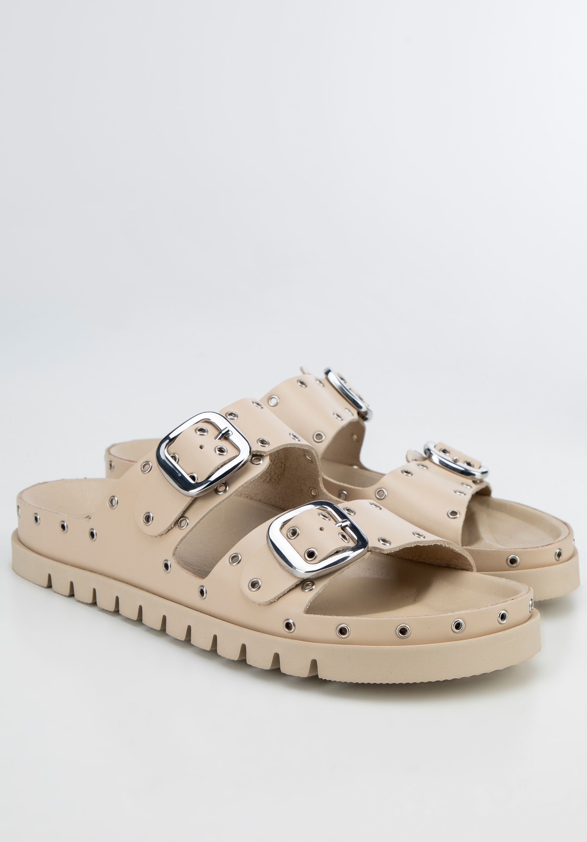 Жіночі босоніжки з шипами Колір: бежево-сріблястий