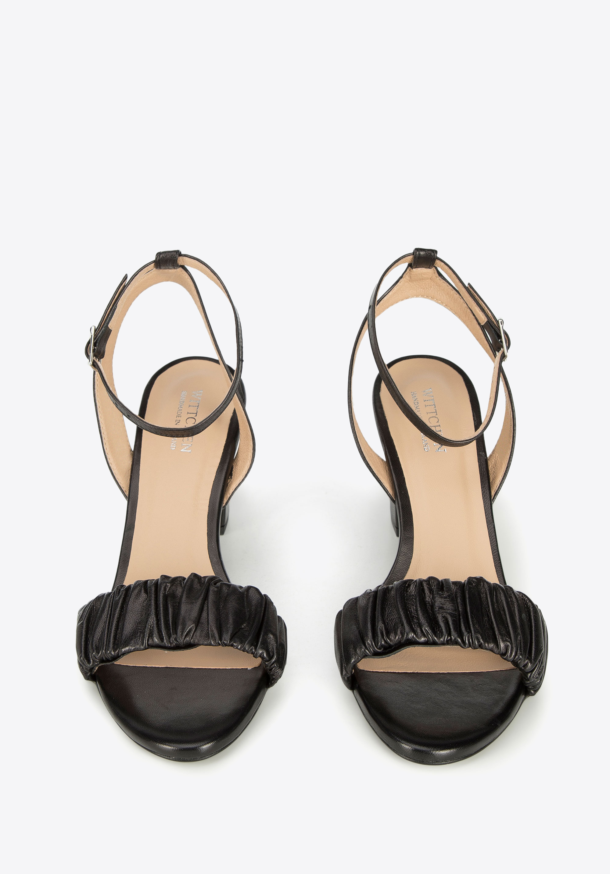 Ці стильні жіночі босоніжки – унікальний аксесуар для будь-якого святкового випадку. Виготовлені в Польщі з високоякісної натуральної шкіри, завдяки якій прослужать вам багато років. М’ята передня частина – оригінальна і дуже сучасна прикраса. Тонкі ремінці з пряжкою практичні і водночас делікатні, тому вони зручно тримають вашу ногу на місці. Каблук досить високий, але зручний: він дозволить ходити в такому взутті багато годин. Цю акуратну модель можна носити як з повітряною сукнею, так і з джинсами з піджаком. Жіночі босоніжки зі м''ятої шкіри - це жіночний аксесуар для будь-якого особливого випадку.