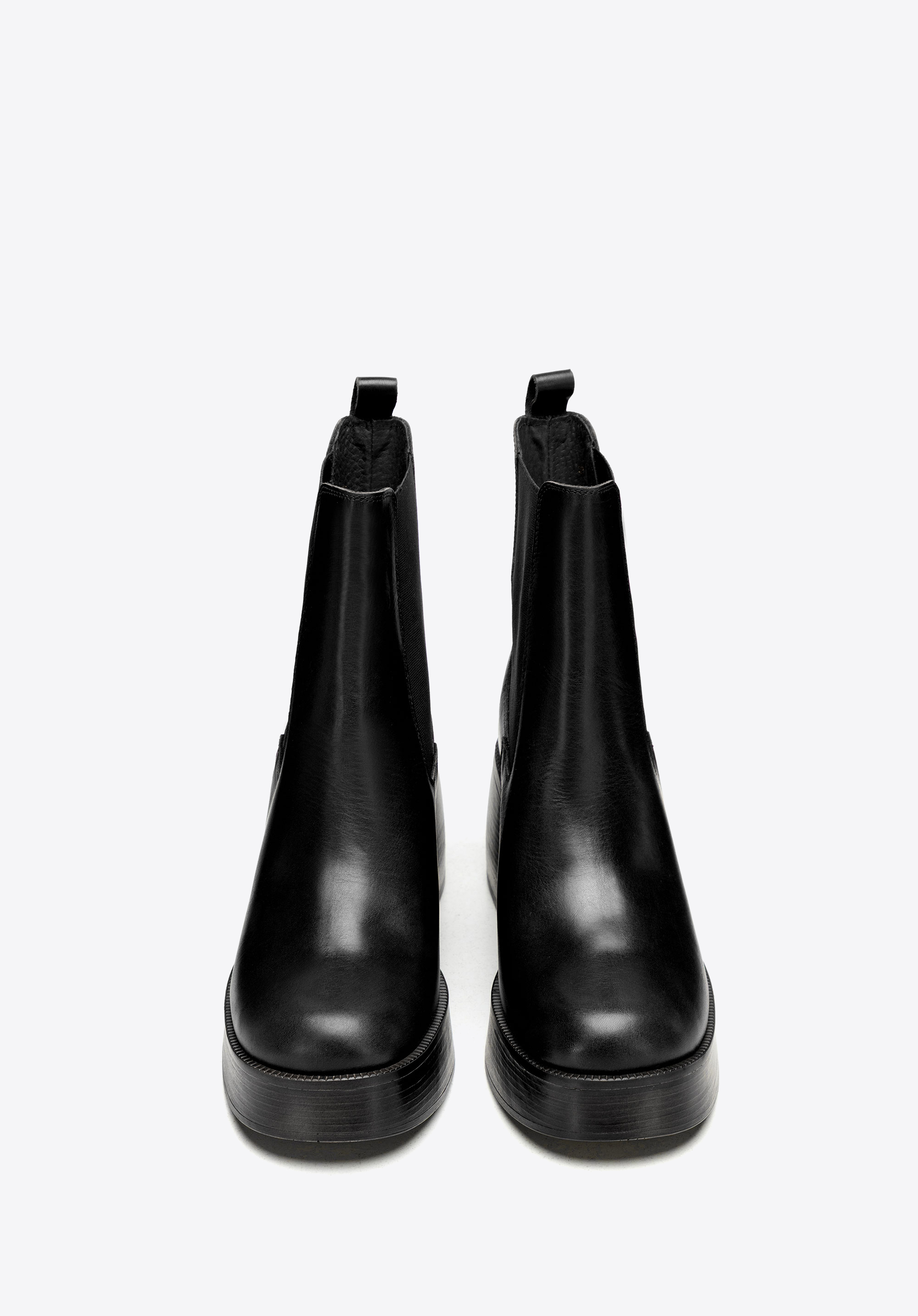 Ці черевики челсі одразу привертають увагу завдяки своїй неповторній формі, ретельному виконанню та виразним деталям. Натуральна шкіра надає їм вишуканого вигляду, а масивна підошва та стійкий каблук додають висоти та сучасного вигляду. Еластичні вставки з боків та петля ззаду забезпечують легке взування та ідеальну посадку.