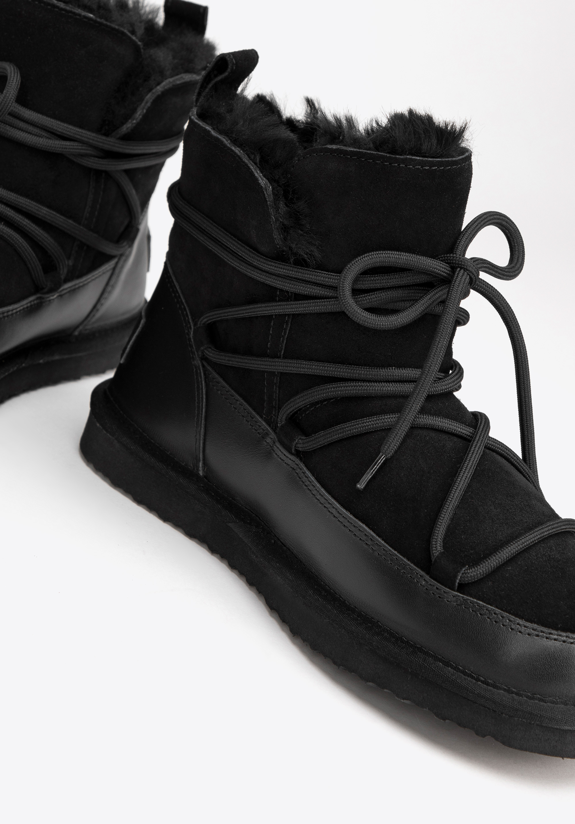 - Внутрішня частина: підкладка з вовни у вигляді м''якого хутра, що забезпечує тепло і комфорт навіть у найхолодніші дні.