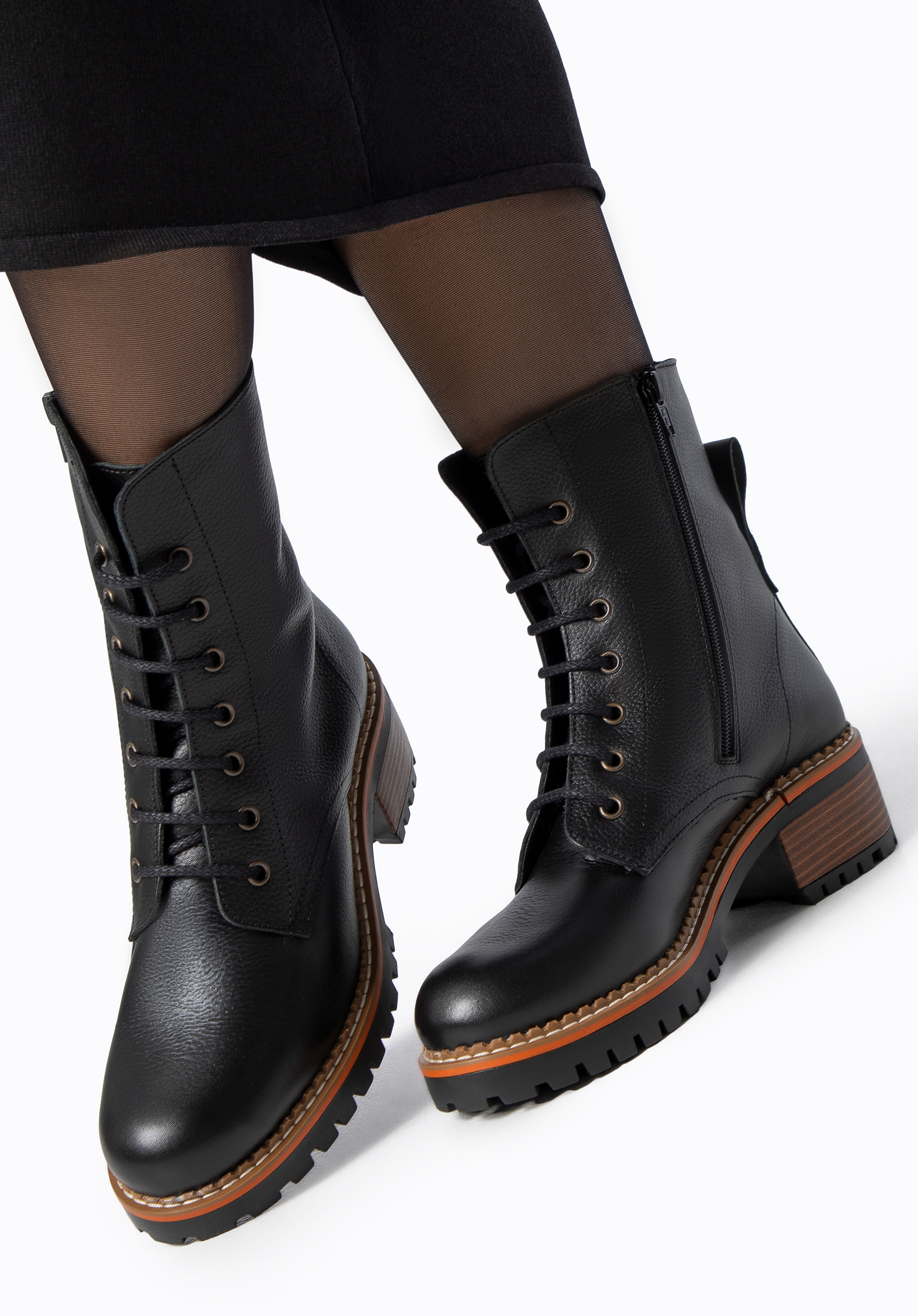 Ці черевики – ідеальне поєднання позачасового дизайну та повсякденної практичності. Виготовлені з високоякісної натуральної шкіри, вони додають позачасової елегантності повсякденному носінню. Широкий, стабільний блочний каблук додає зросту без шкоди для комфорту. Завдяки поєднанню шнурівки та бічної блискавки їх легко взувати, і вони підлаштовуються під форму вашої стопи – чудово підходять для напружених днів. Виготовлені в Іспанії, вони відображають майстерність та увагу до деталей, пропонуючи якість та комфорт, які тривають.