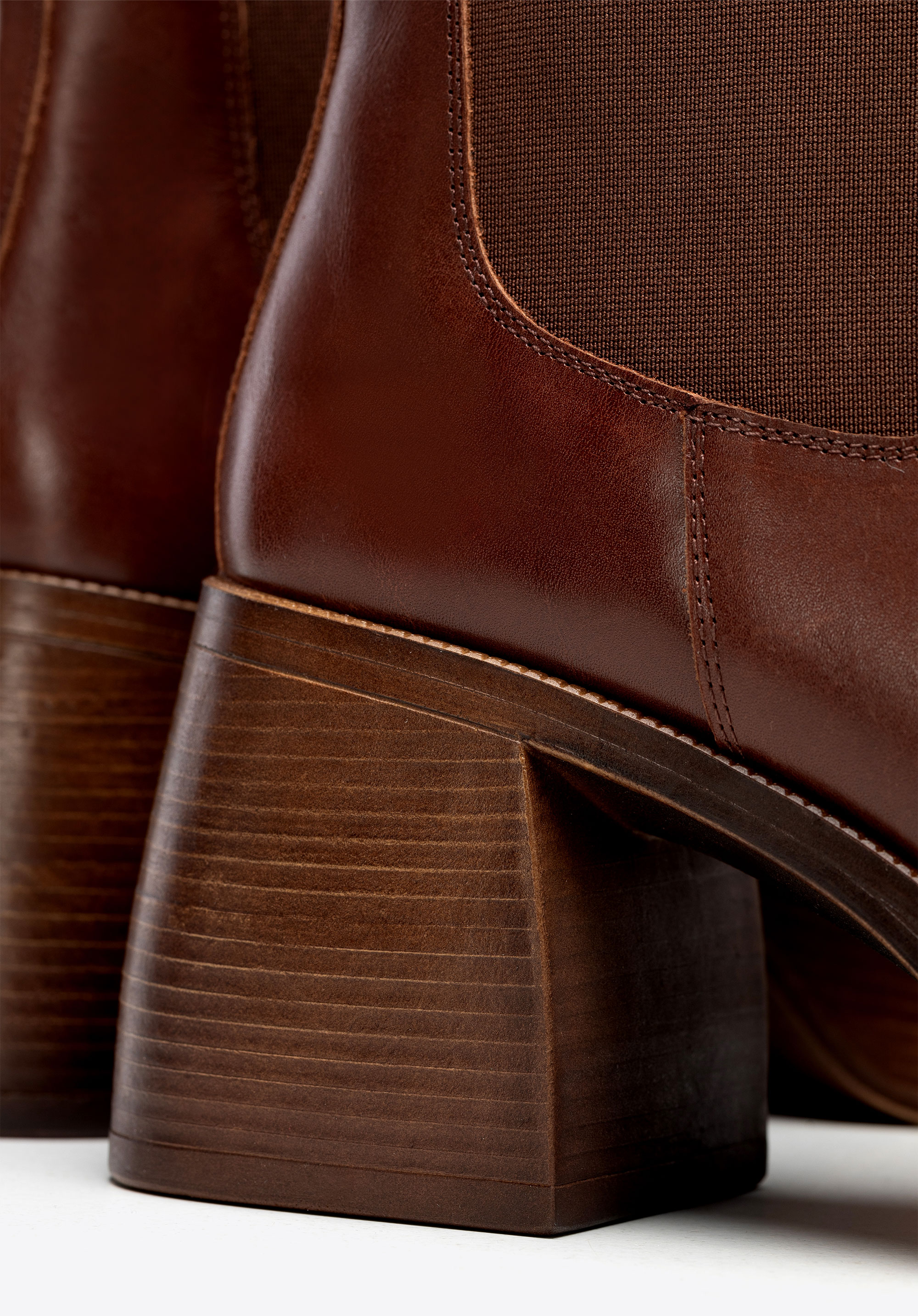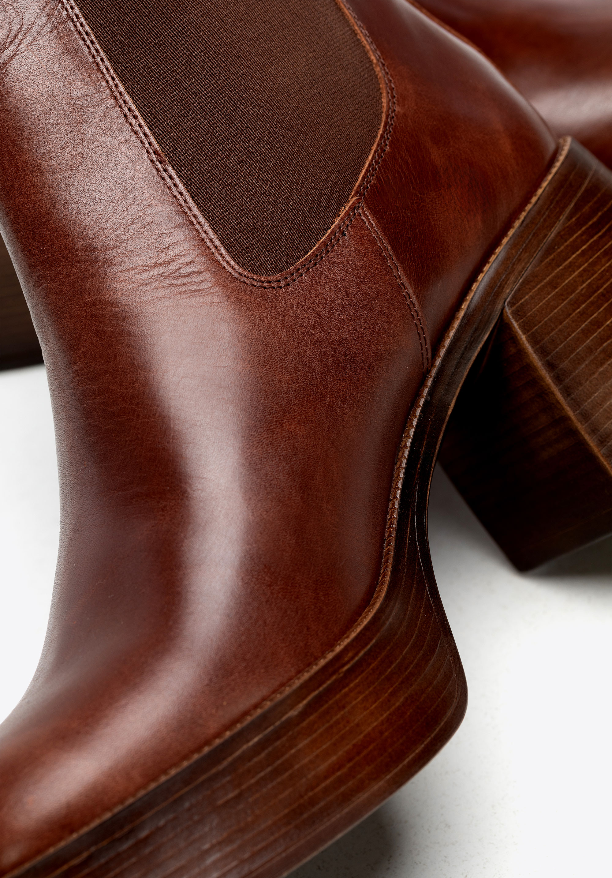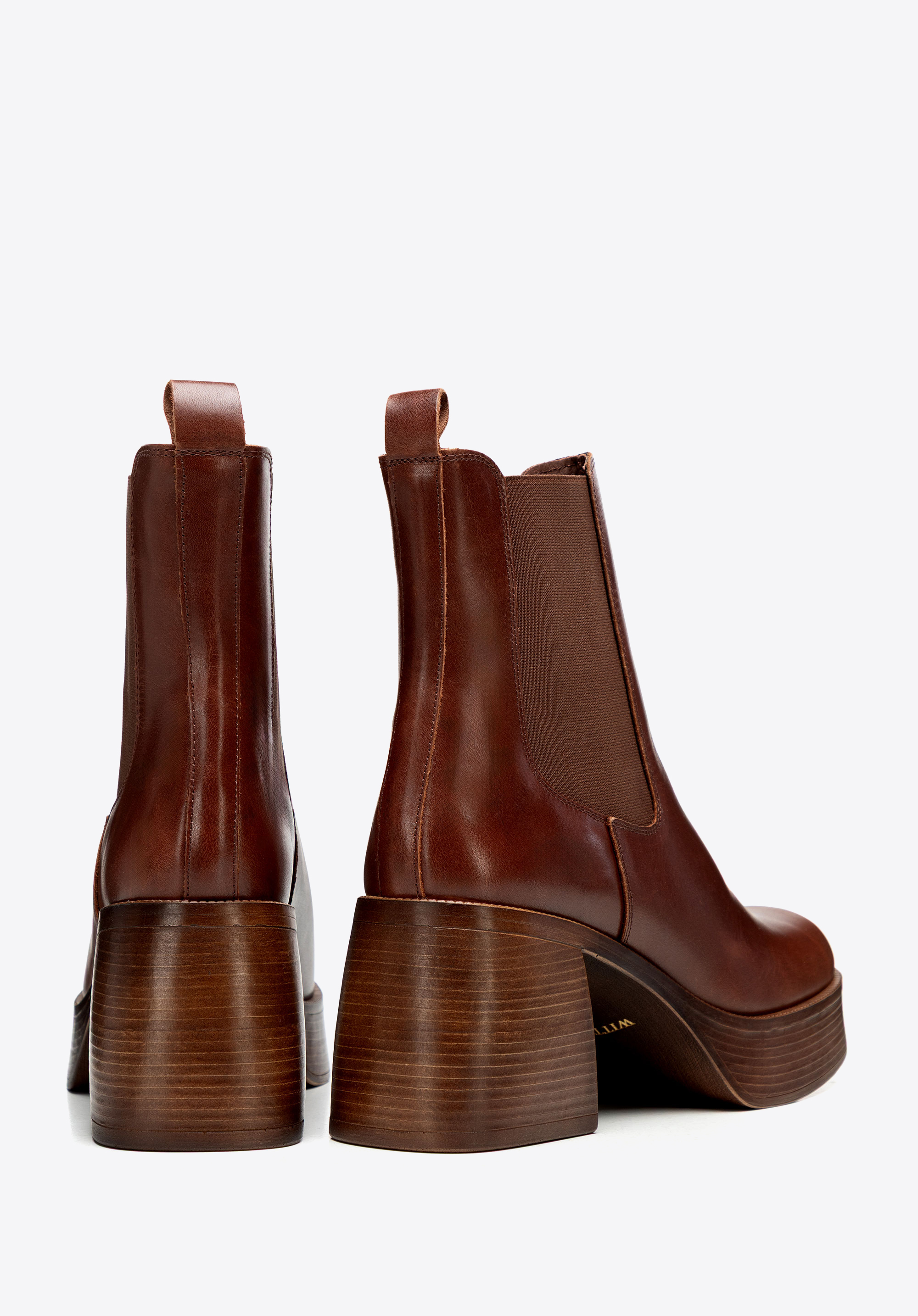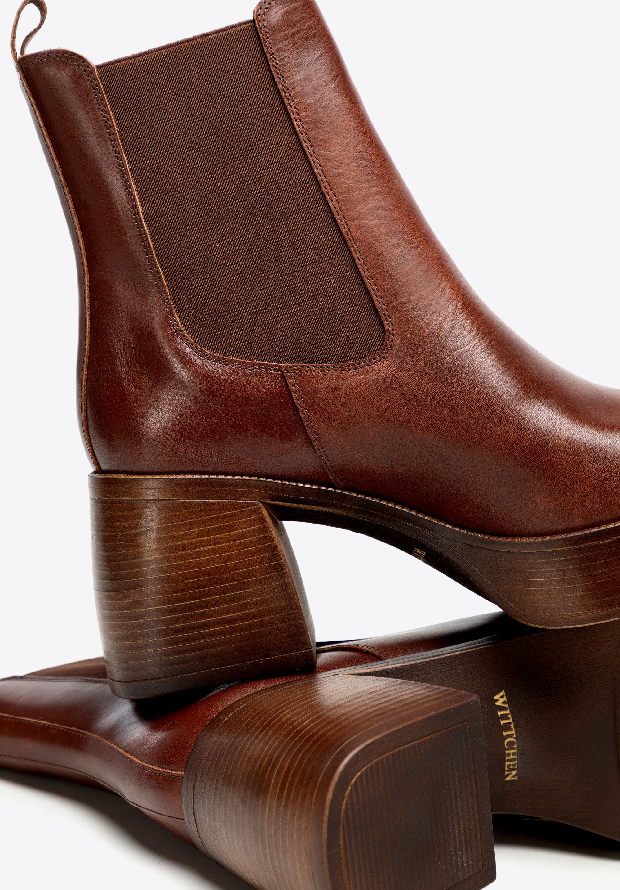Ці черевики челсі одразу привертають увагу завдяки своїй неповторній формі, ретельному виконанню та виразним деталям. Натуральна шкіра надає їм вишуканого вигляду, а масивна підошва та стійкий каблук додають висоти та сучасного вигляду. Еластичні вставки з боків та петля ззаду забезпечують легке взування та ідеальну посадку.