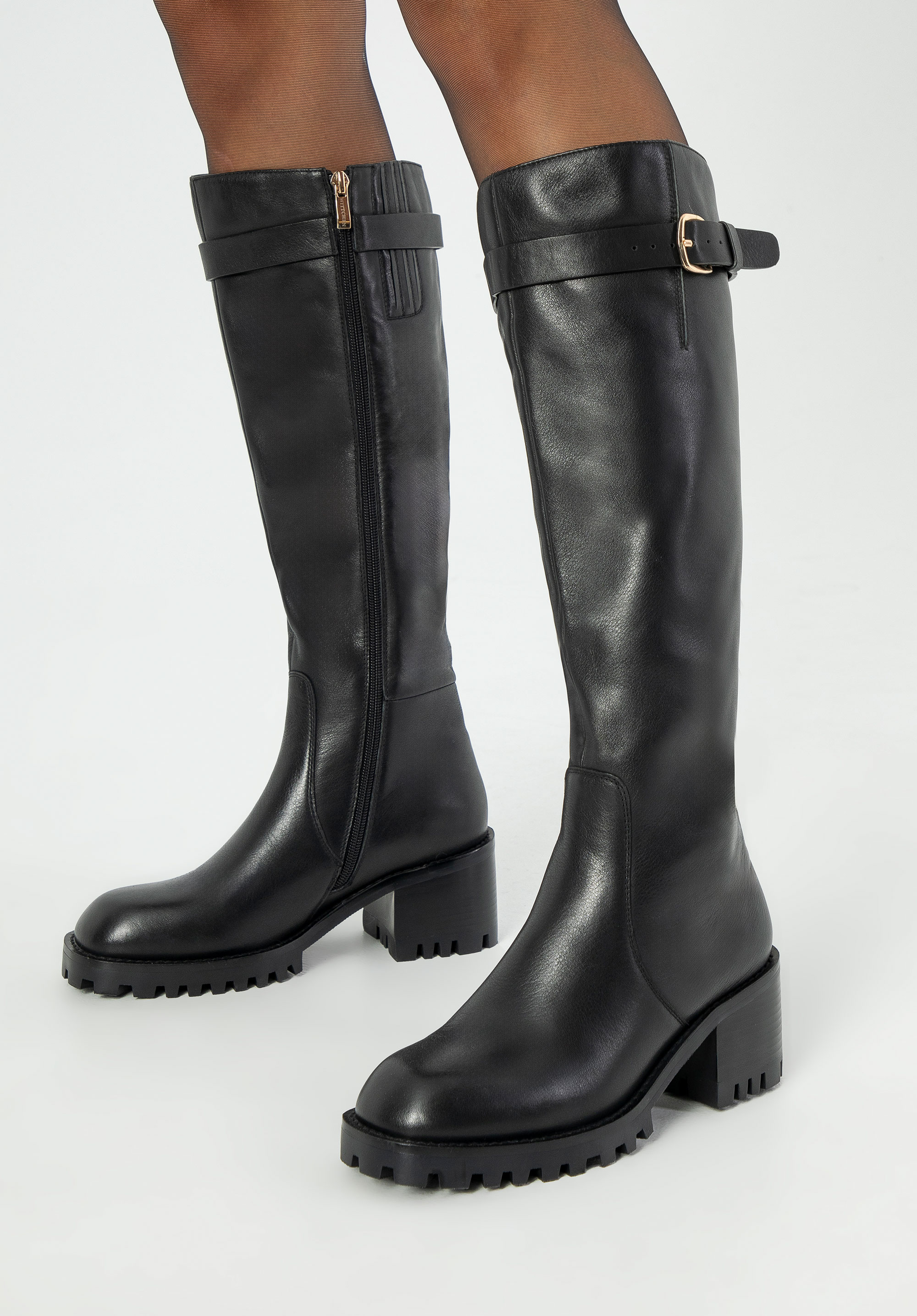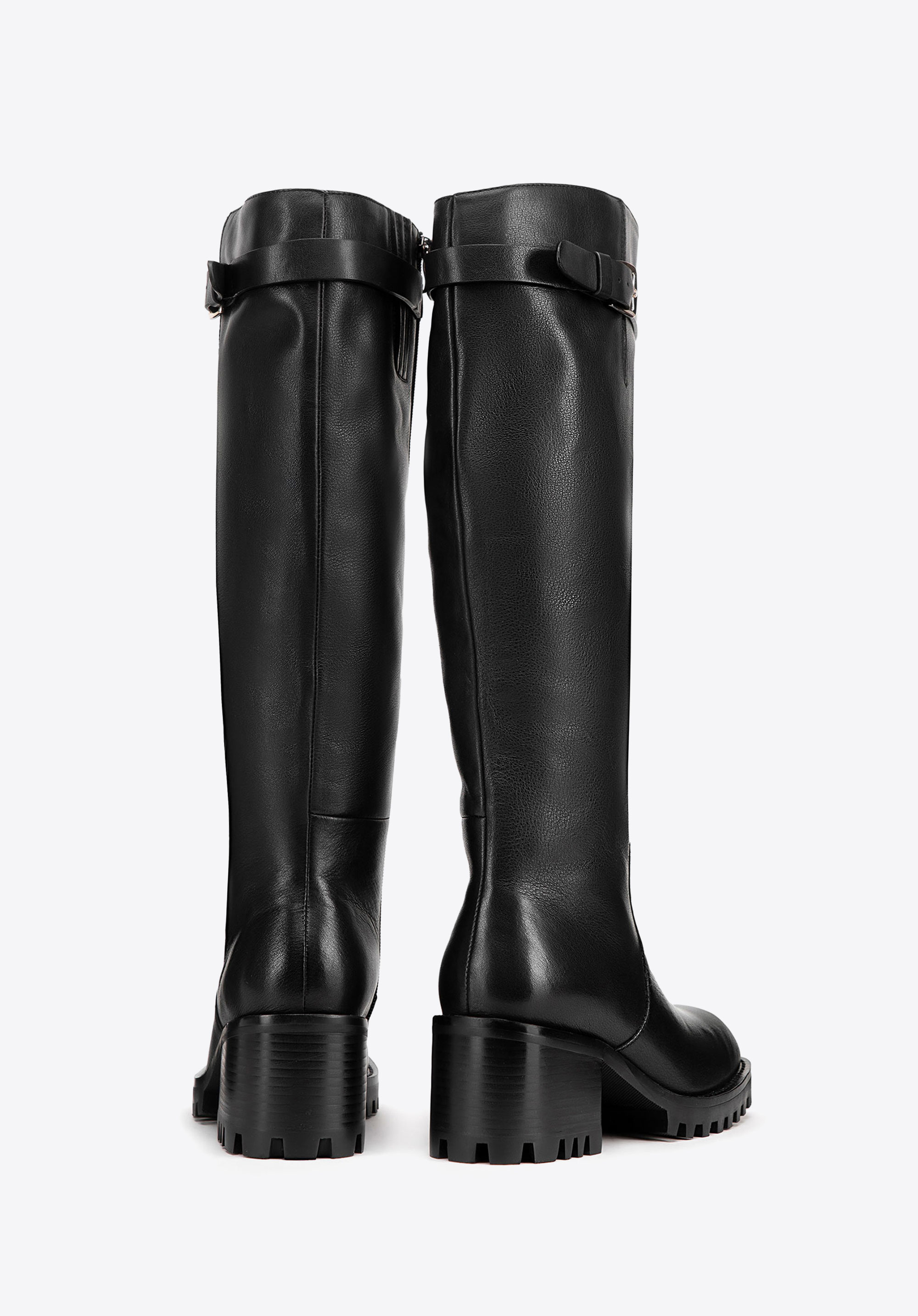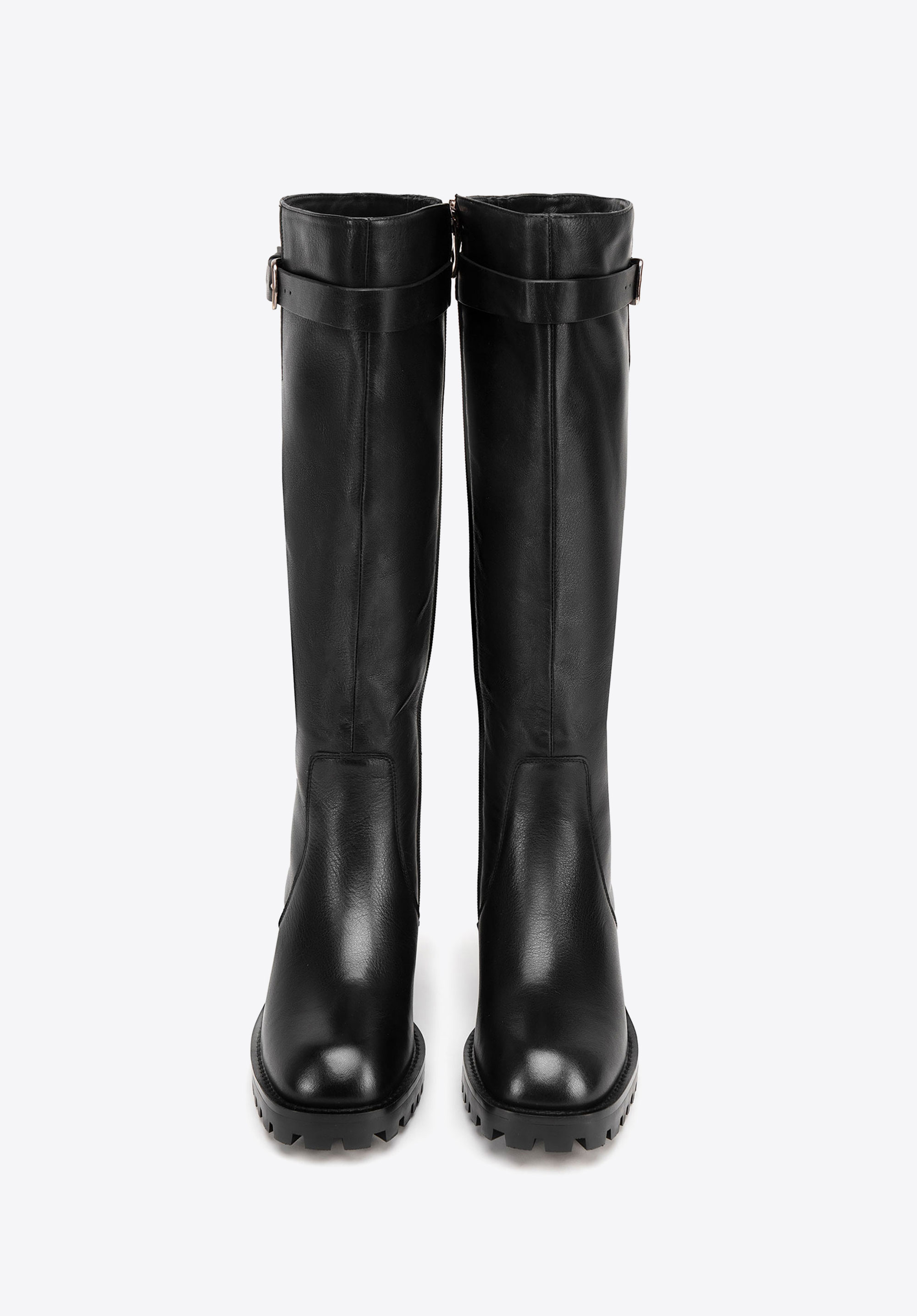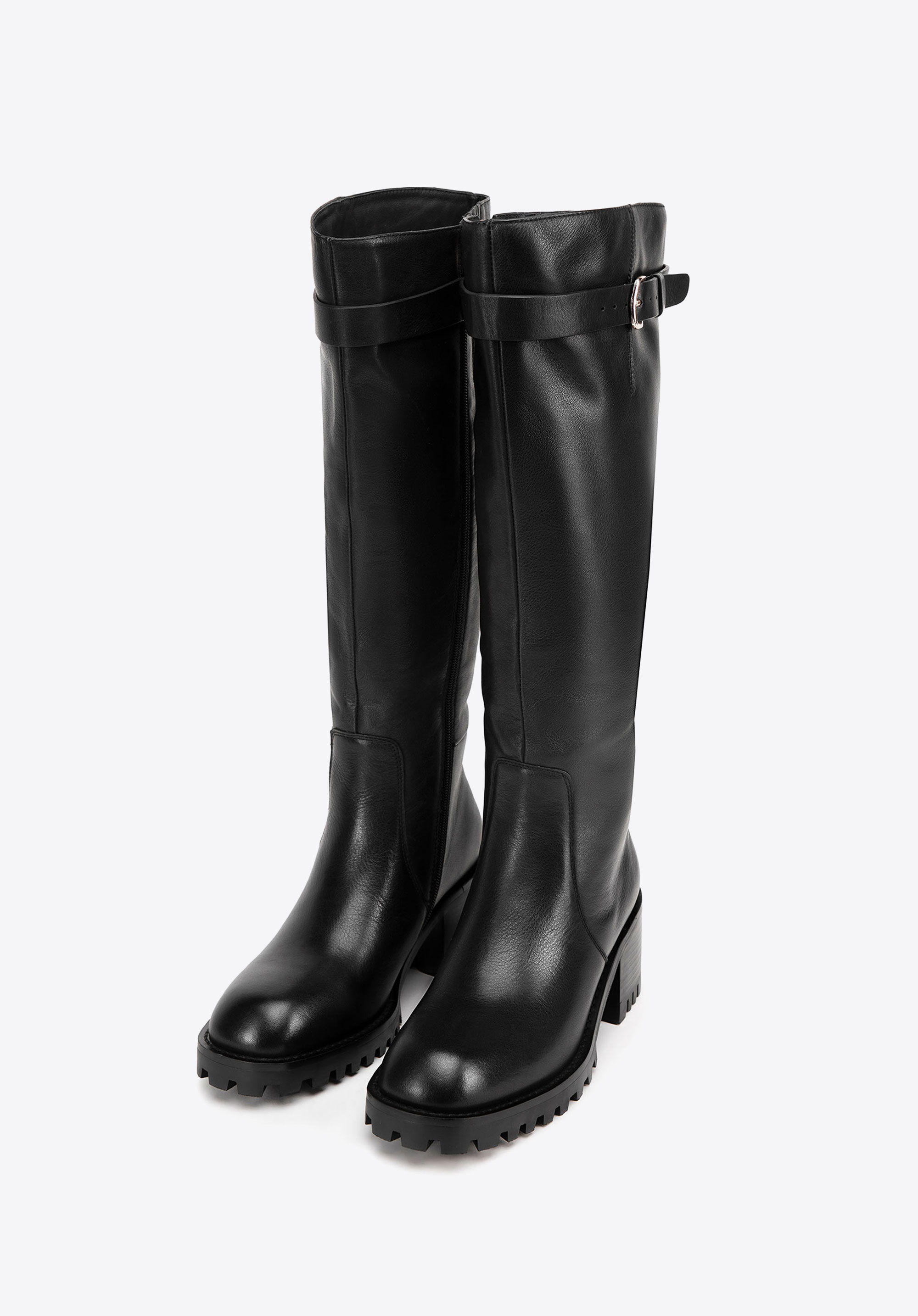 Ці стильні жіночі високі чоботи, виготовлені з високоякісної натуральної шкіри, є ідеальним вибором для жінок, які цінують елегантність і комфорт. Ці чоботи ідеально підходять для холодних днів, забезпечуючи комфорт, тепло та довговічність. Вони мають елегантну пряжку на ремінці, яка додає сучасний відтінок, і стильний мигдалеподібний носок, що надає їм позачасового вигляду. Еластичні вставки біля блискавки ідеально підходять до форми литки, забезпечуючи чудову посадку та комфорт.
