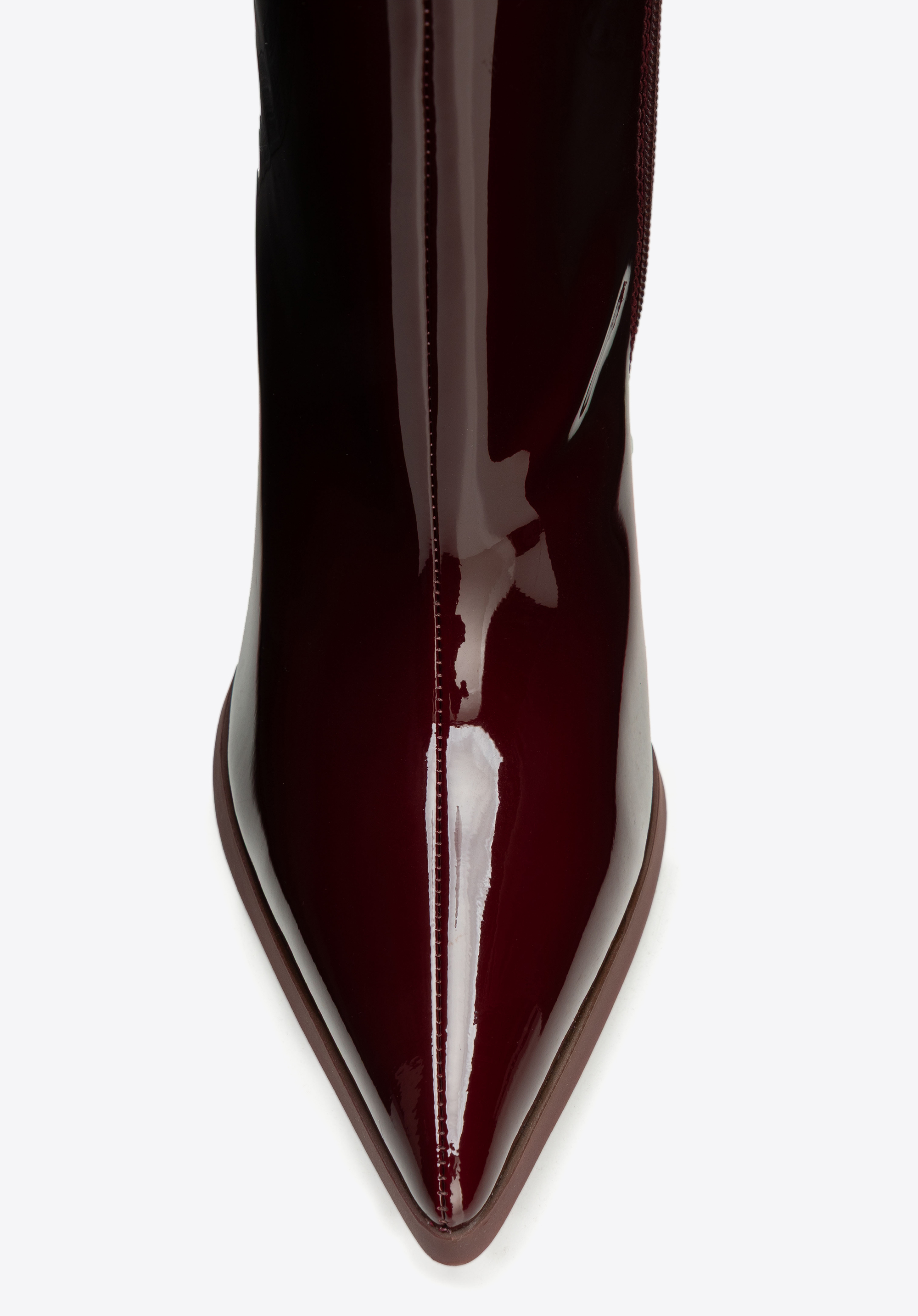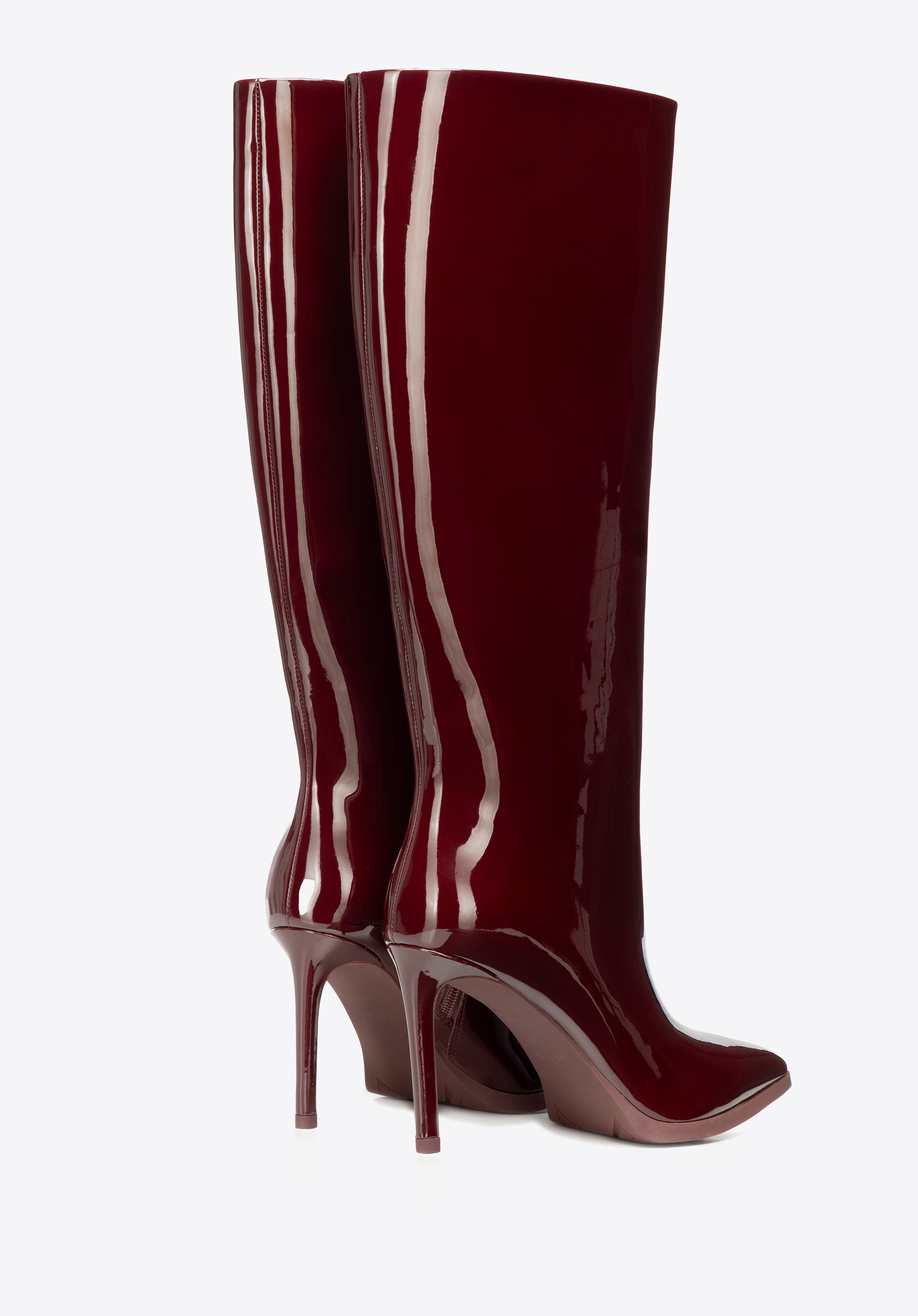Жіночі чоботи з натуральної лакованої шкіри на шпильці бордові