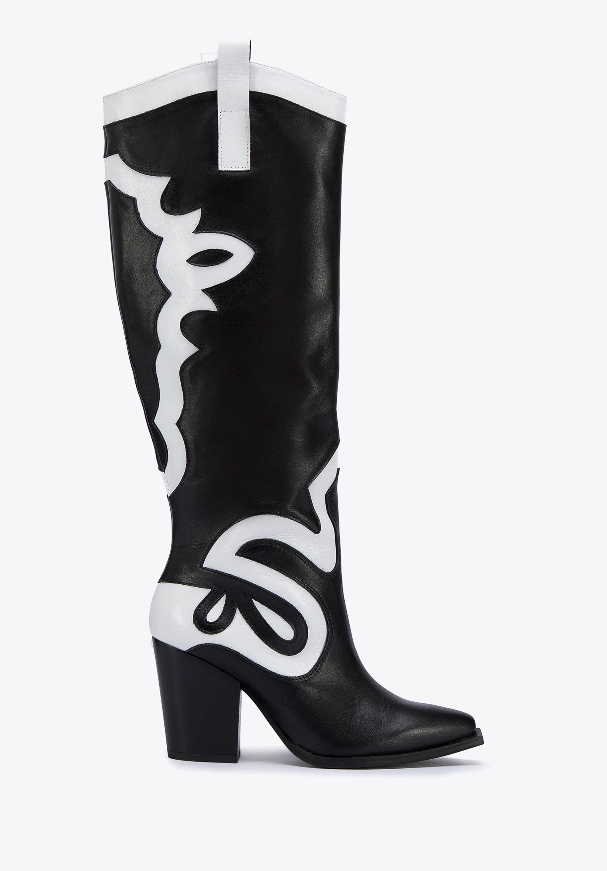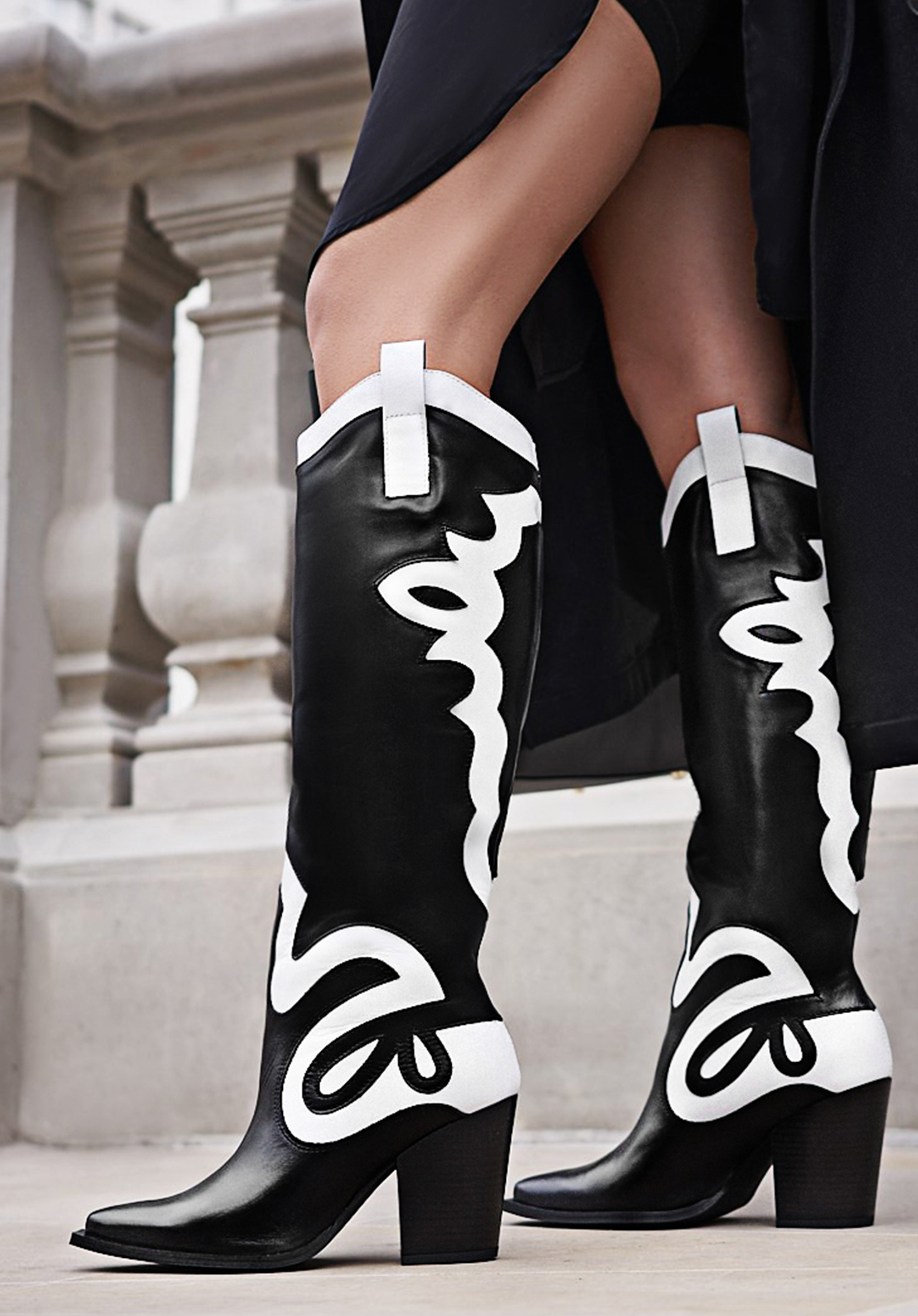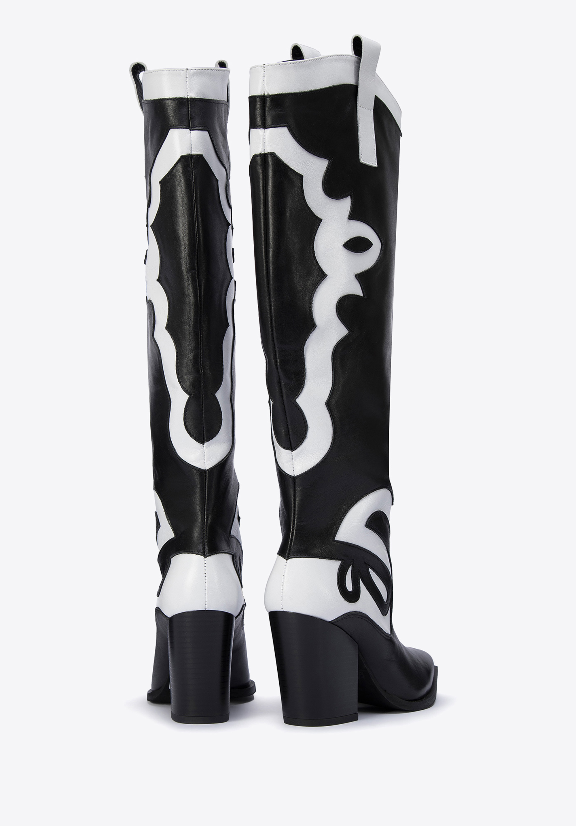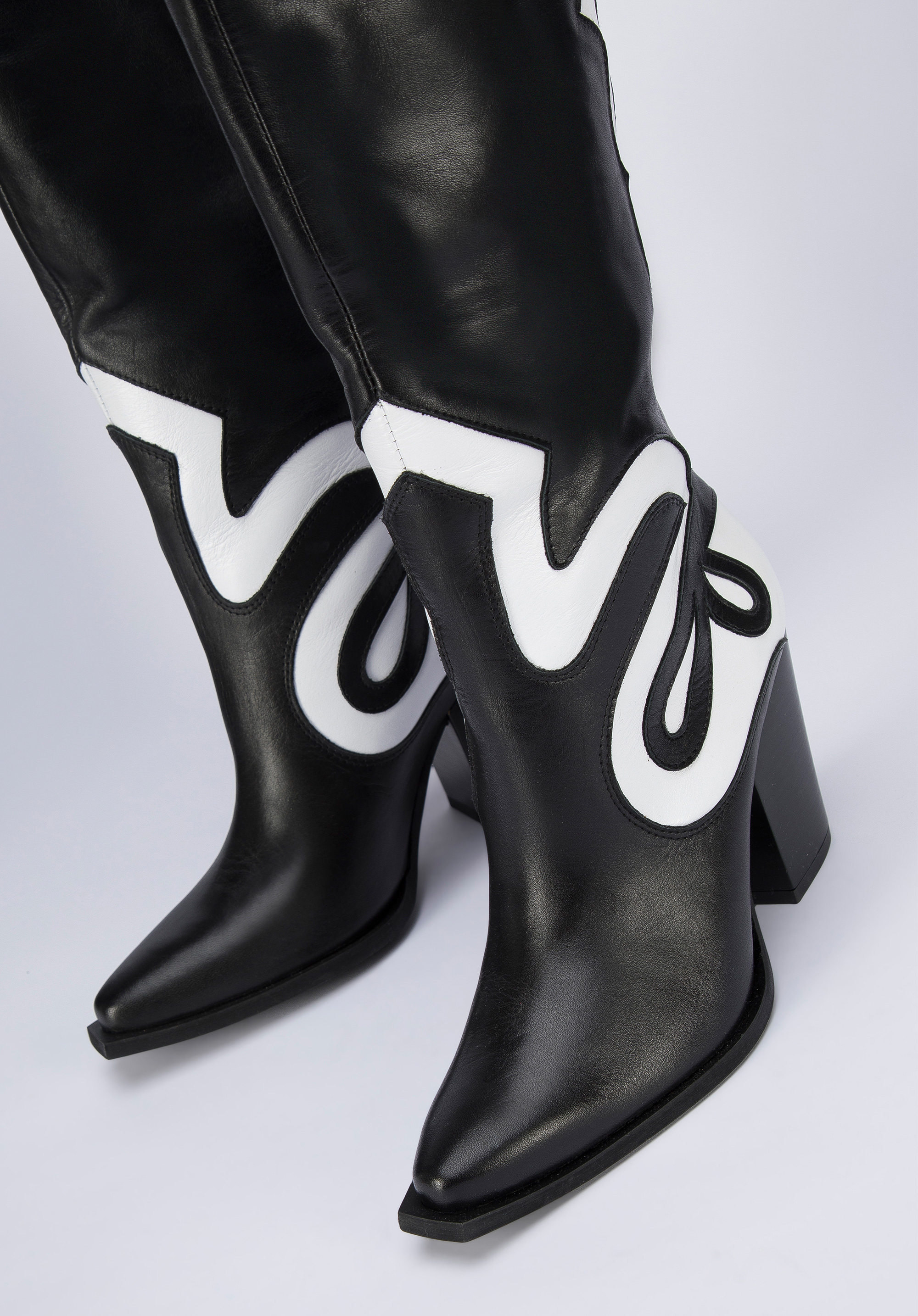 У цих стильних ковбойських чоботях ви не залишитеся непоміченою. Зверху вони мають унікальний двоколірний малюнок. Вони виготовлені з якісної натуральної шкіри, тому є аксесуаром на роки. Вони мають досить високий, але зручний каблук, а завдяки шкіряній устілці на них можна комфортно ходити цілий день. Вони чудово підкреслять ніжки в поєднанні з джинсовою спідницею та картатою сорочкою, а також в осінньому варіанті з коротким жакетом. Двоколірні жіночі шкіряні ковбойські чоботи - чудовий вибір для жінок, які люблять грати з модою.