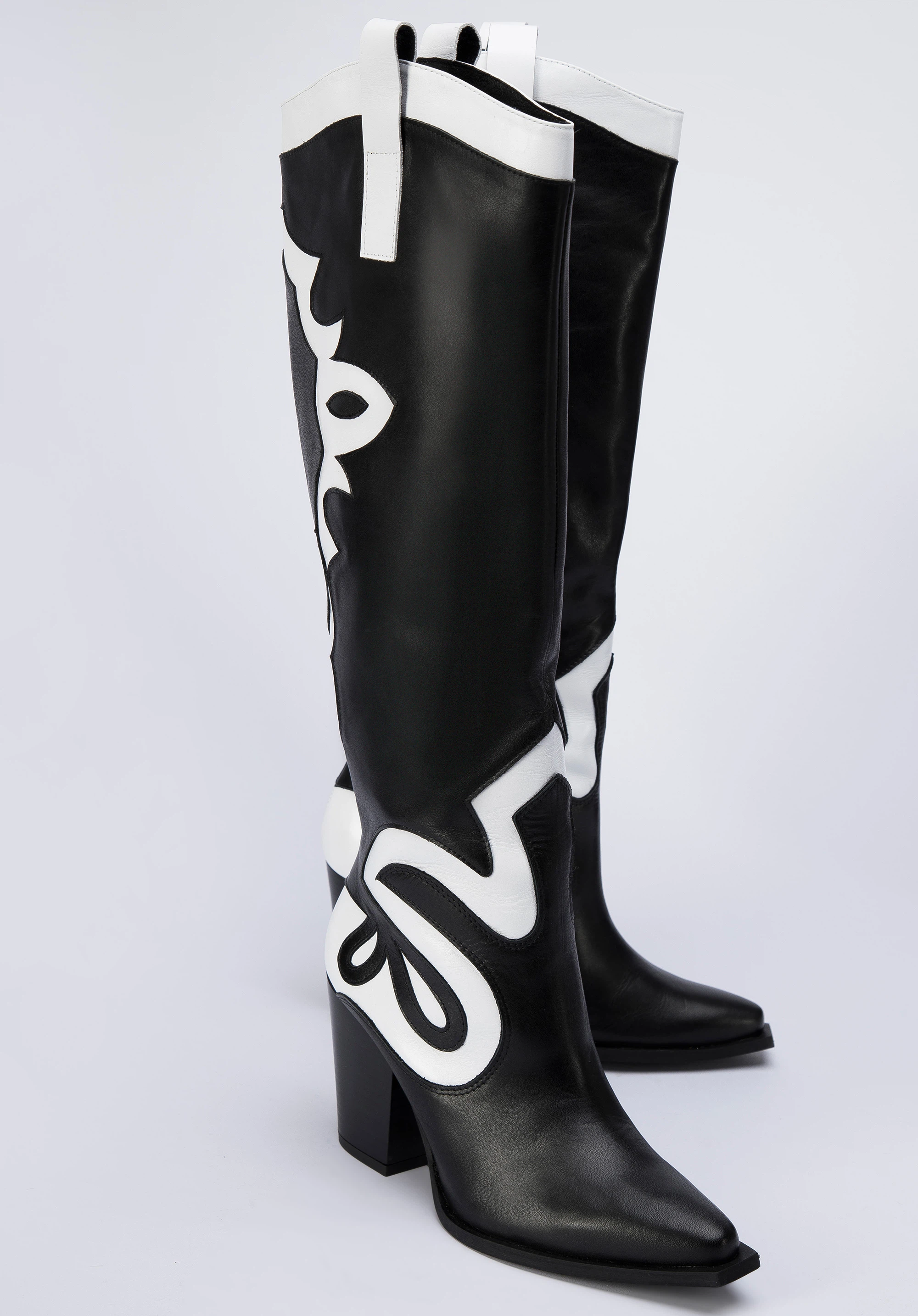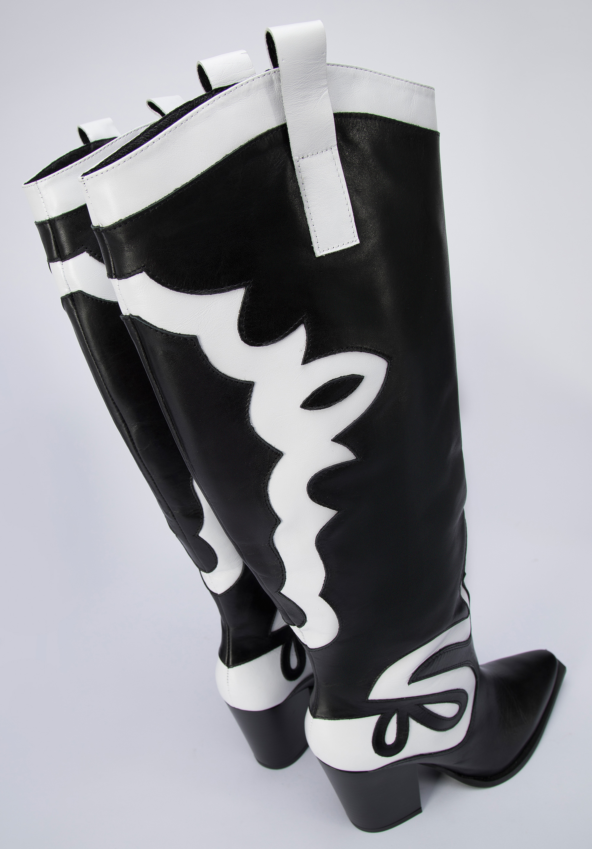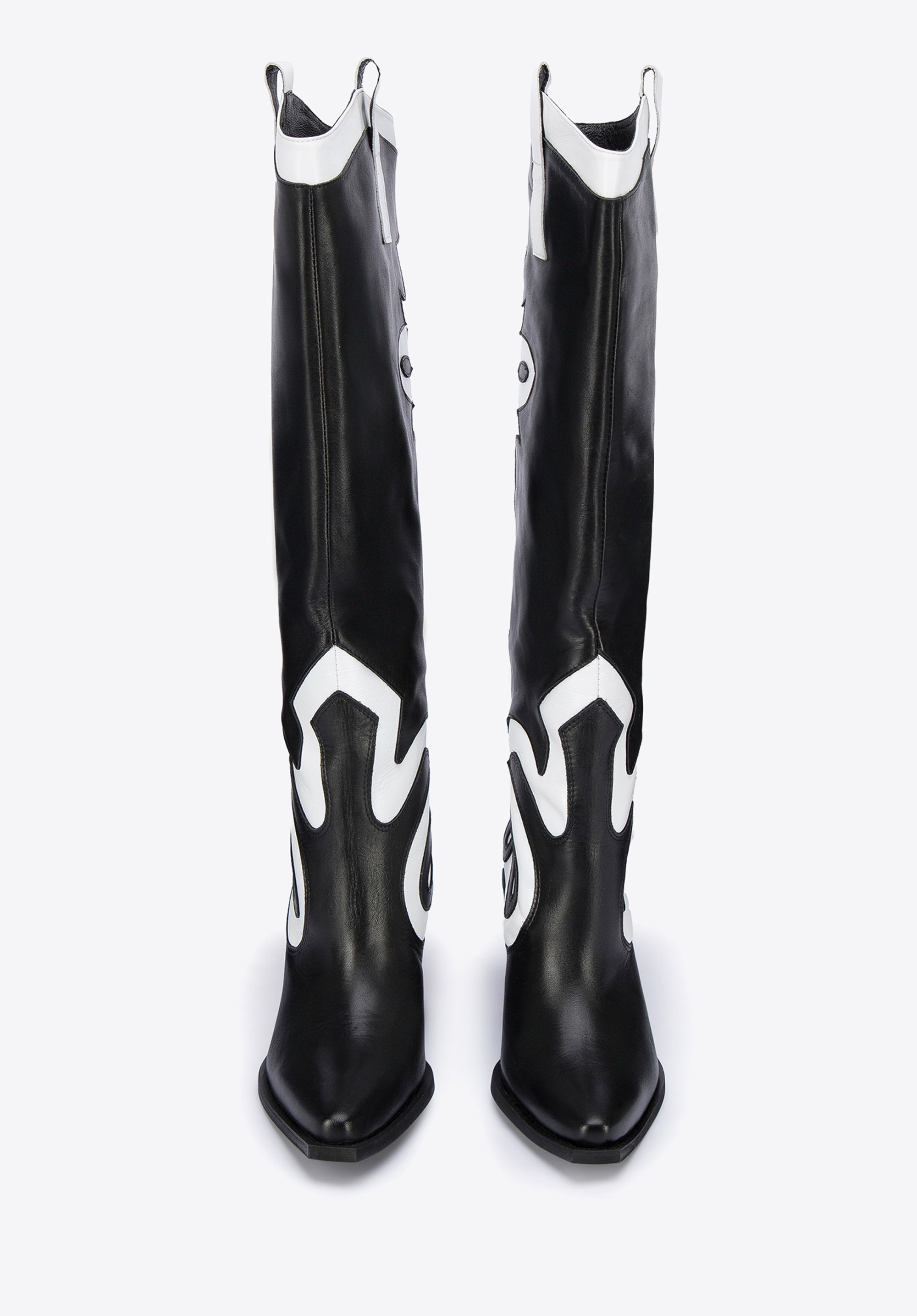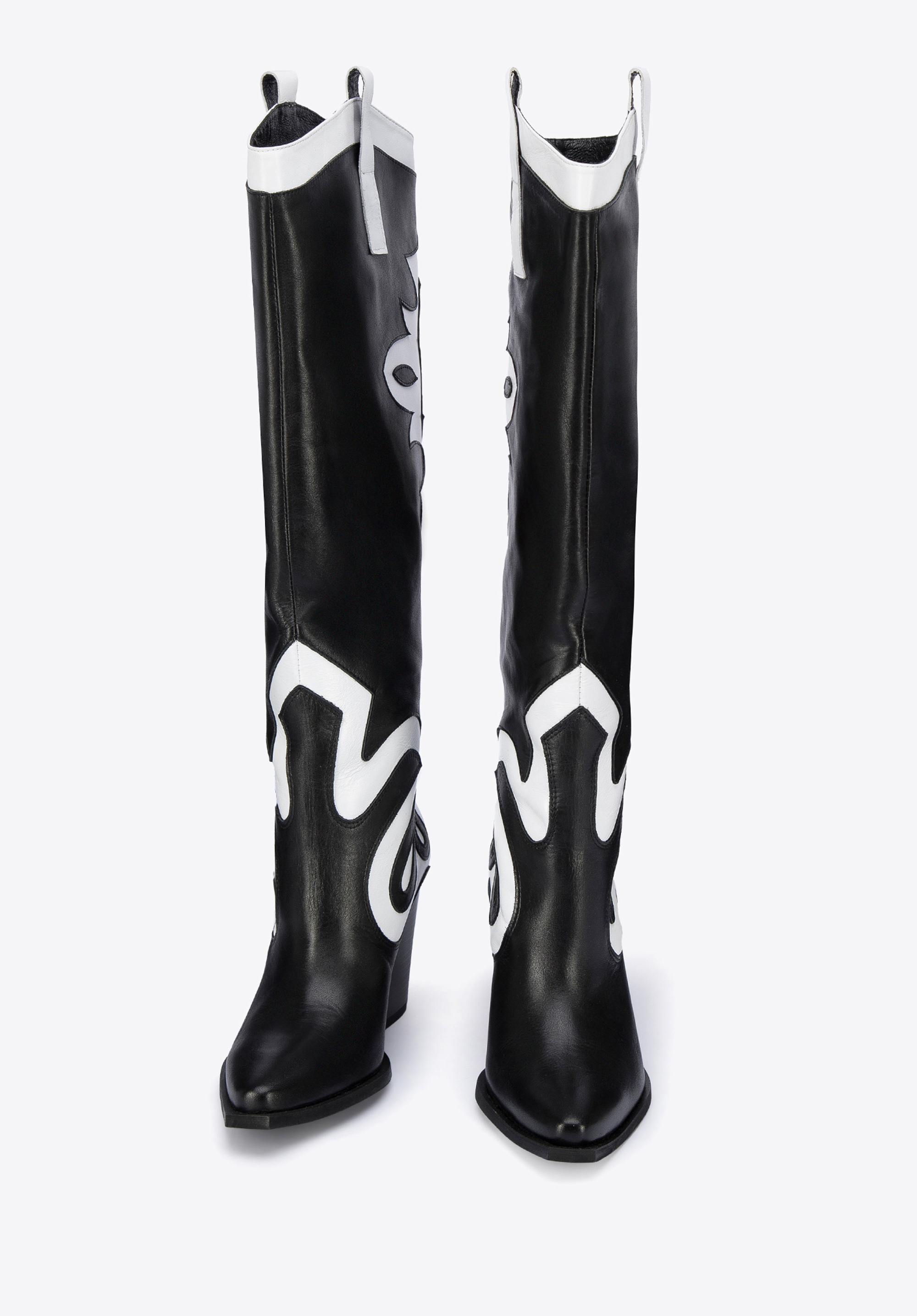 У цих стильних ковбойських чоботях ви не залишитеся непоміченою. Зверху вони мають унікальний двоколірний малюнок. Вони виготовлені з якісної натуральної шкіри, тому є аксесуаром на роки. Вони мають досить високий, але зручний каблук, а завдяки шкіряній устілці на них можна комфортно ходити цілий день. Вони чудово підкреслять ніжки в поєднанні з джинсовою спідницею та картатою сорочкою, а також в осінньому варіанті з коротким жакетом. Двоколірні жіночі шкіряні ковбойські чоботи - чудовий вибір для жінок, які люблять грати з модою.