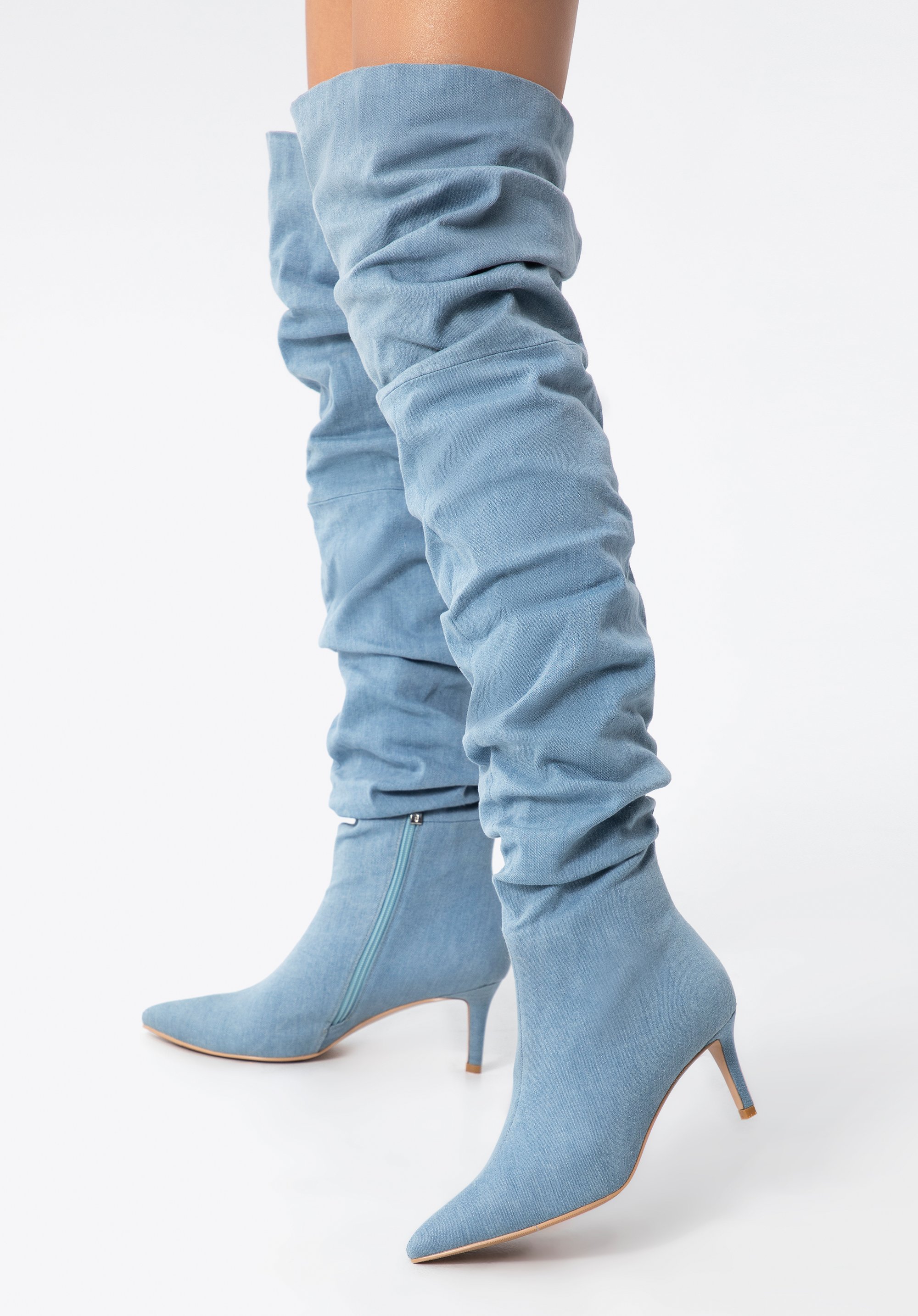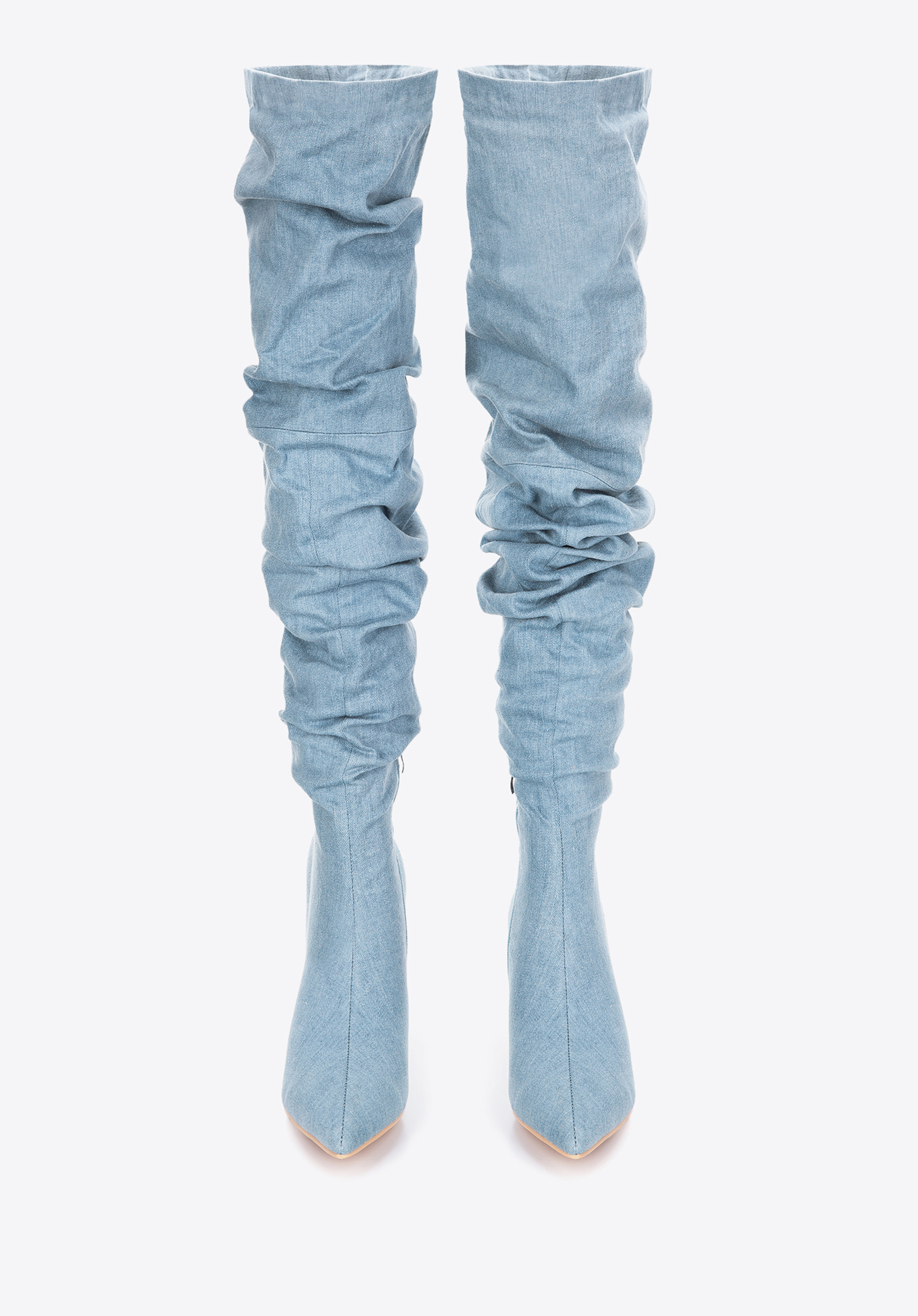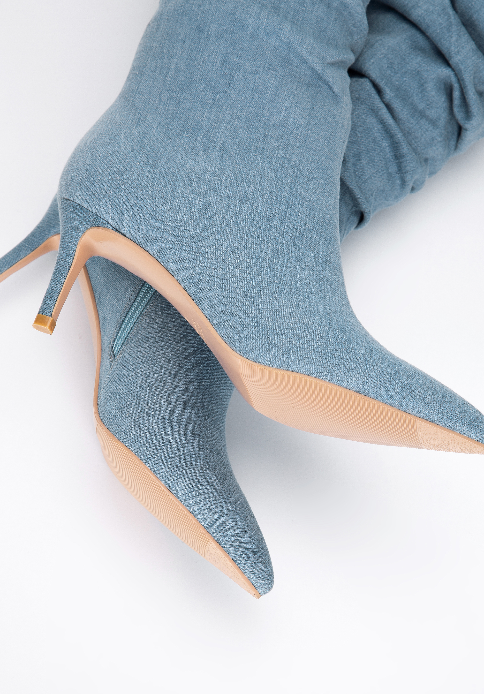 Якщо ви стежите за модними тенденціями, то повинні знати, що жіночі чоботи вище коліна – наймодніше взуття цього сезону! Це чудовий вибір для жінок, які люблять інтригувати та привертати увагу. Якщо ви хочете виділитися з натовпу, ви не пройдете повз них байдужим. Виготовлені з бавовняної тканини (денім), вони надзвичайно зручні та легкі в носінні. І це незважаючи на 7-сантиметровий каблук! Зовні вони мають блискавку, що полегшує взування. Жіночі джинсові чоботи вище коліна на високих підборах - це взуття, яке обов''язково має бути у вашому гардеробі. Це буде найвдаліша покупка цього сезону!