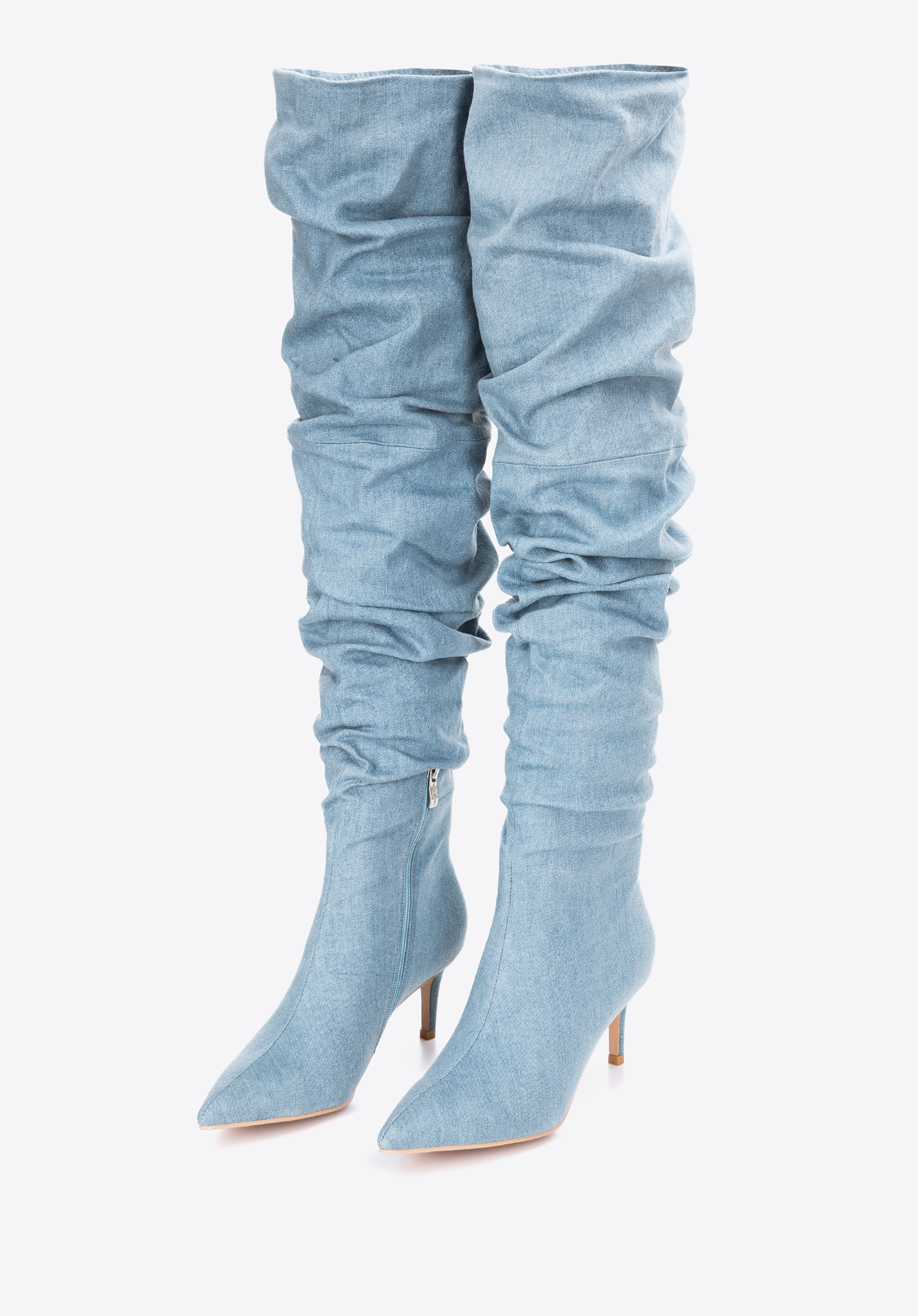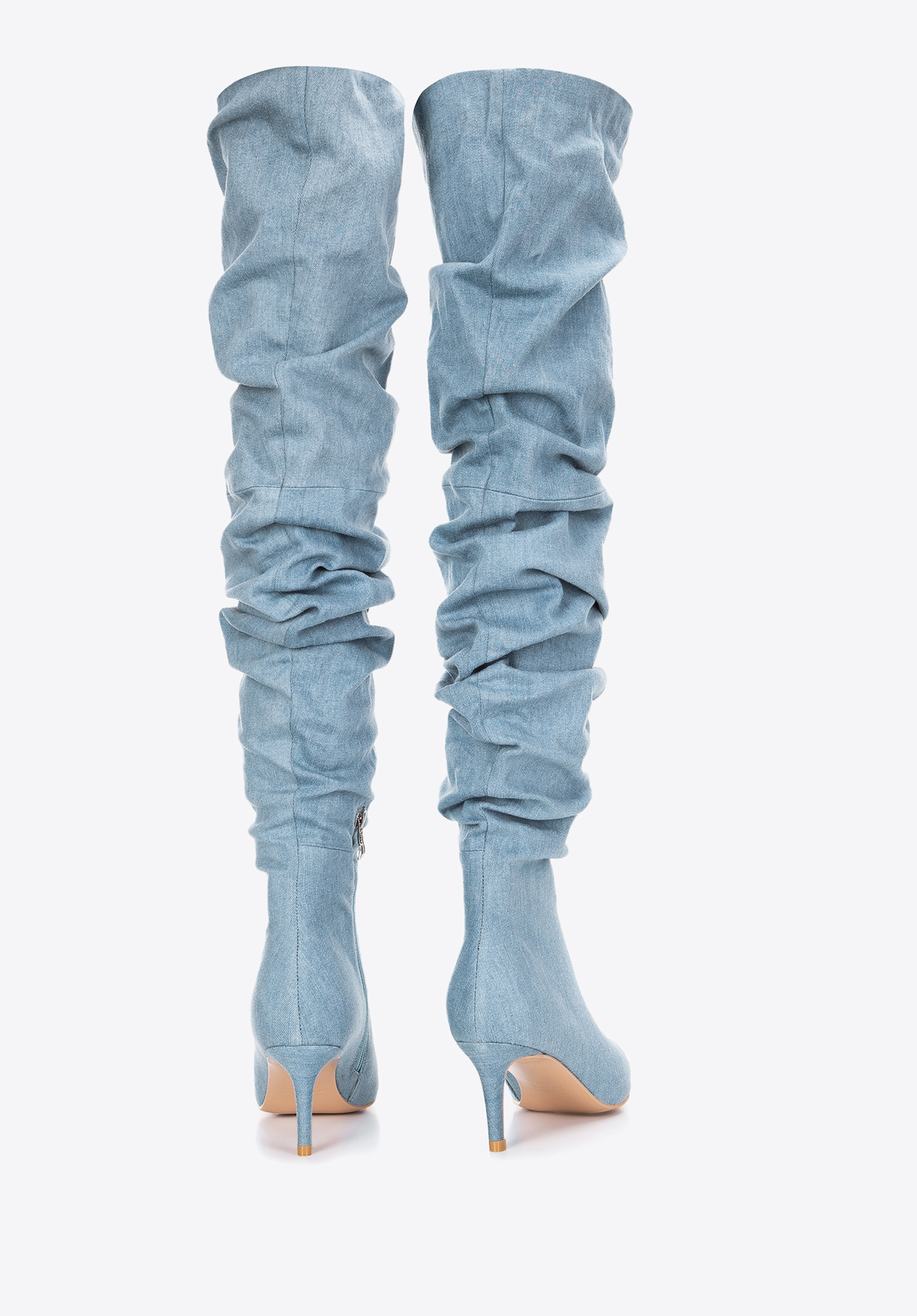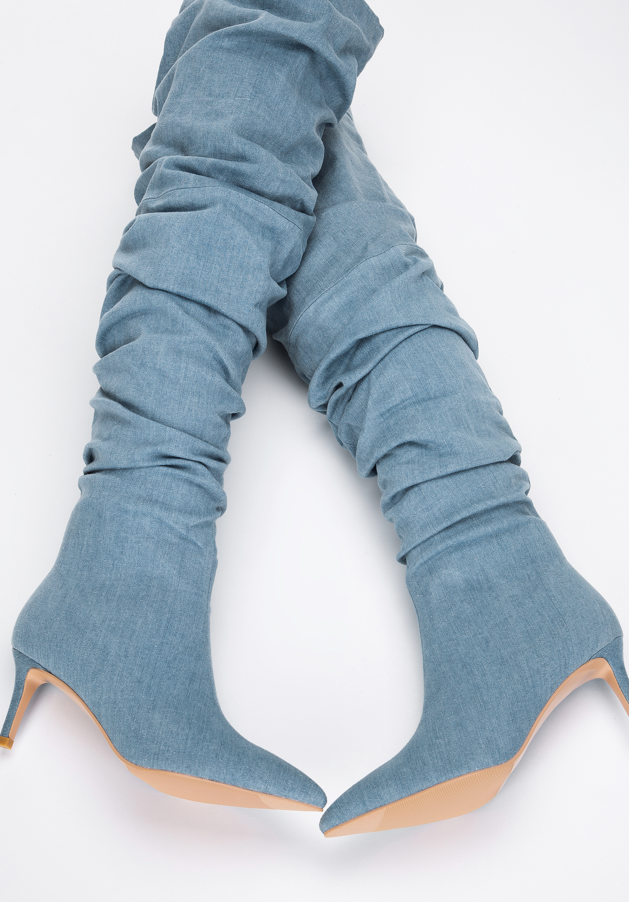 Якщо ви стежите за модними тенденціями, то повинні знати, що жіночі чоботи вище коліна – наймодніше взуття цього сезону! Це чудовий вибір для жінок, які люблять інтригувати та привертати увагу. Якщо ви хочете виділитися з натовпу, ви не пройдете повз них байдужим. Виготовлені з бавовняної тканини (денім), вони надзвичайно зручні та легкі в носінні. І це незважаючи на 7-сантиметровий каблук! Зовні вони мають блискавку, що полегшує взування. Жіночі джинсові чоботи вище коліна на високих підборах - це взуття, яке обов''язково має бути у вашому гардеробі. Це буде найвдаліша покупка цього сезону!