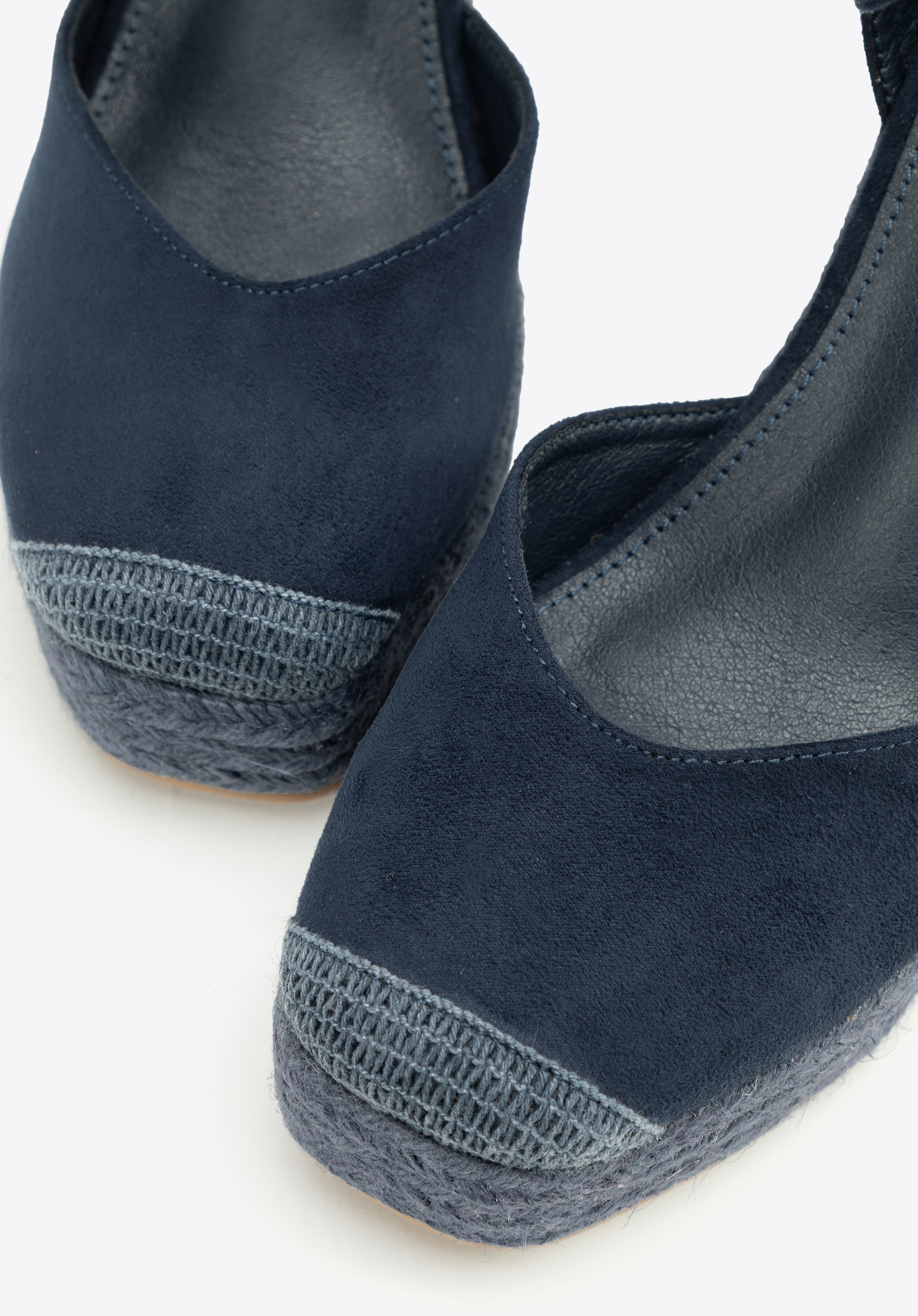 Стильні та елегантні – ці жіночі еспадрільї поєднують класичний стиль з літньою повсякденністю. Виготовлені з синтетичного матеріалу, вони привертають увагу декоративним плетінням на носку та краю підошви. Квадратний носок і танкетка оптично звужують силует, а тонкий логотип надає їм елегантного характеру. Ремінець із пряжкою та приваблива шнурівка навколо щиколотки дозволяють вам налаштувати стиль відповідно до власних уподобань.