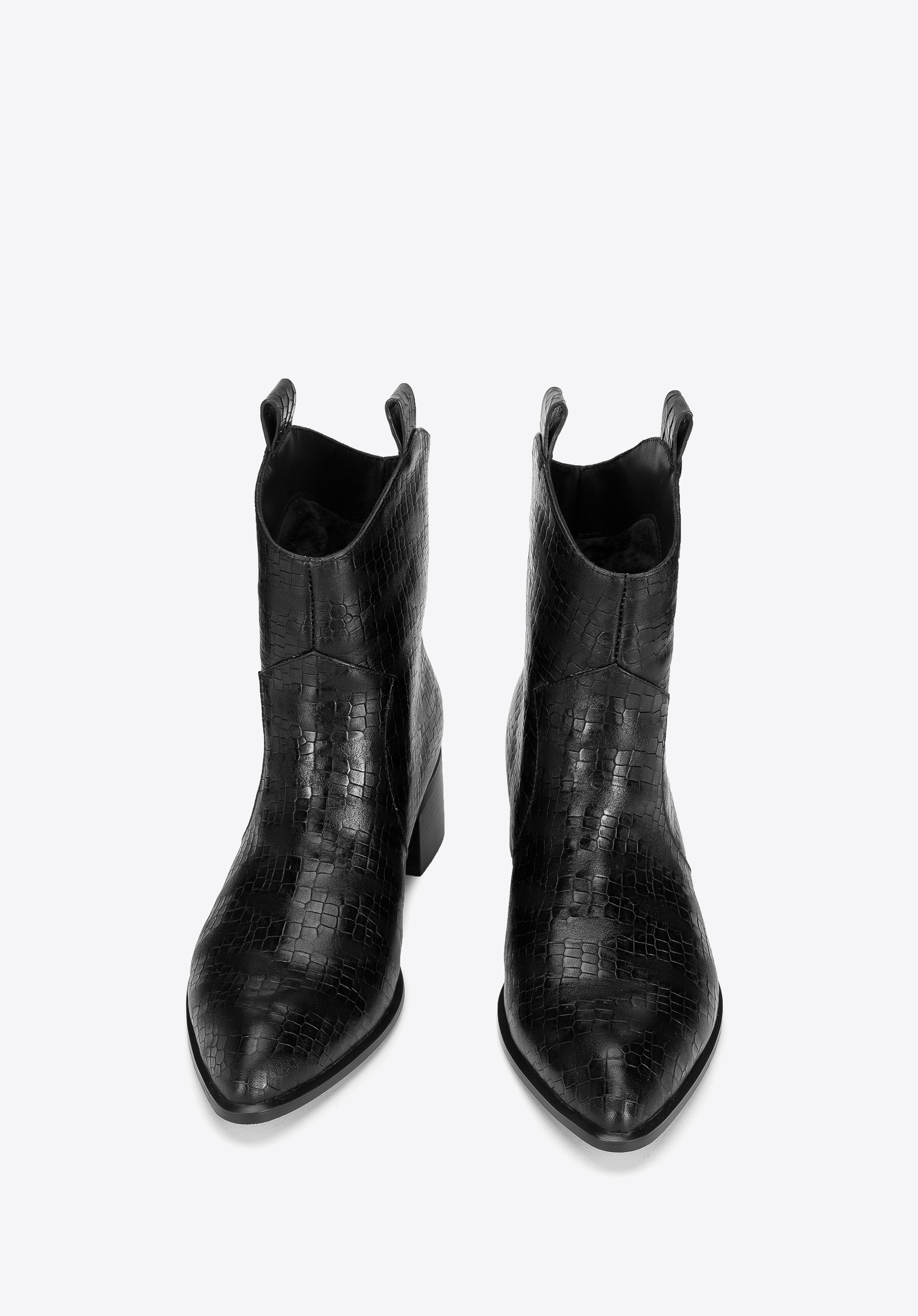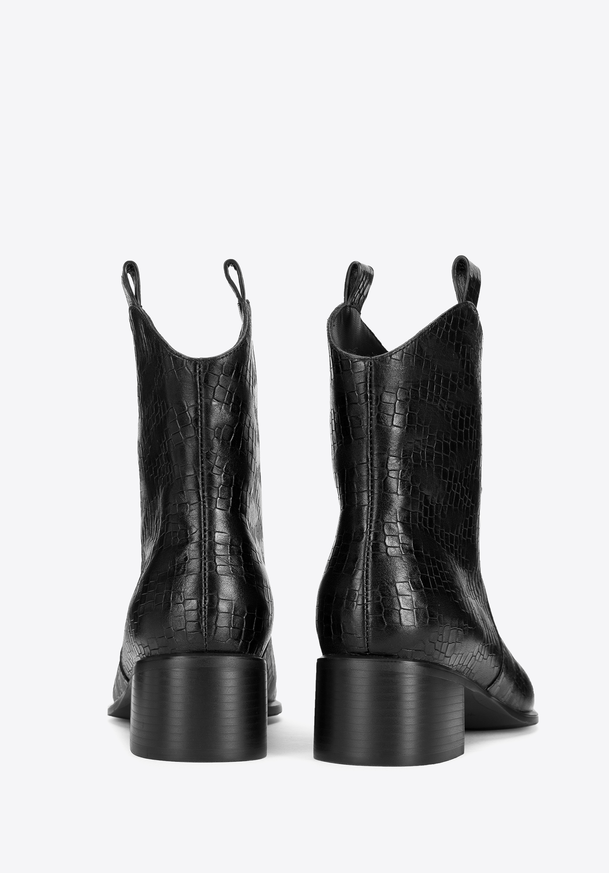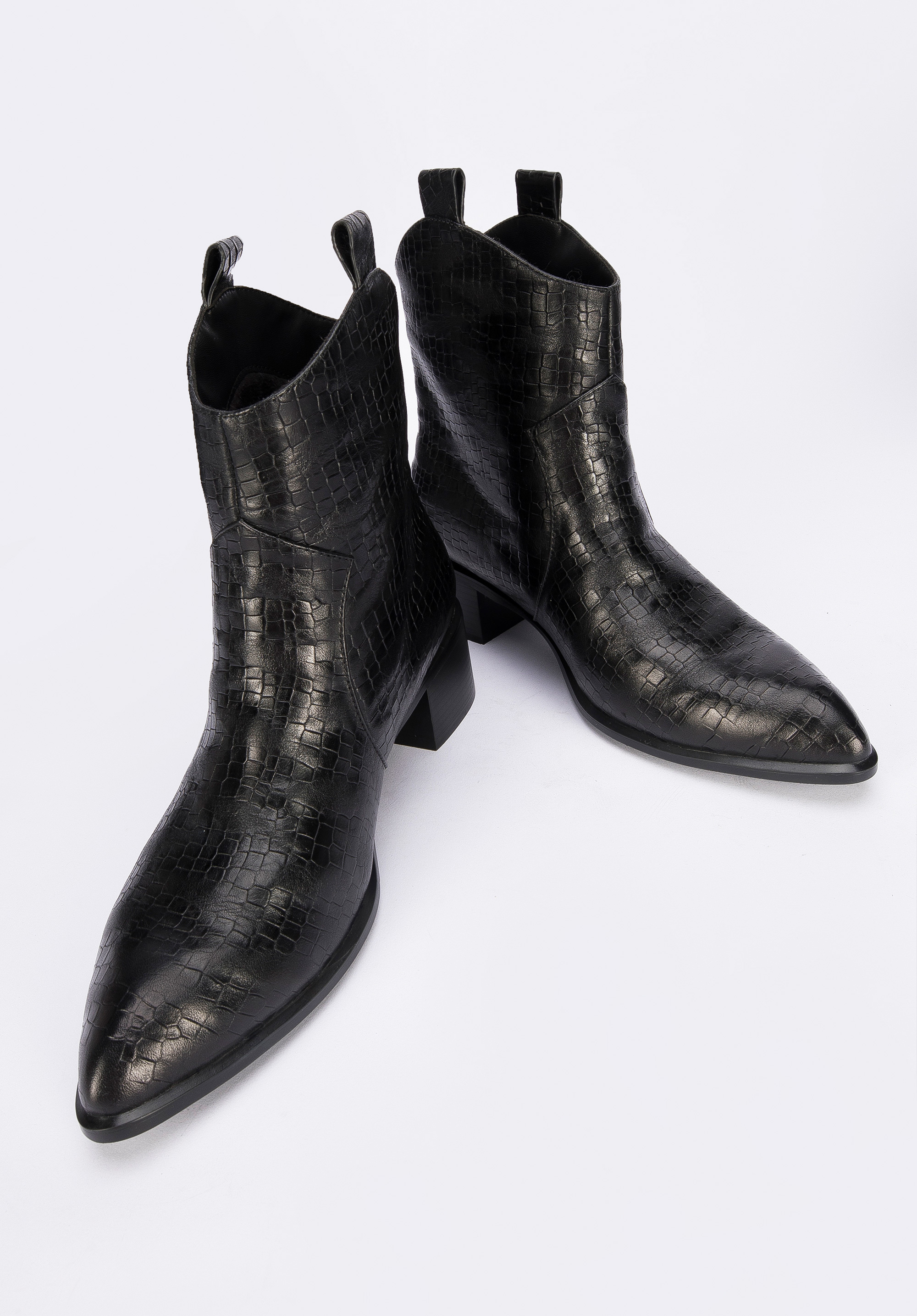 Ці стильні ковбойські чоботи підкреслять багато стилів, як з брюками, так і з сукнями. Вони мають загострений носок і середній каблук, який трохи виступає за контури взуття, тому в них можна комфортно ходити майже весь день. Виготовлені з високоякісної натуральної шкіри з текстурою croco з делікатними потертостями. Вони чудово виглядатимуть як з джинсами, так і з повсякденною сорочкою, а також зі шкіряним міні та футболкою. Жіночі ковбойські чоботи з шкіри croco - це стильний аксесуар, який можна носити кожен день.