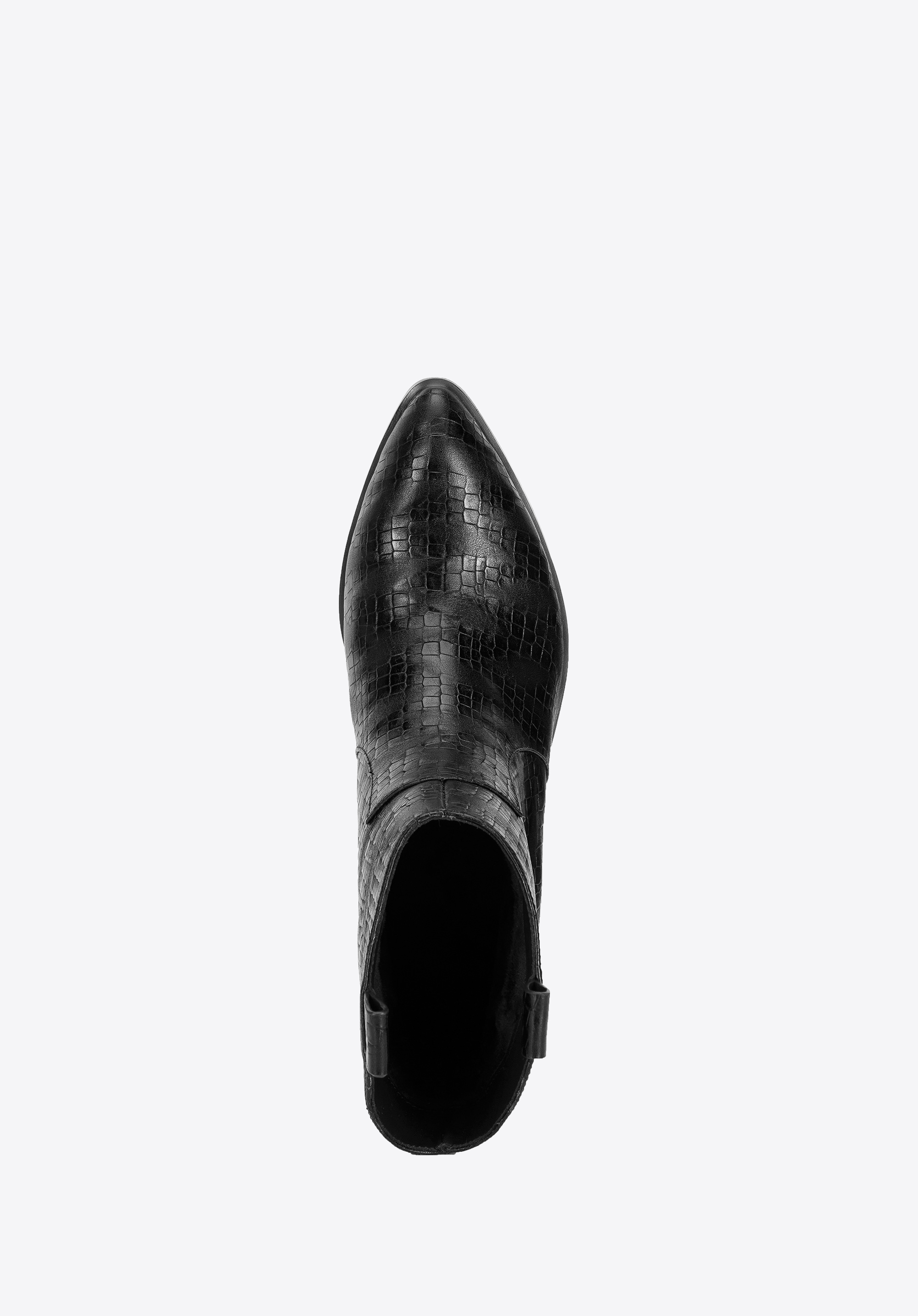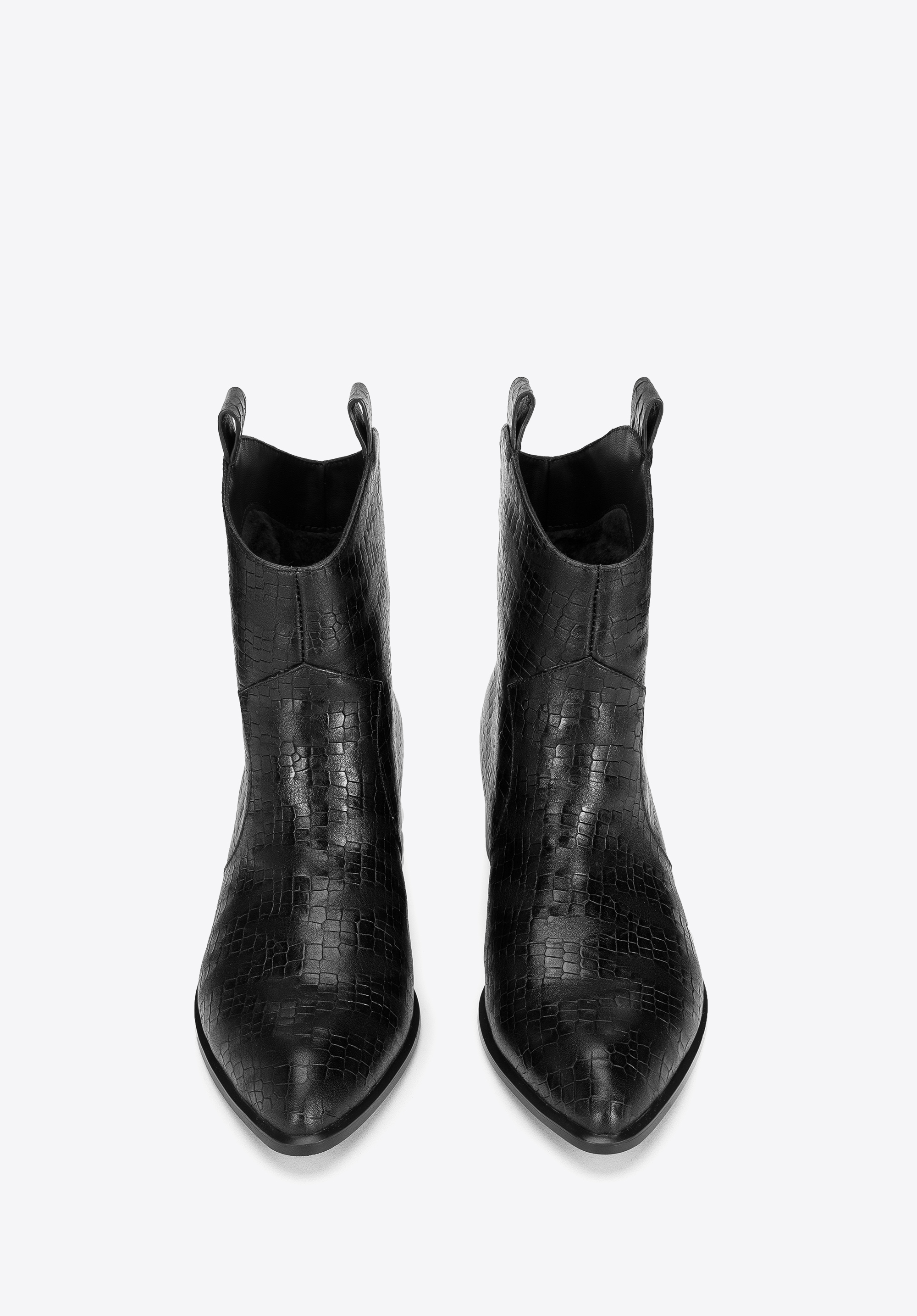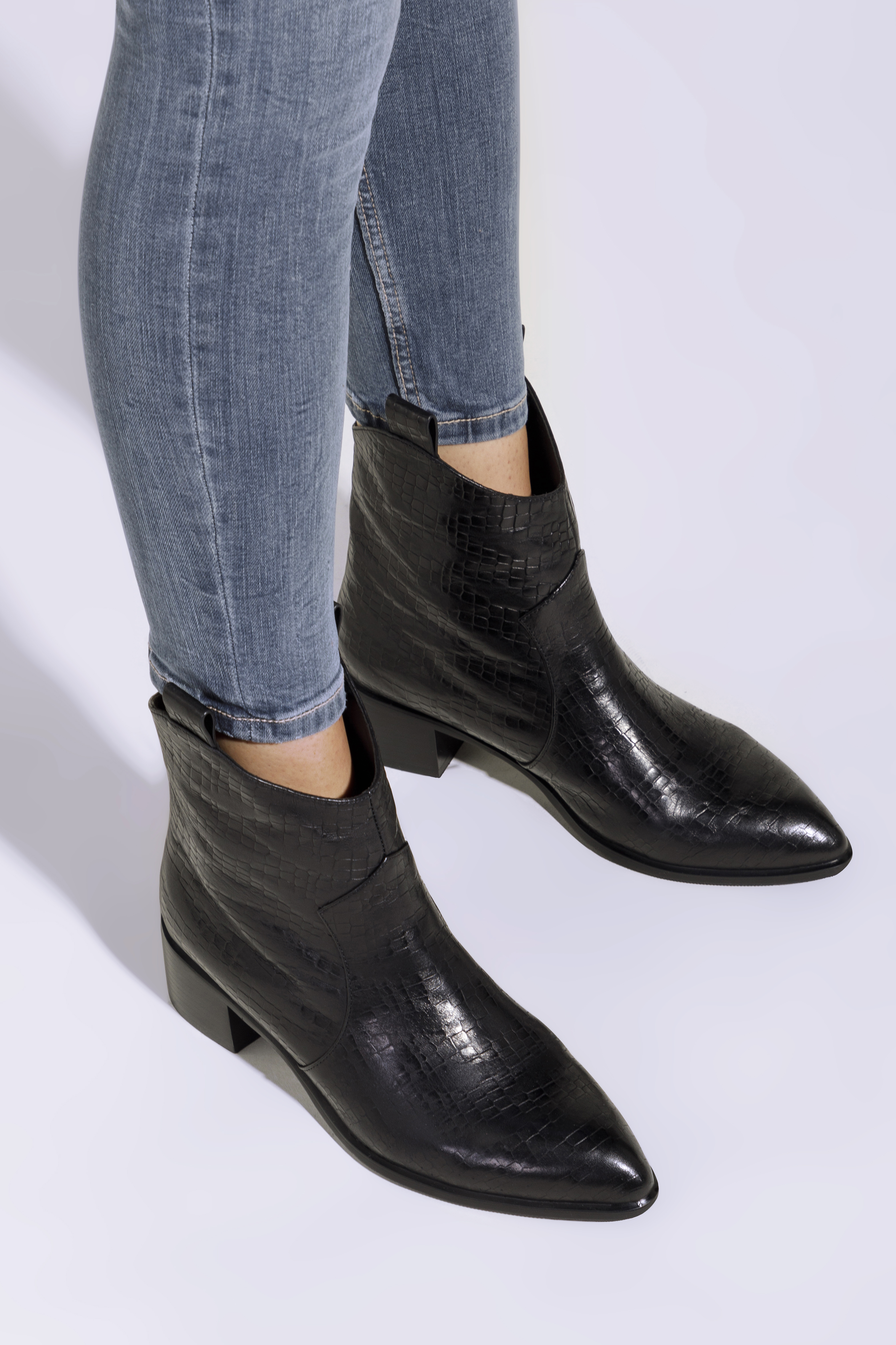 Ці стильні ковбойські чоботи підкреслять багато стилів, як з брюками, так і з сукнями. Вони мають загострений носок і середній каблук, який трохи виступає за контури взуття, тому в них можна комфортно ходити майже весь день. Виготовлені з високоякісної натуральної шкіри з текстурою croco з делікатними потертостями. Вони чудово виглядатимуть як з джинсами, так і з повсякденною сорочкою, а також зі шкіряним міні та футболкою. Жіночі ковбойські чоботи з шкіри croco - це стильний аксесуар, який можна носити кожен день.