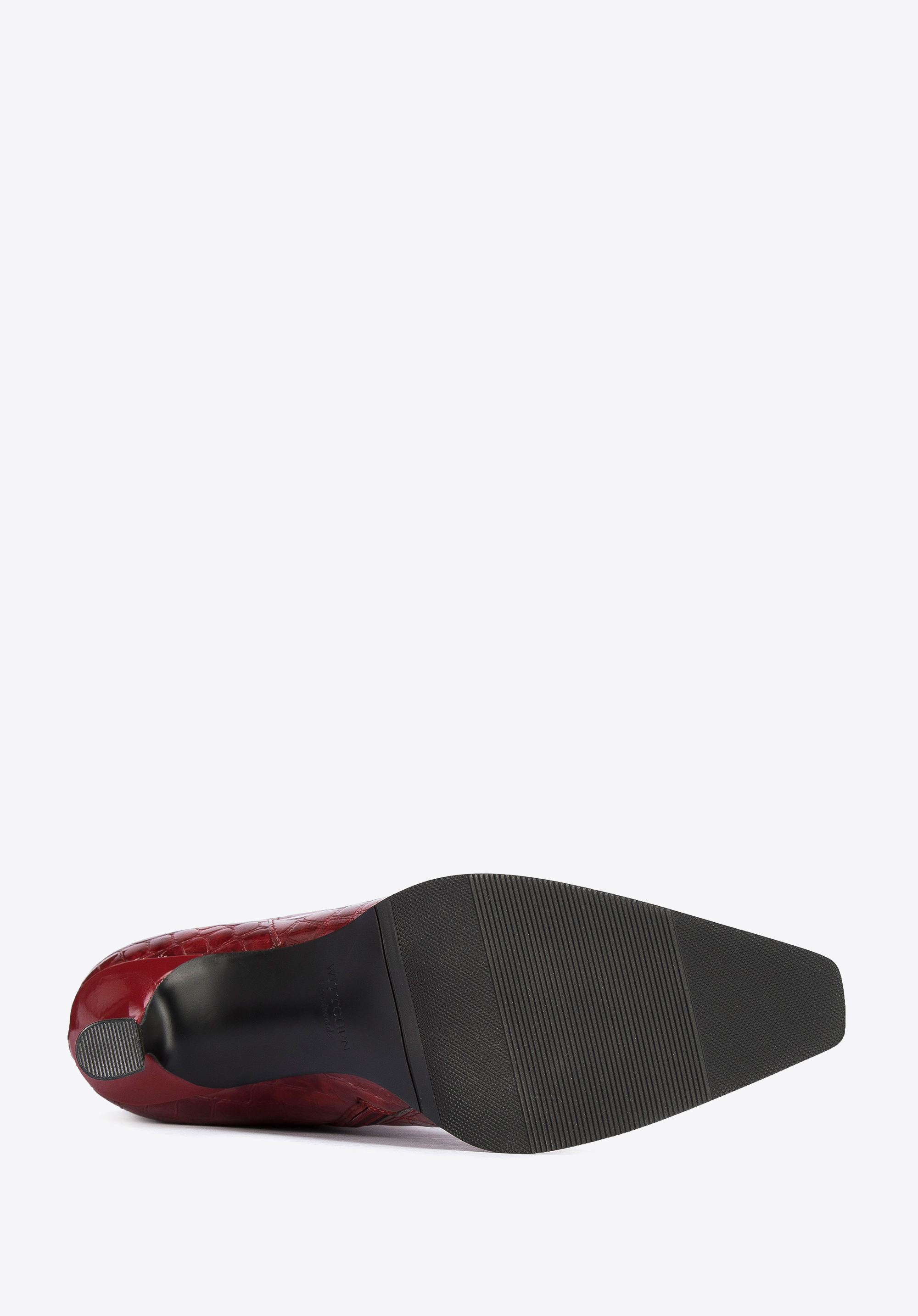 Жіночі козаки з лакованої шкіри croco на шпильці бордові