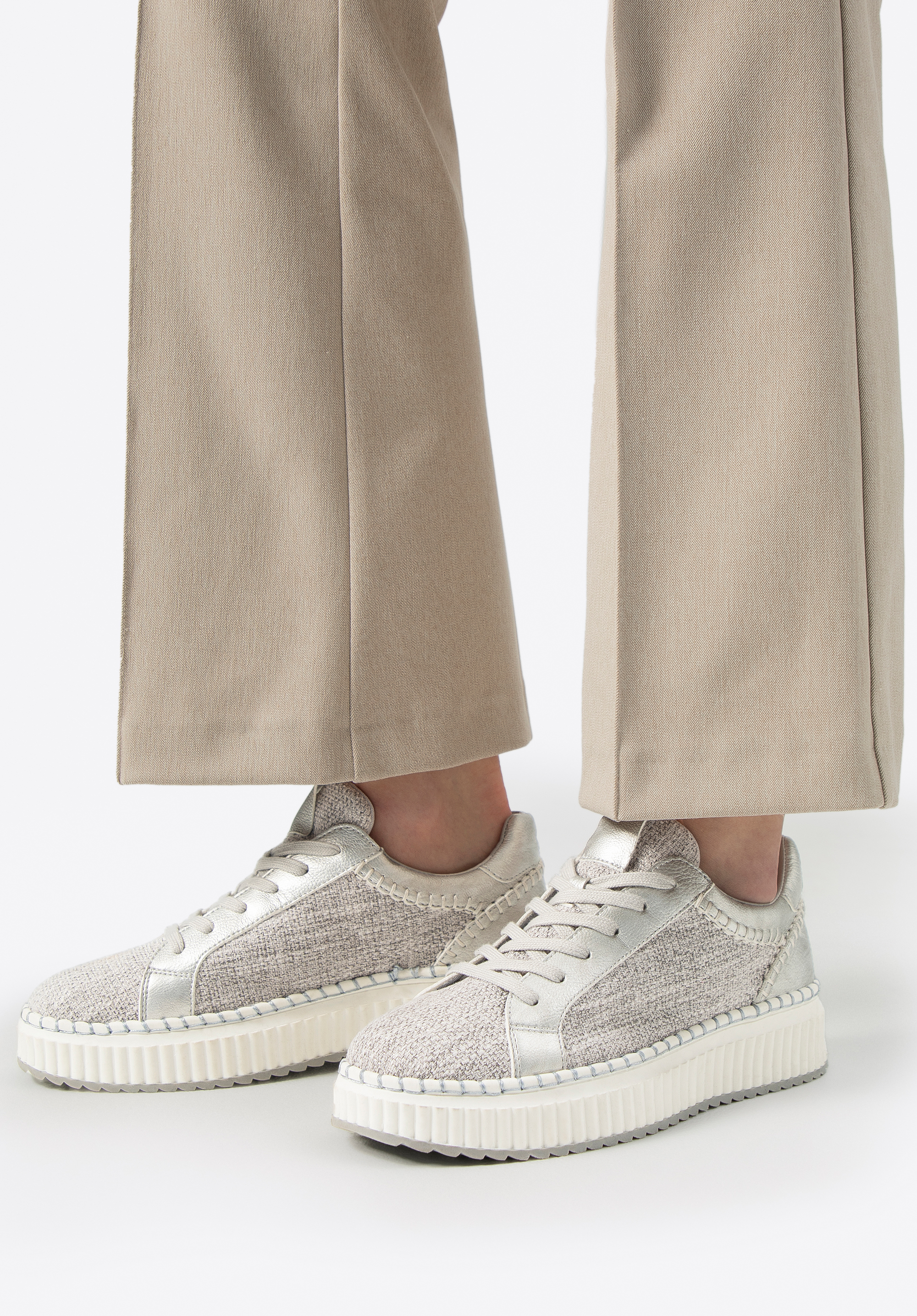 Наші кросівки , виготовлені з високоякісного текстилю та штучної шкіри , є обов'язковим елементом для кожної жінки, яка цінує елегантність та комфорт. Закруглений носок , класична шнурівка та підошва на платформі надають їм модного вигляду, а декоративна строчка підкреслює їхній унікальний характер. Устілка зі штучної шкіри та текстильна підкладка забезпечують комфорт на весь день. Оберіть стиль, який відображає вашу індивідуальність та підвищує вашу впевненість з кожним кроком!