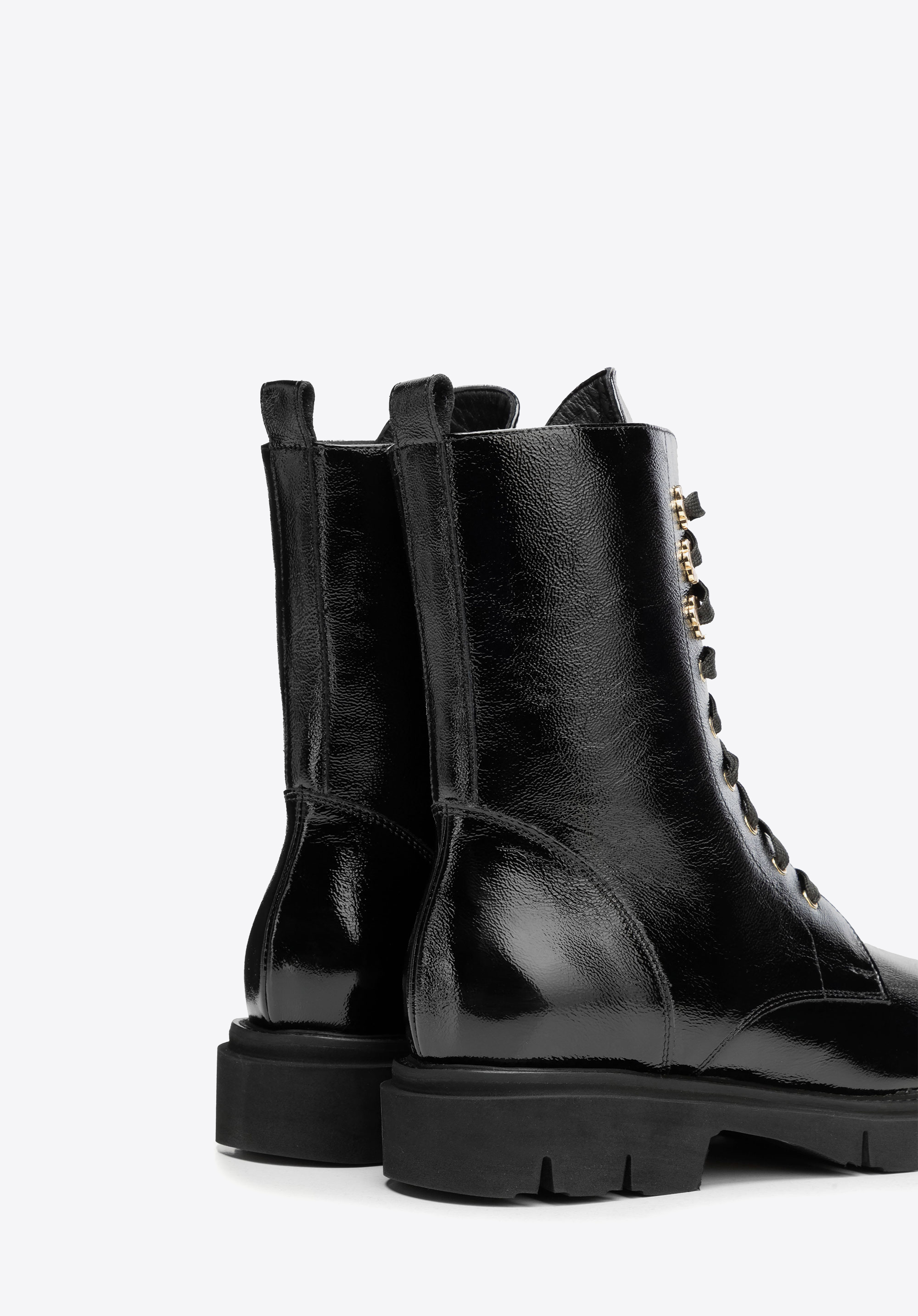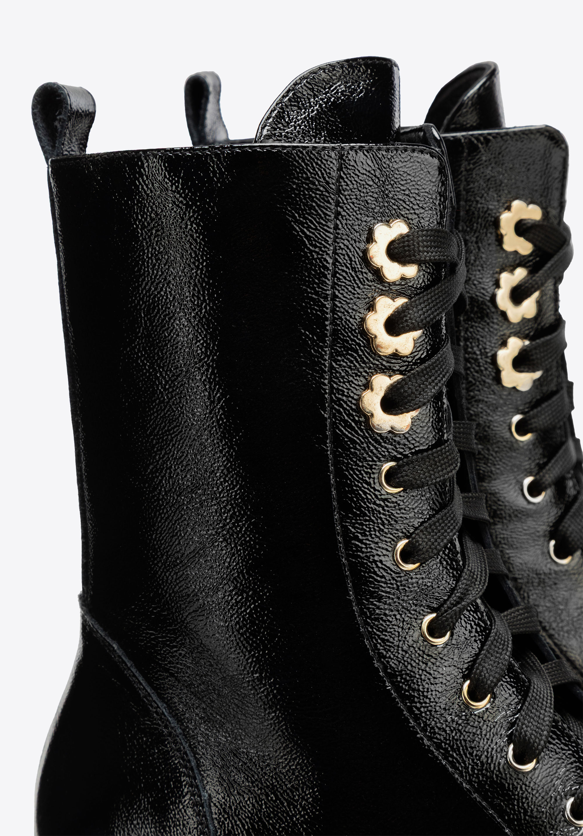 Відкрийте для себе блиск лакованої шкіри в класичному дизайні з сучасним відтінком. Ці жіночі ботильйони , виготовлені з високоякісної натуральної шкіри , поєднують функціональність з вишуканою естетикою. Шнурівки та блискавка з внутрішньої сторони забезпечують ідеальну посадку, а мигдалеподібний носок додає легкості та елегантності вашому силуету. Язичок для підтягування ззаду полегшує взування чобіт та додає їм стильного вигляду.