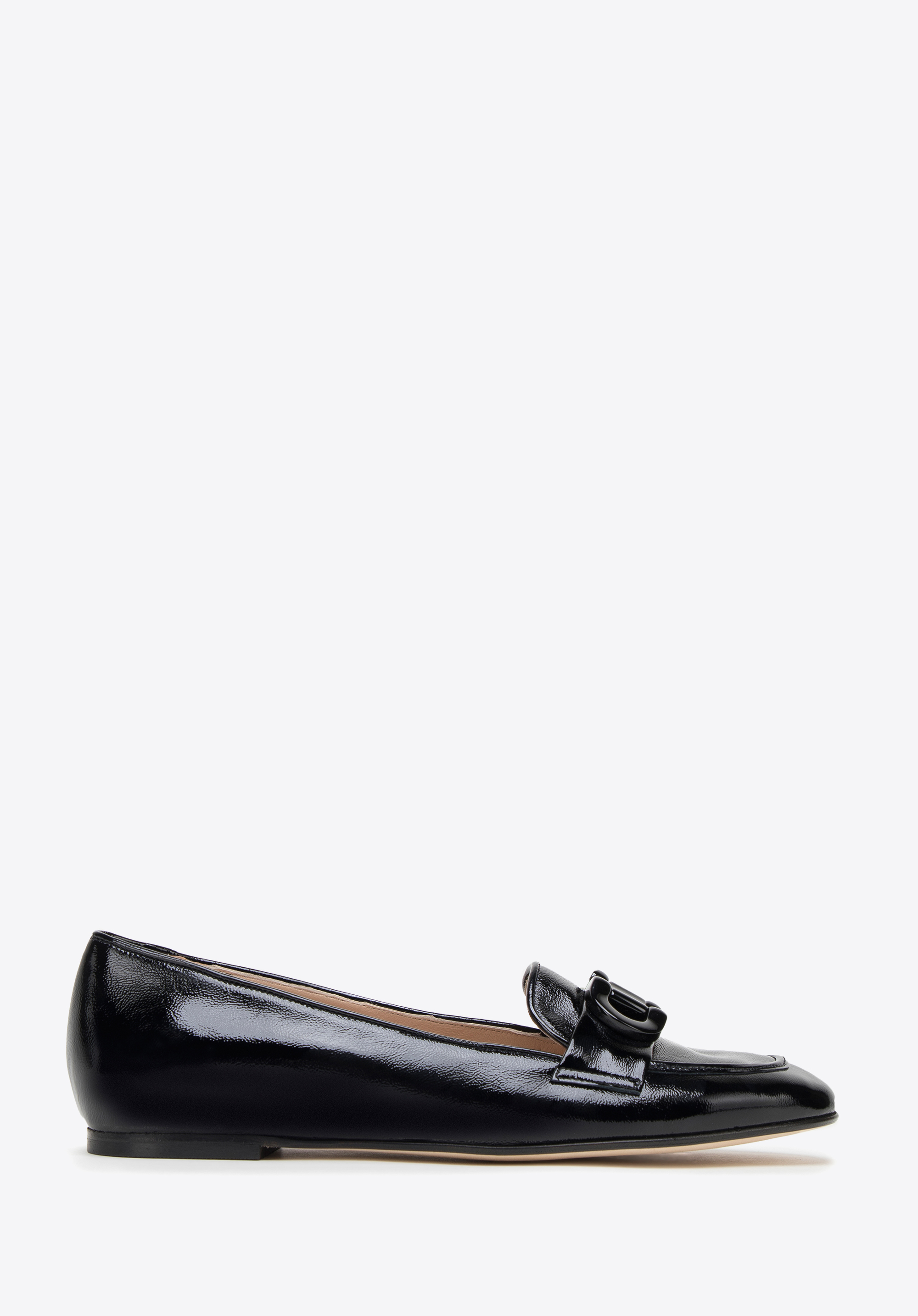 Жіночі лаковані мокасини з декоративною пряжкою Колір: чорний