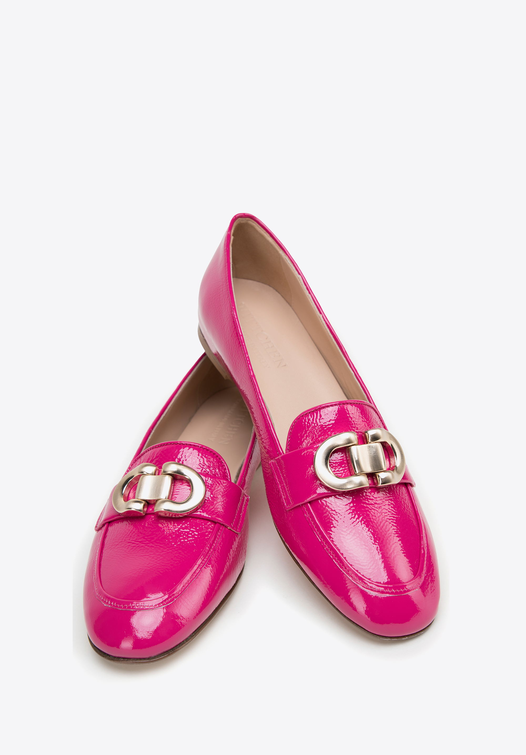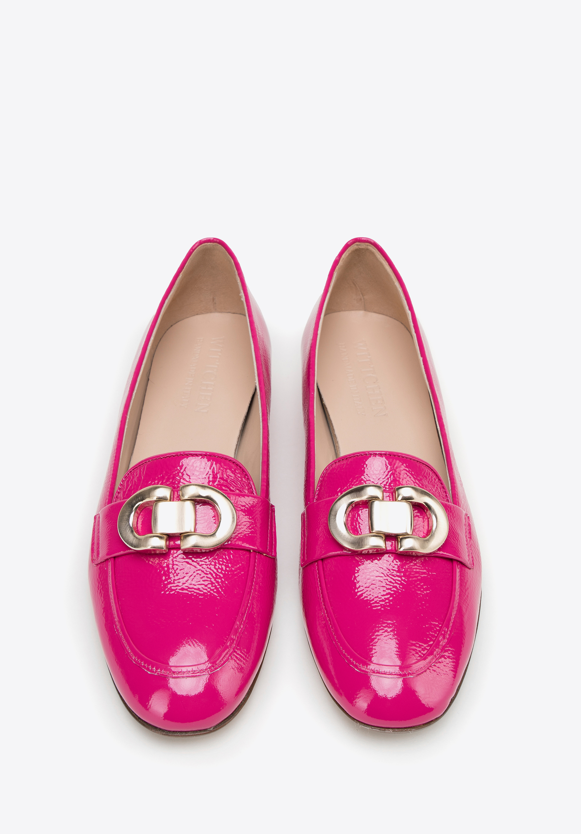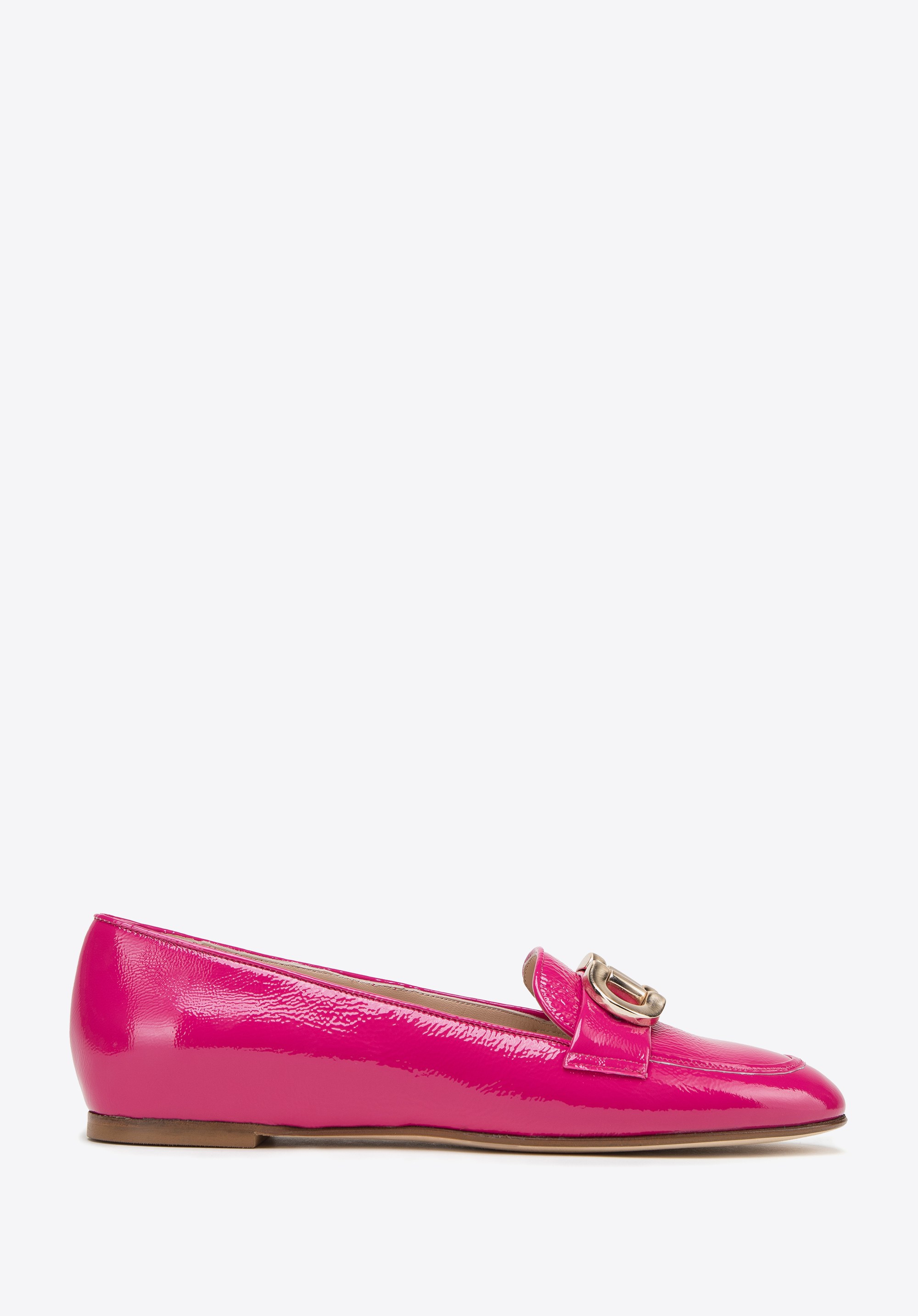 Жіночі лаковані мокасини з декоративною пряжкою Колір: рожевий