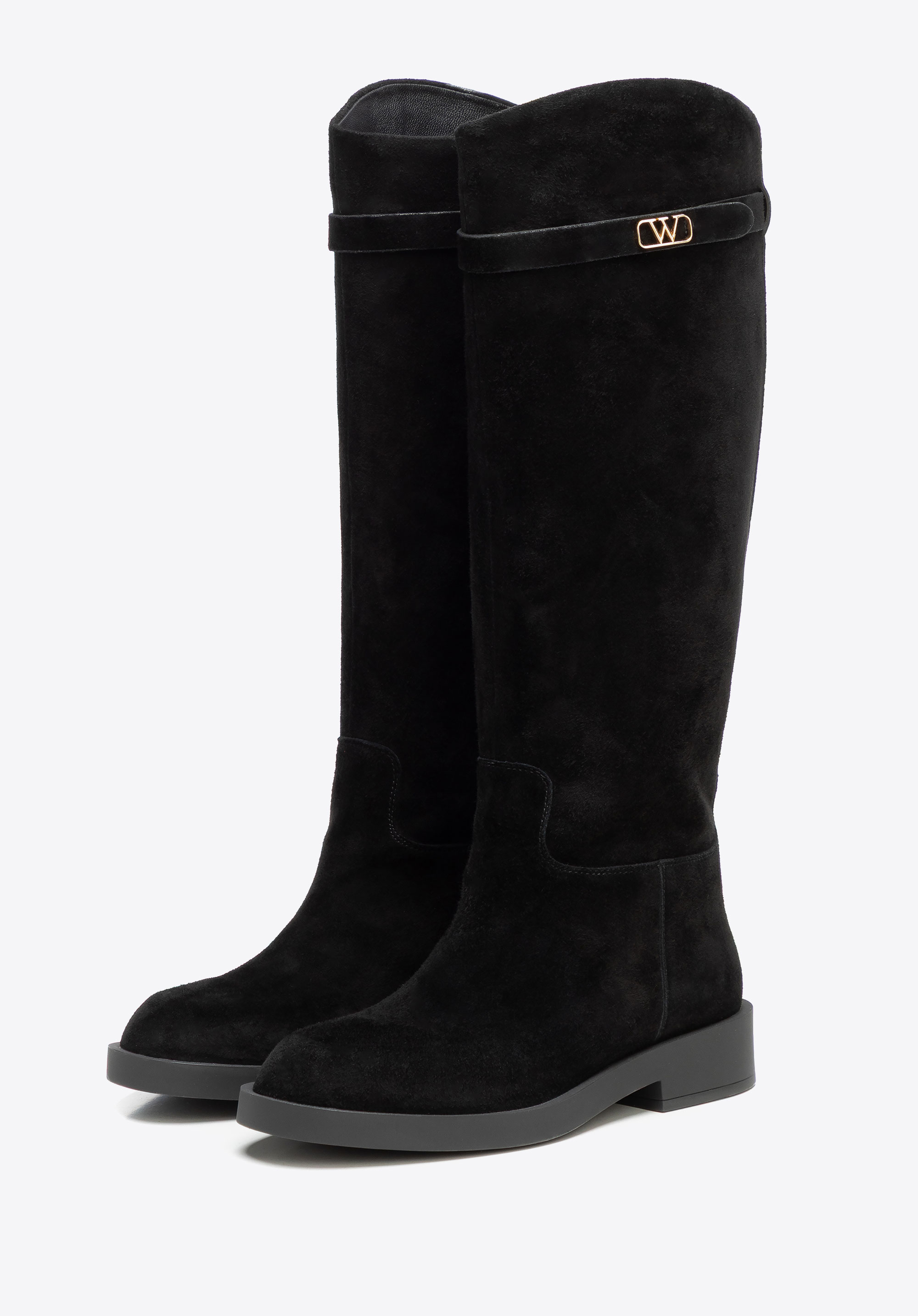 Жіночі офіцерські чоботи з натуральної замші чорні