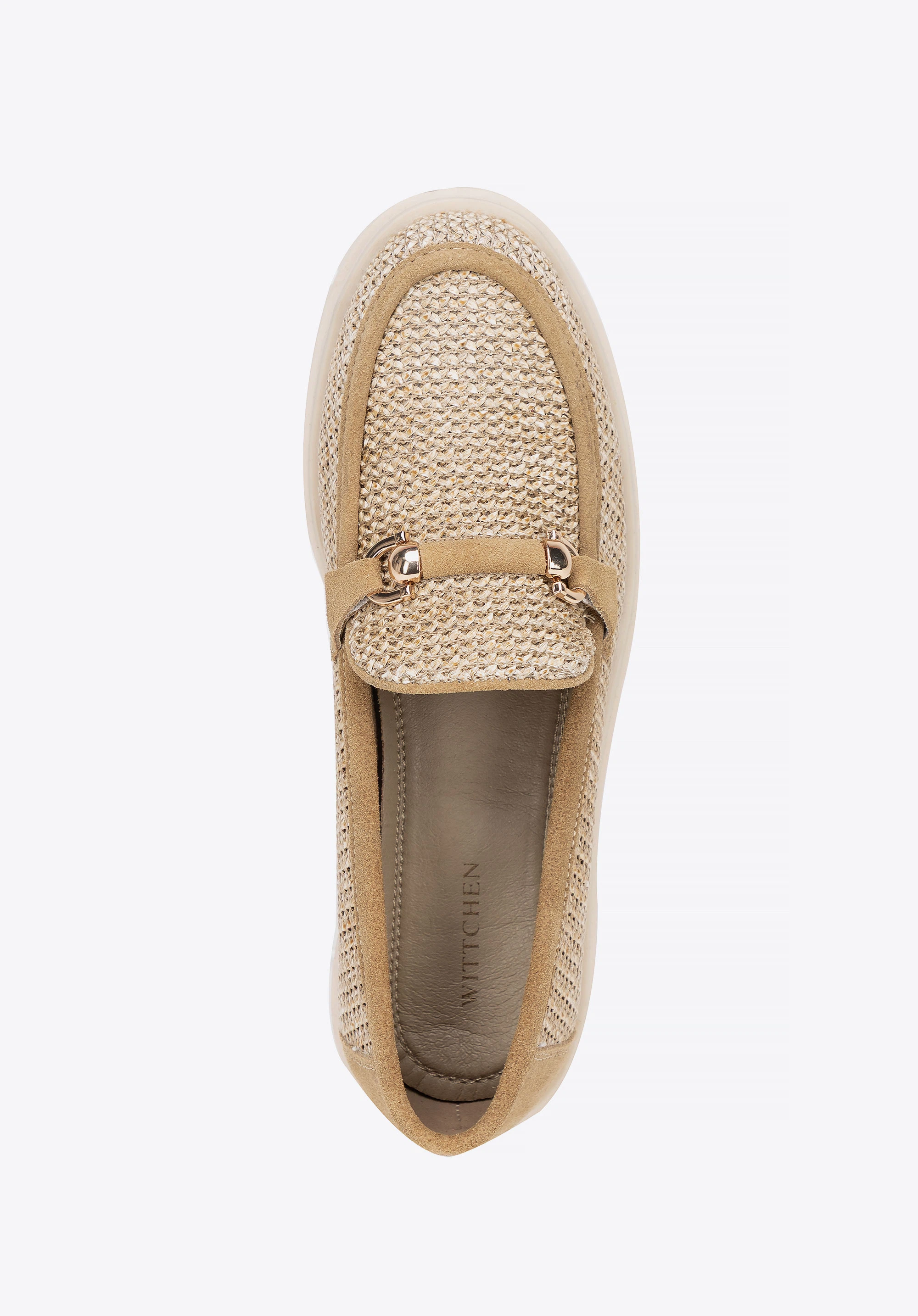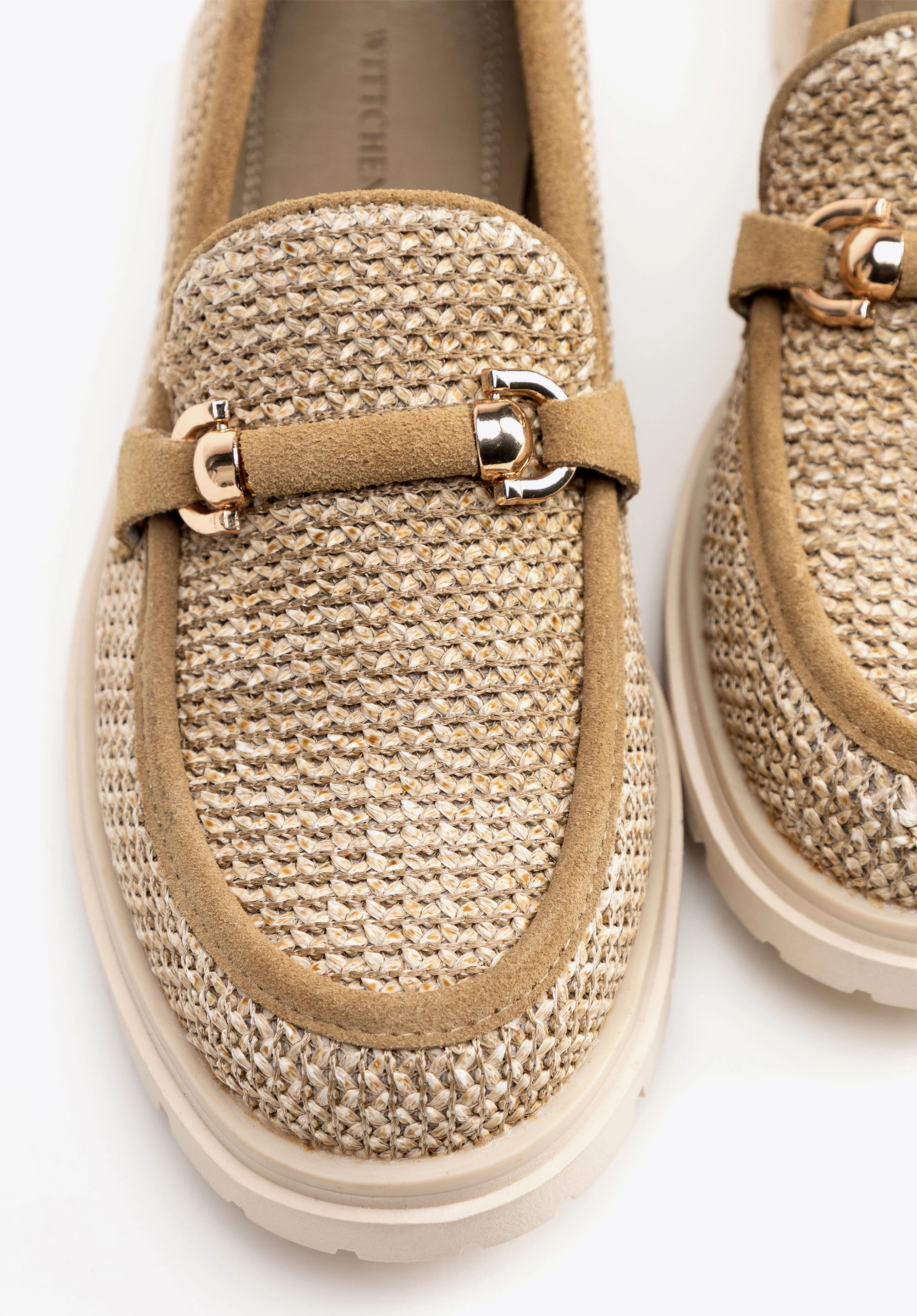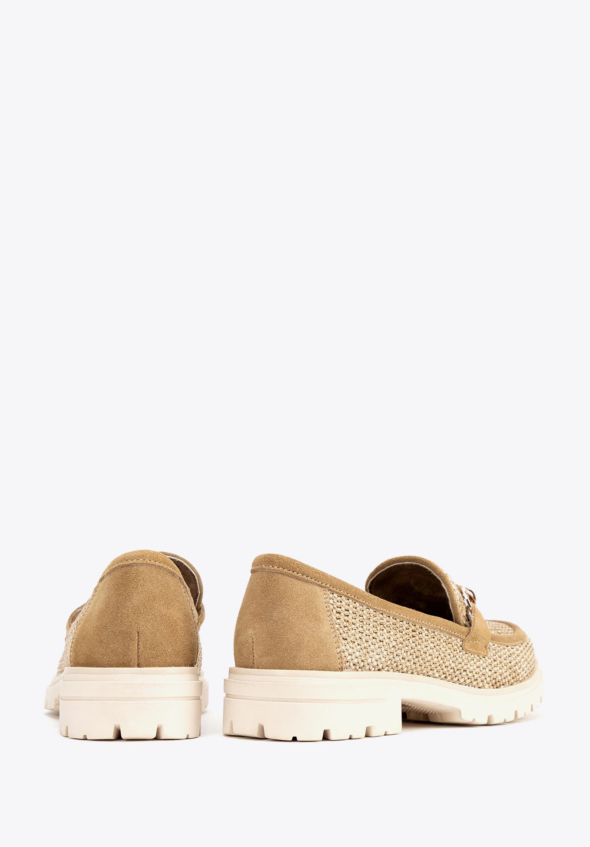 Підкресліть свій стиль мокасинами, що поєднують природну елегантність та сучасний дизайн. Модель, виготовлена зі штучної рафії та витонченої замшевої шкіри, вражає унікальним плетінням та декоративною пряжкою, що надає їй неповторного шикарного вигляду. Модель забезпечує комфорт, а платформа витончено витягує силует, пропонуючи стійкість і зручність.