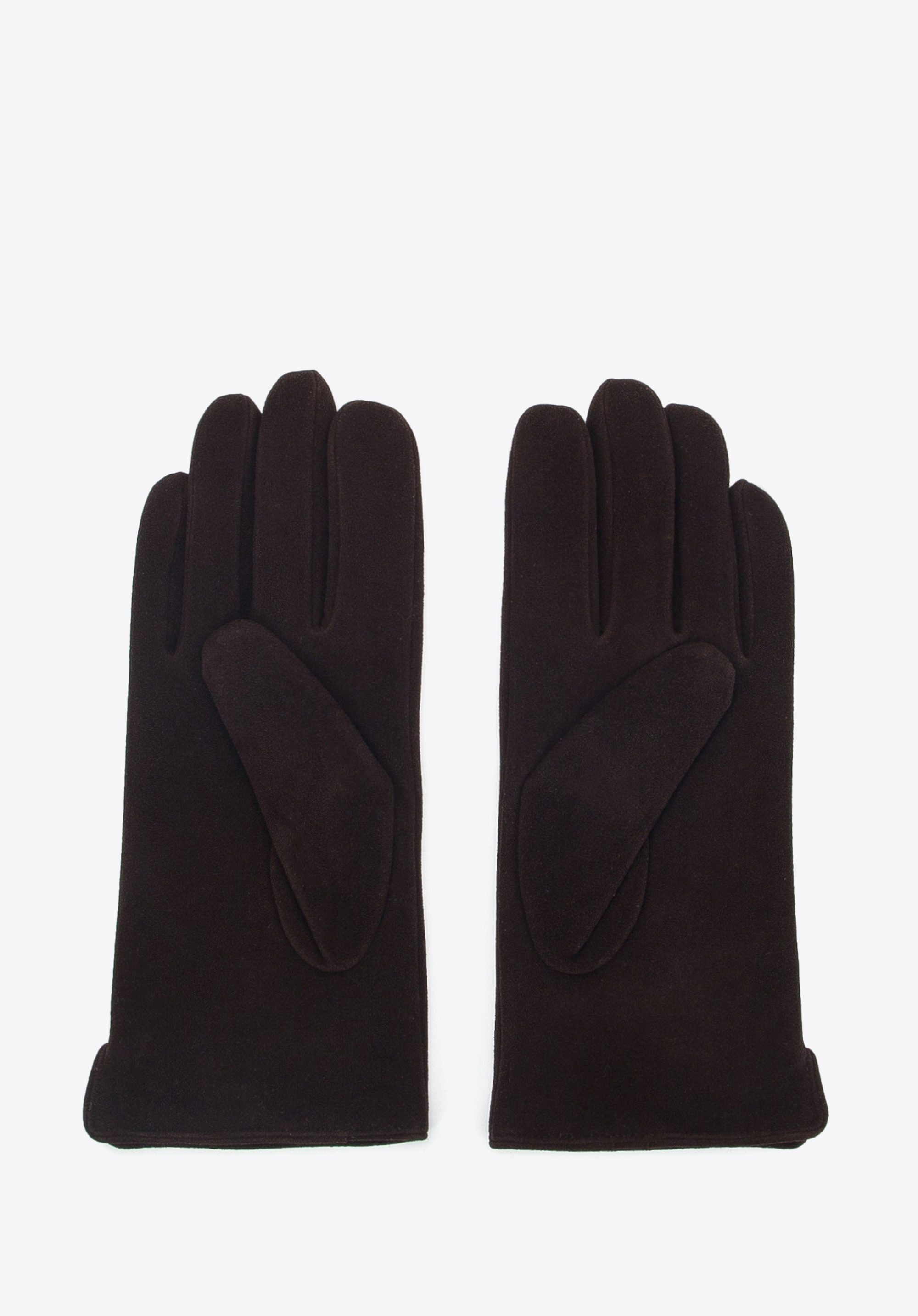 Ці рукавички ідеально поєднують сучасну елегантність і невимушений стиль. Жіночі велюрові шкіряні рукавички з трьома вузлами ручної роботи та невеликим отвором для долоні збоку забезпечують неперевершене тепло. Завдяки м’якій підкладці, яка на