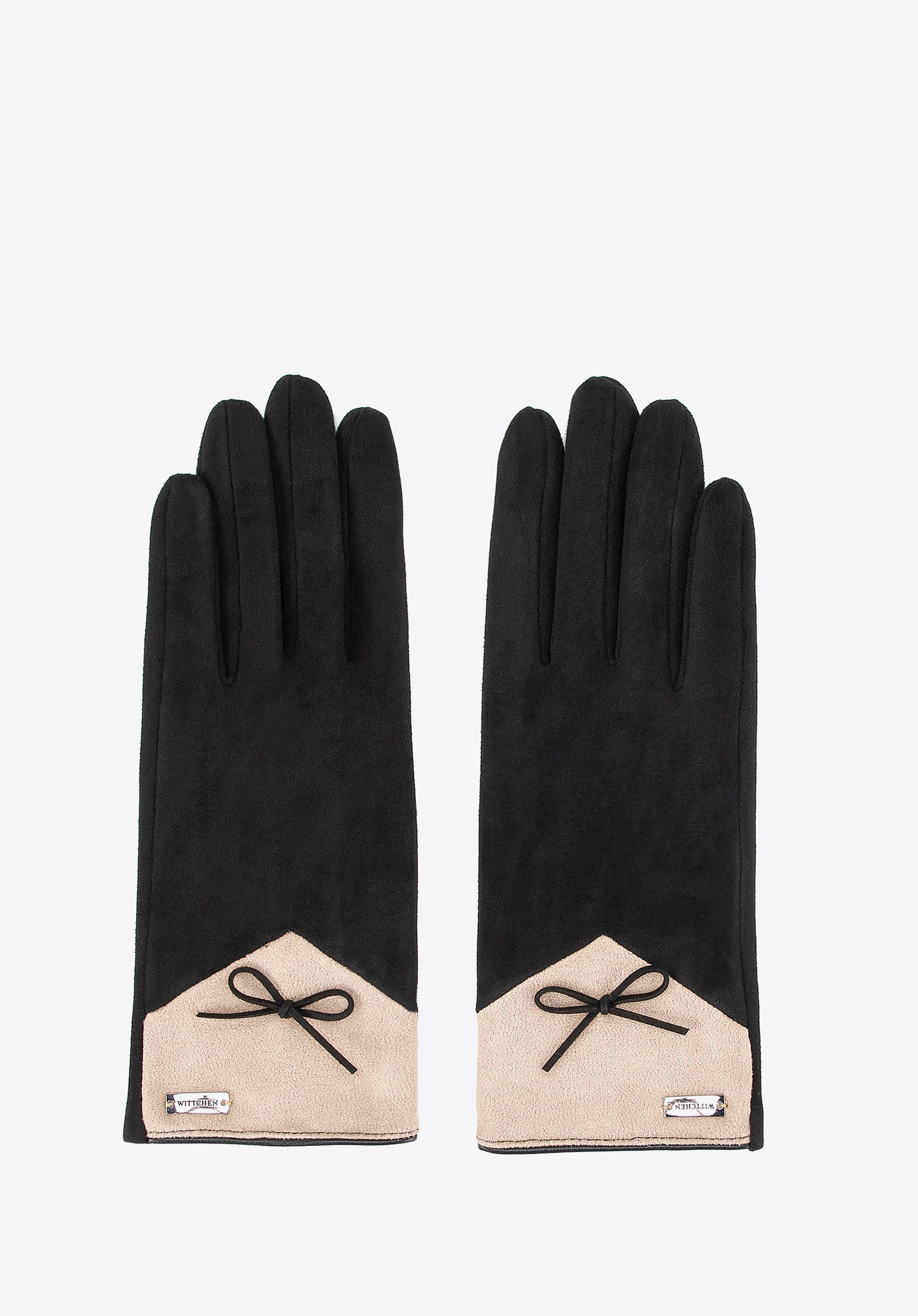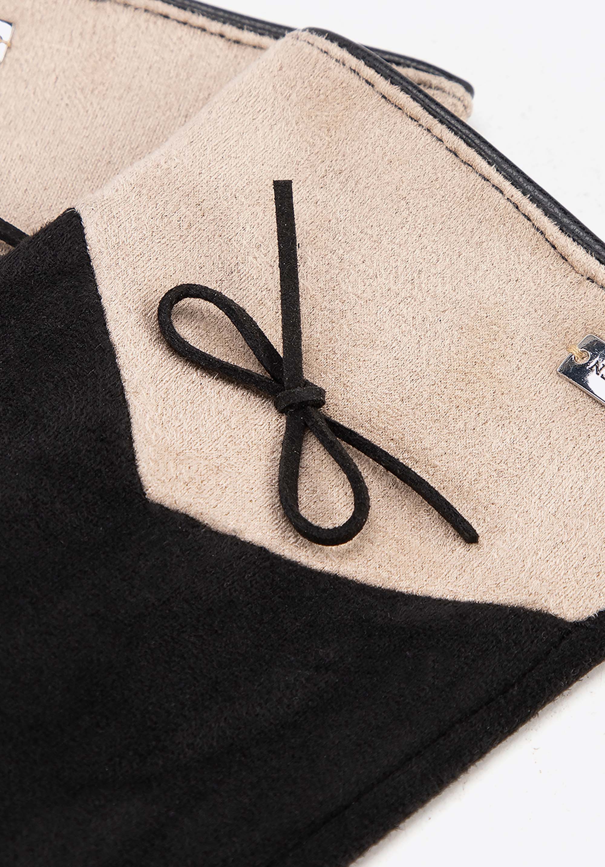 Естетичні деталі: декоративний бант і контрастні кольори додають рукавичкам унікальний характер і стиль. Ці тонкі деталі привертають увагу, підкреслюючи індивідуальність і елегантність. Завдяки їм ці рукавички виділяються з-поміж інших аксесуарів, роблячи їх неперевершеним доповненням до будь-якого образу та додаючи нотку розкоші.