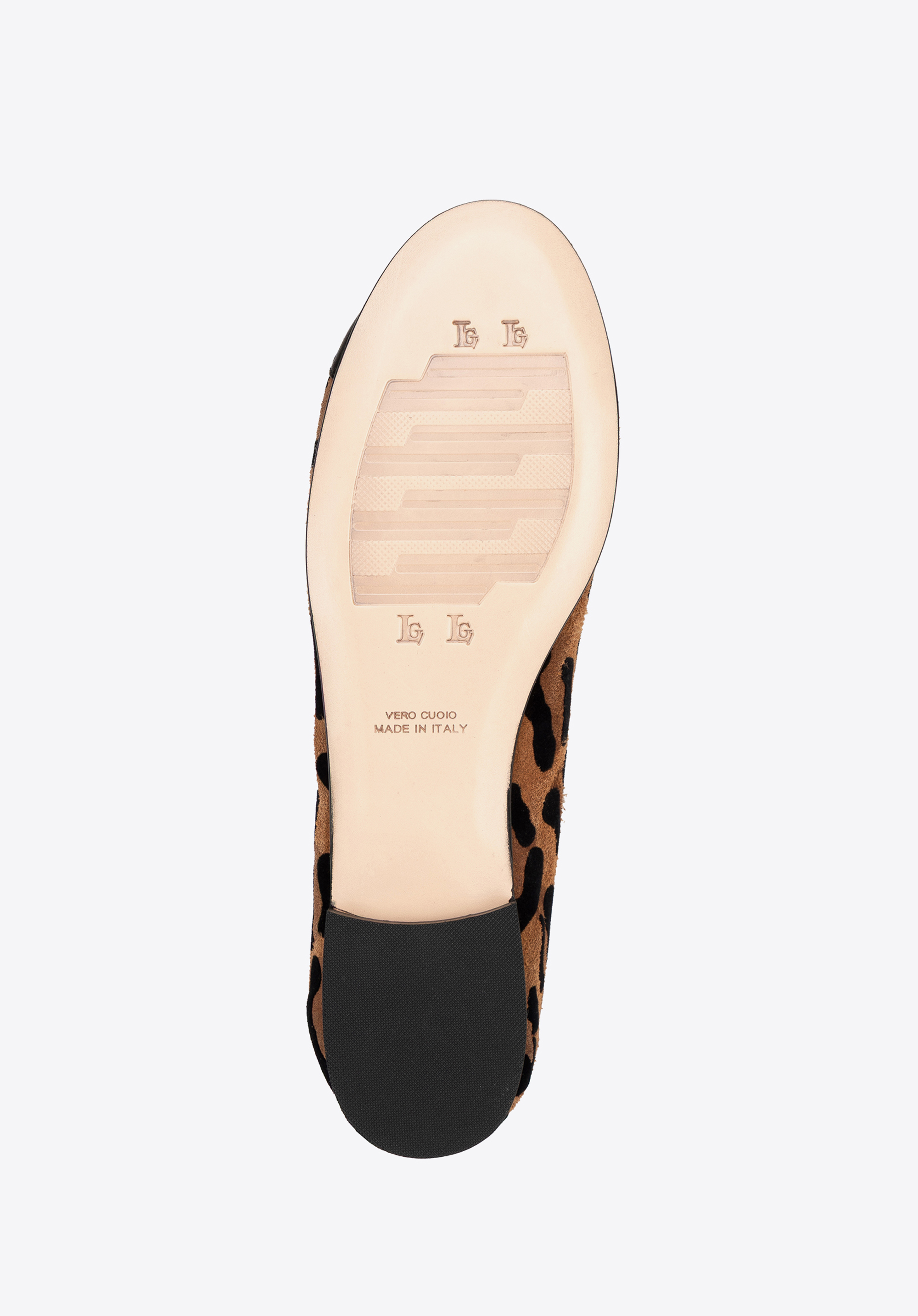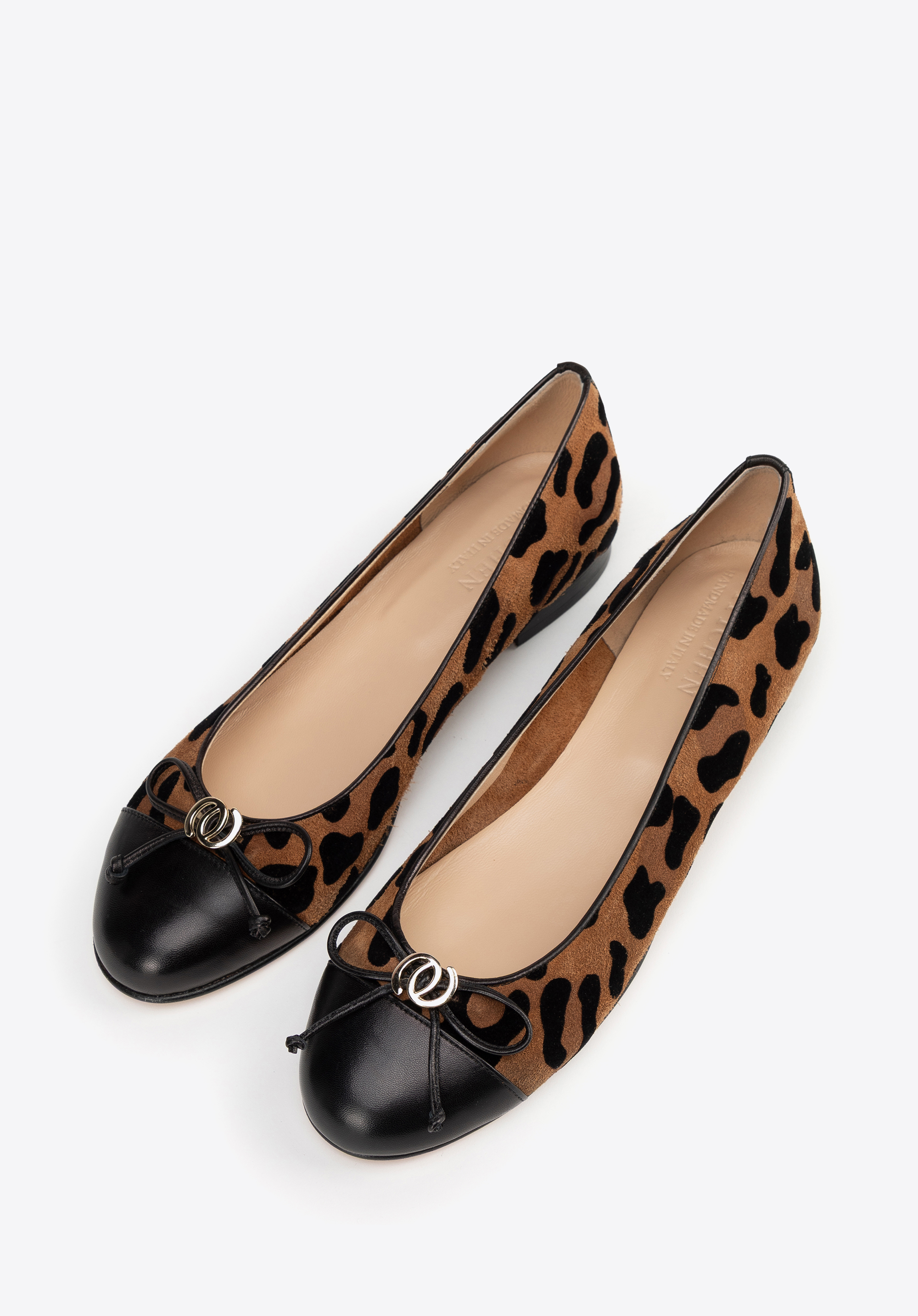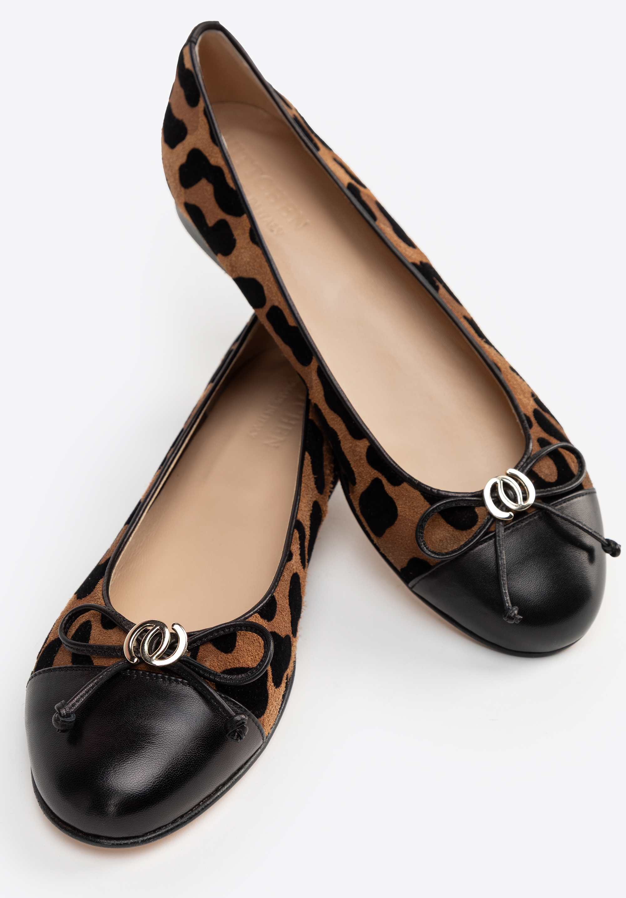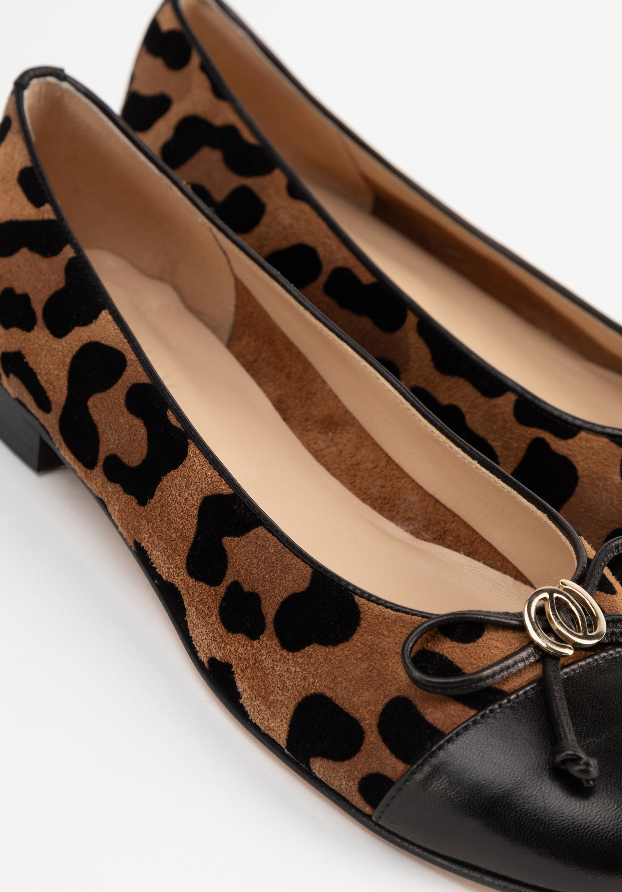 Наша порада: ці балерини легко поєднуються як з ошатними, так і з повсякденними образами. Додайте їх до джинсів, міді-спідниці або однотонної сукні, щоб підкреслити ефектний леопардовий принт. Доповніть наряд сумкою через плече або сумкою через плече нейтрального тону для вишуканого вигляду.
