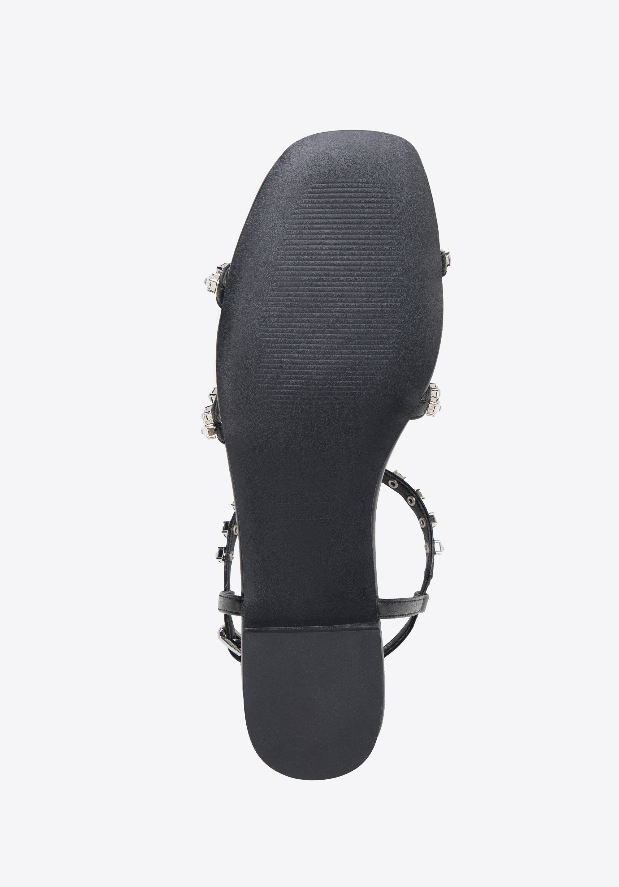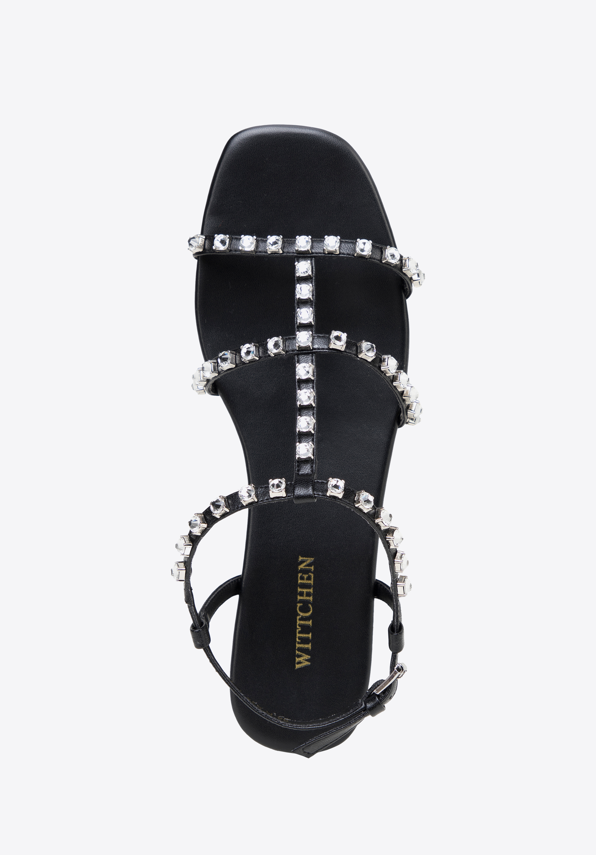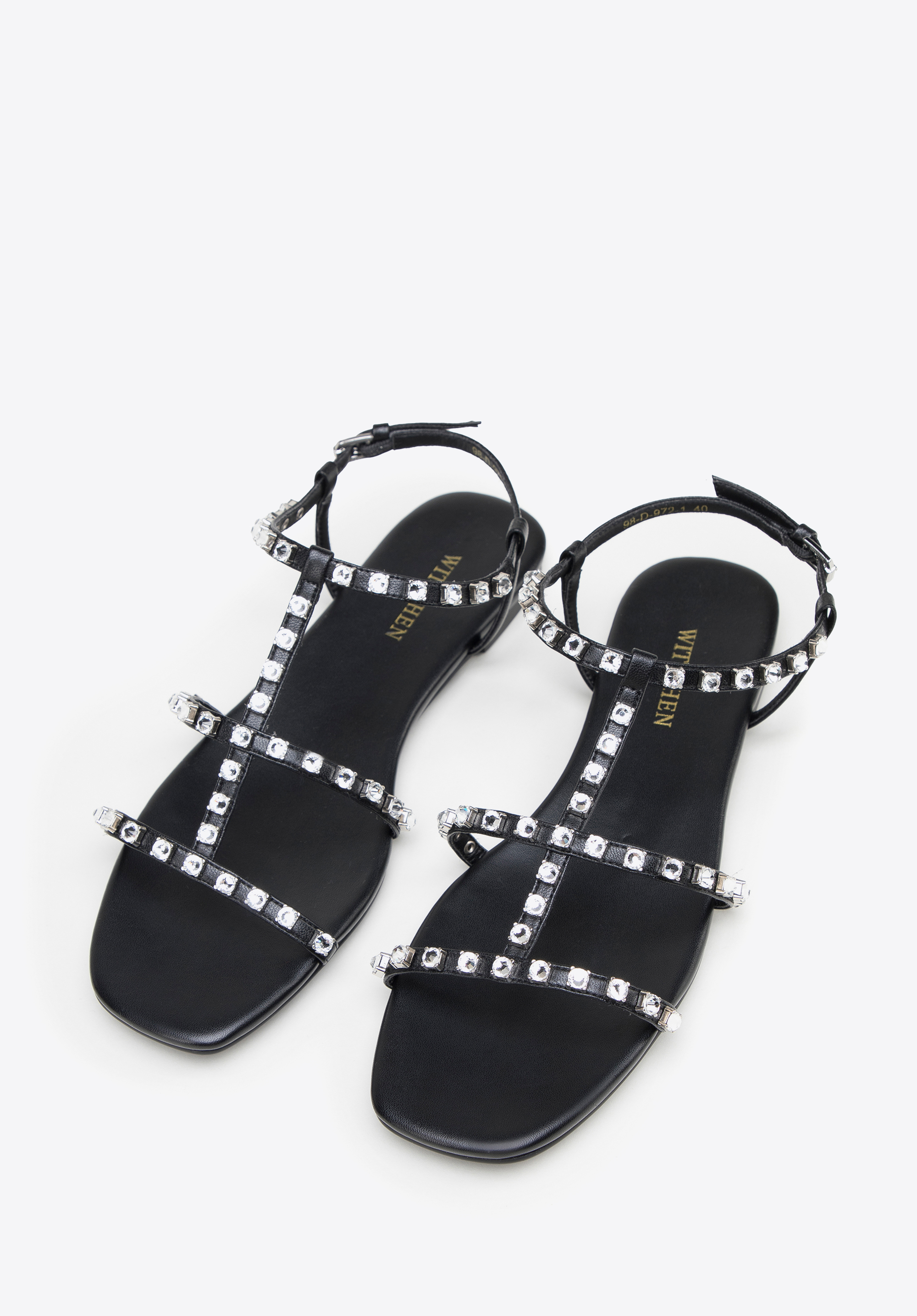 Жіночі шкіряні босоніжки з кристалами Колір: чорний