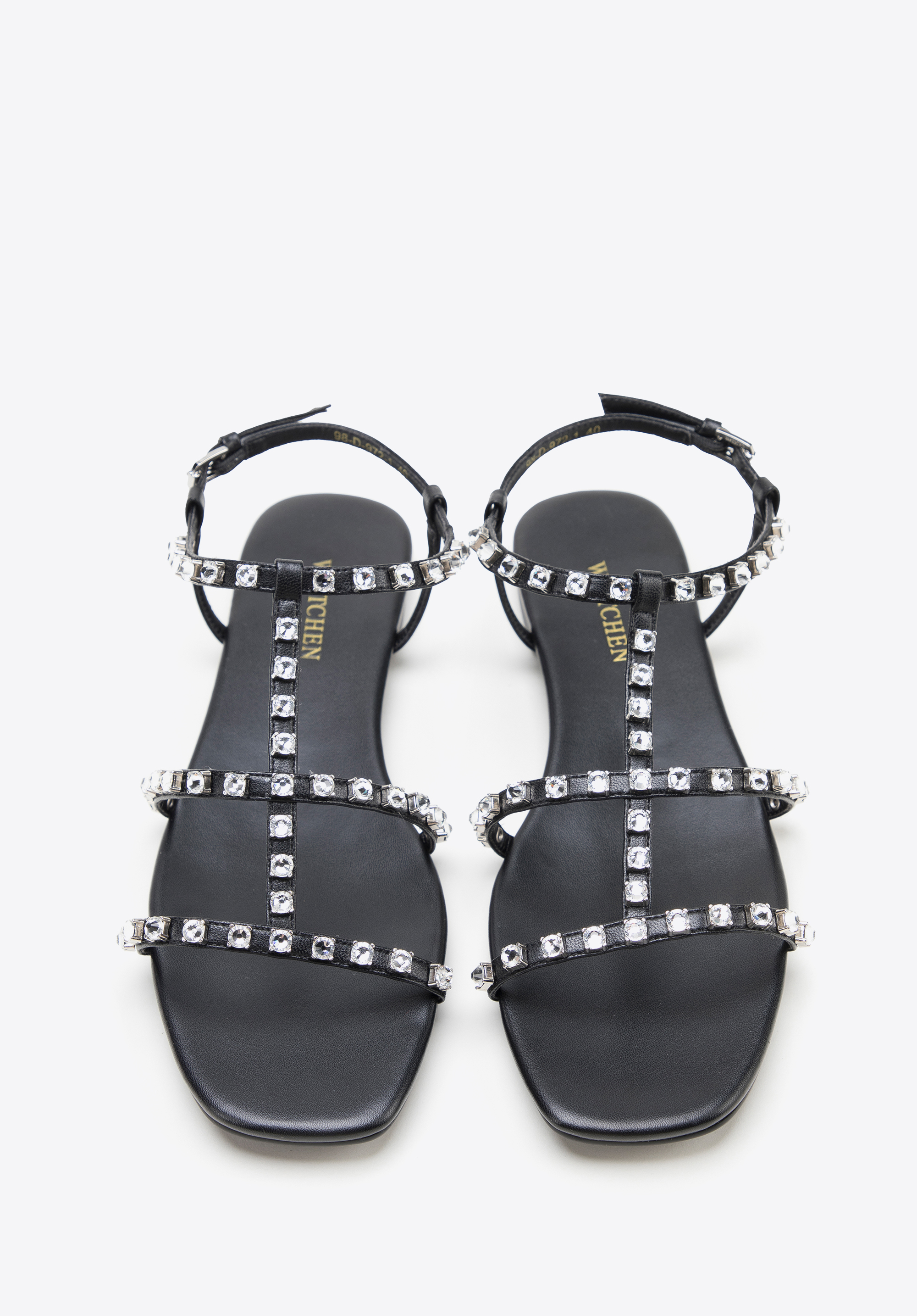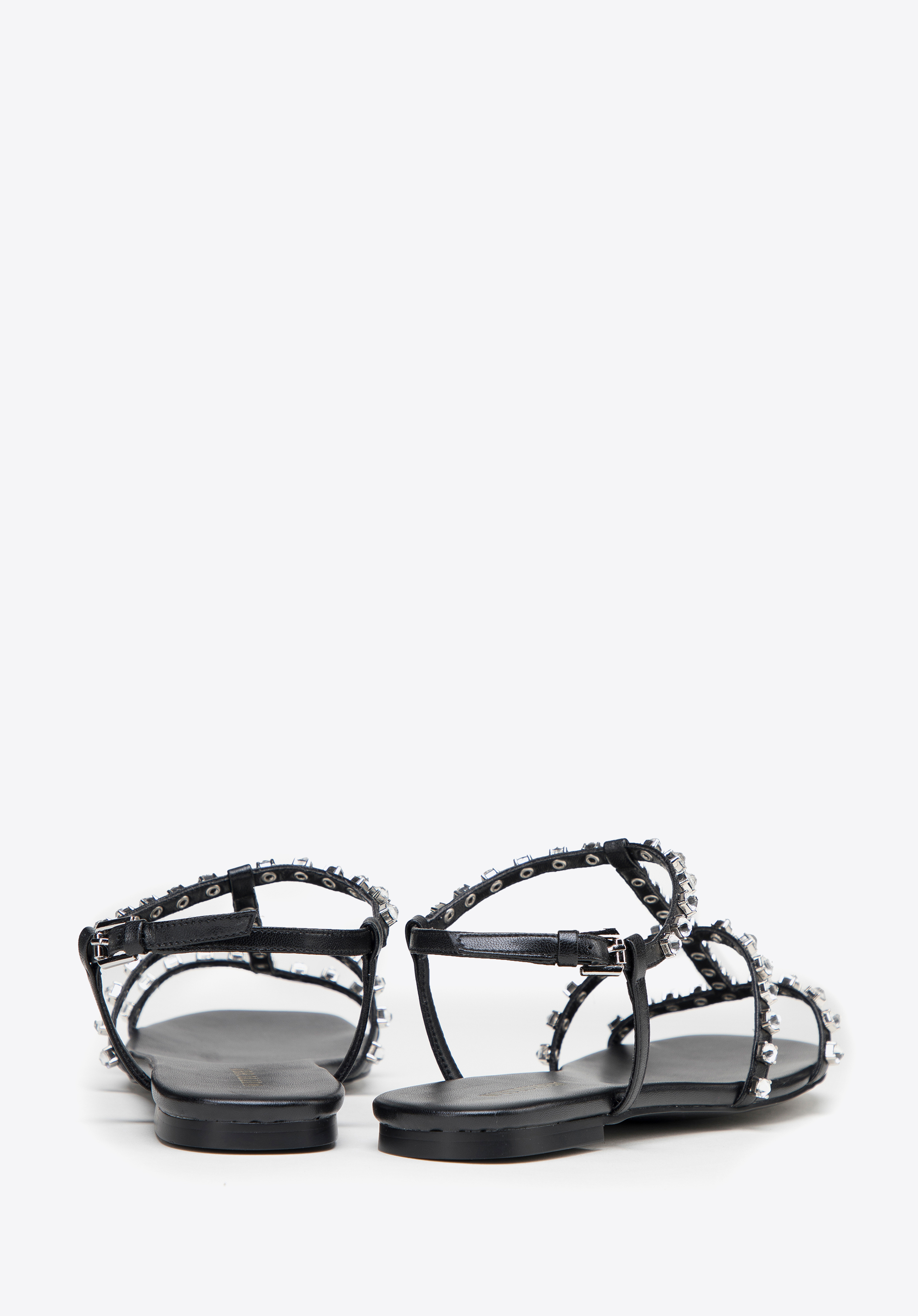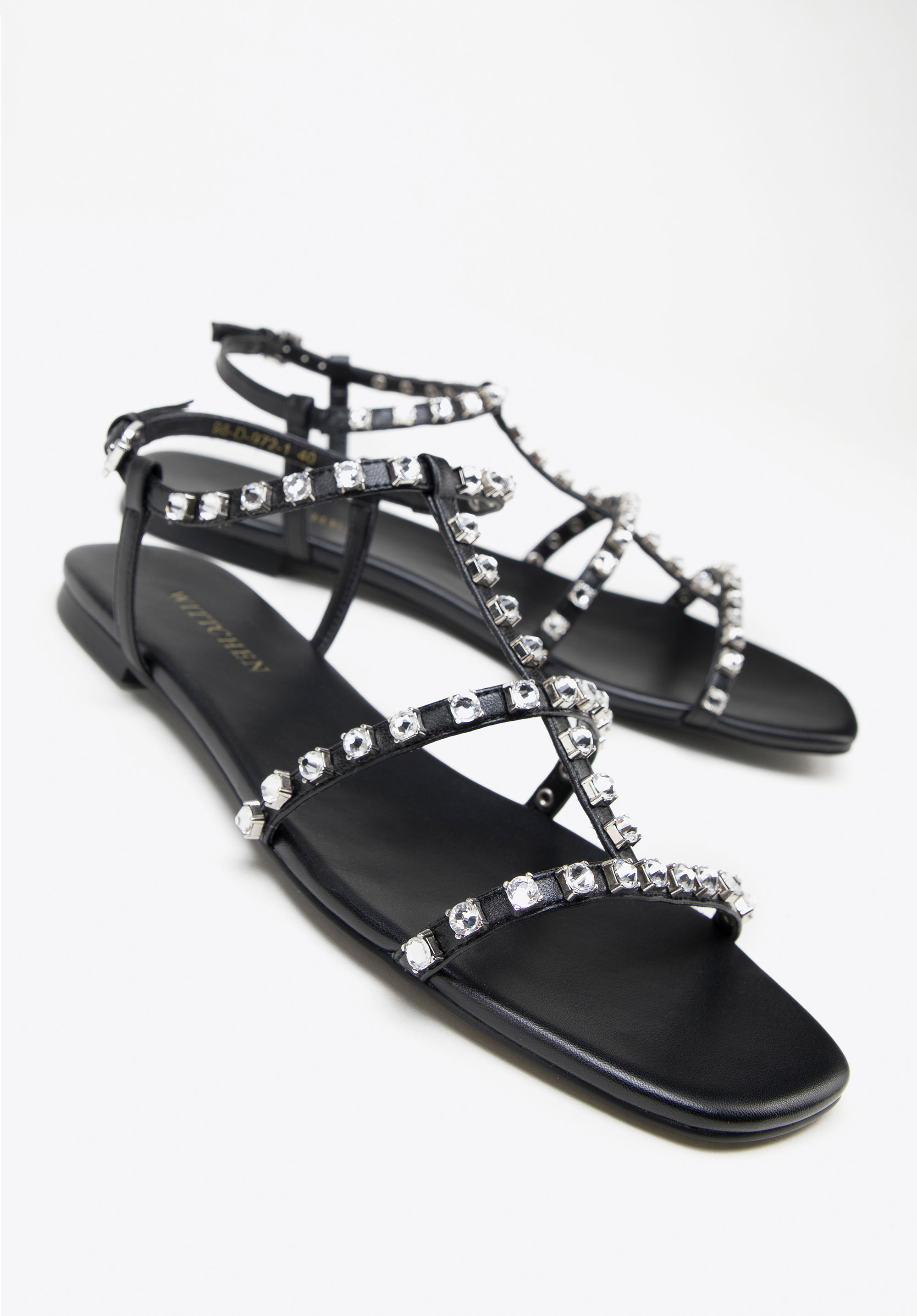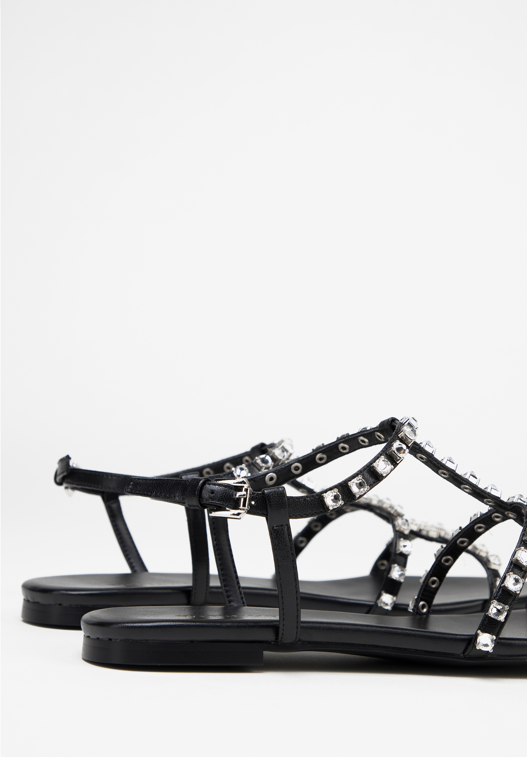 Жіночі шкіряні босоніжки з кристалами Колір: чорний