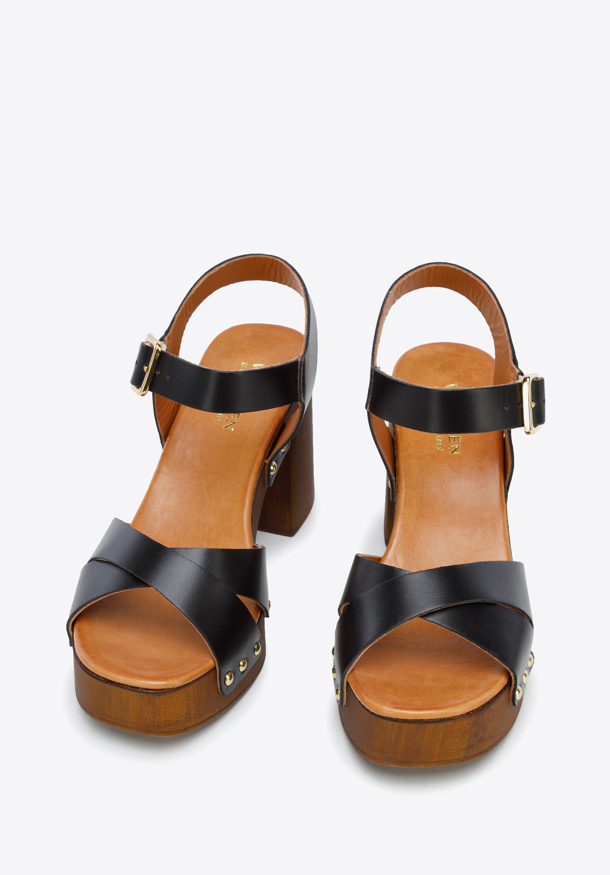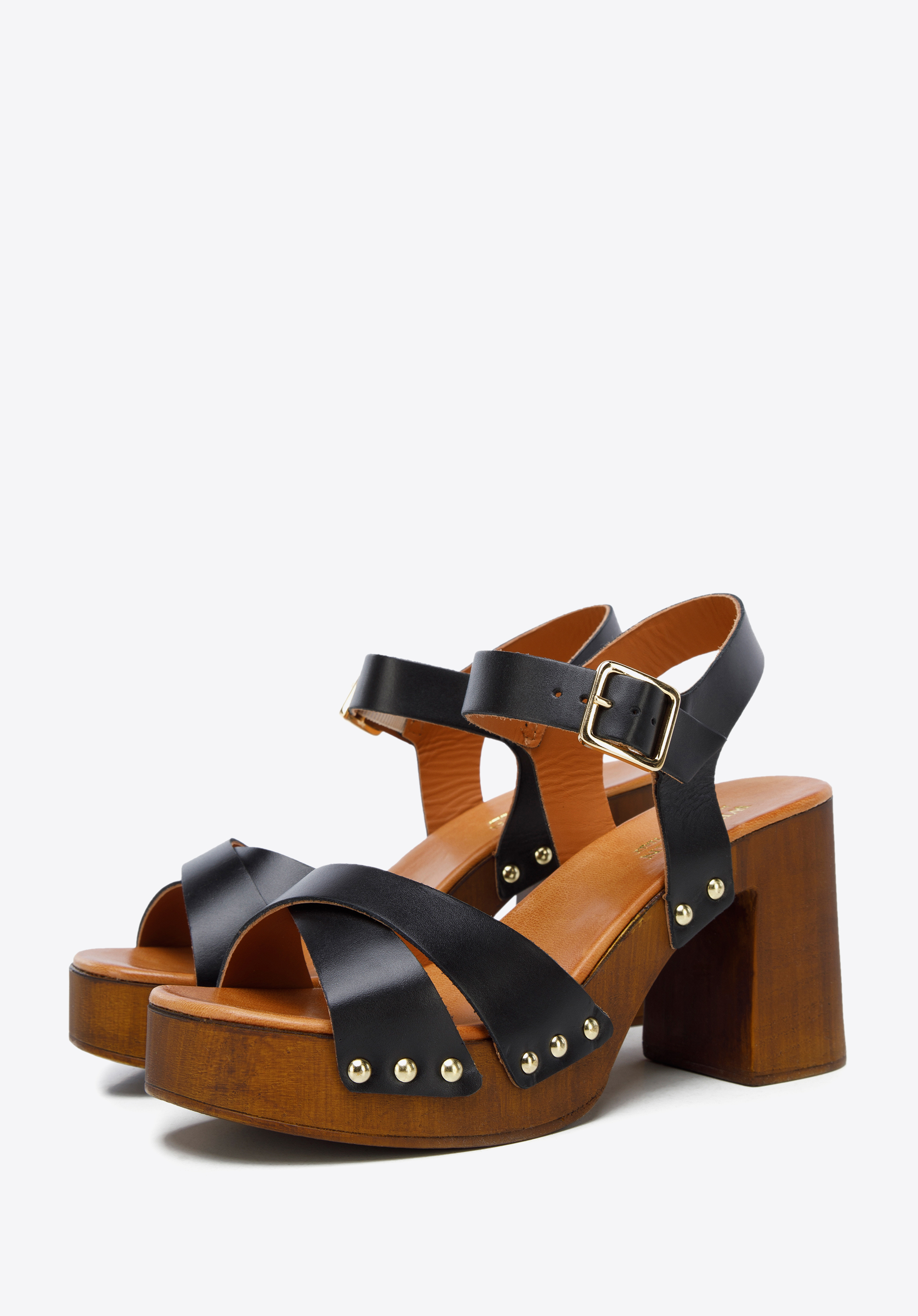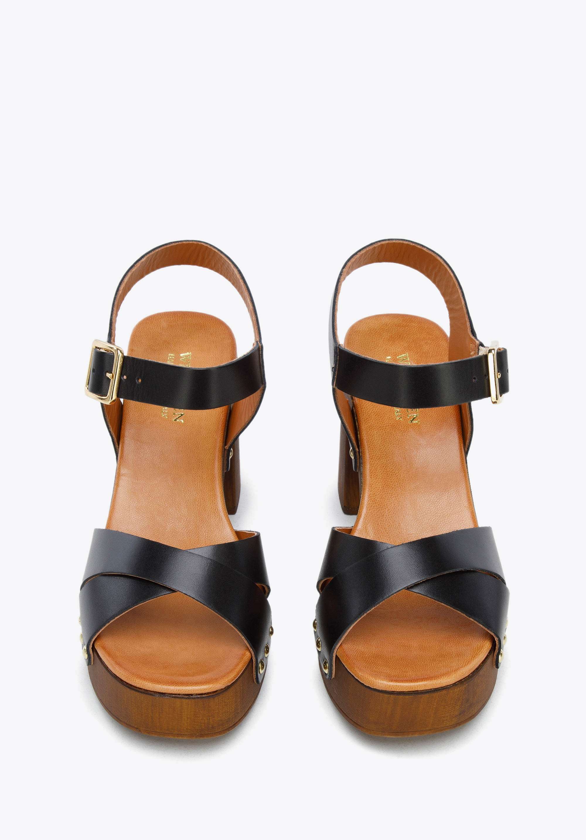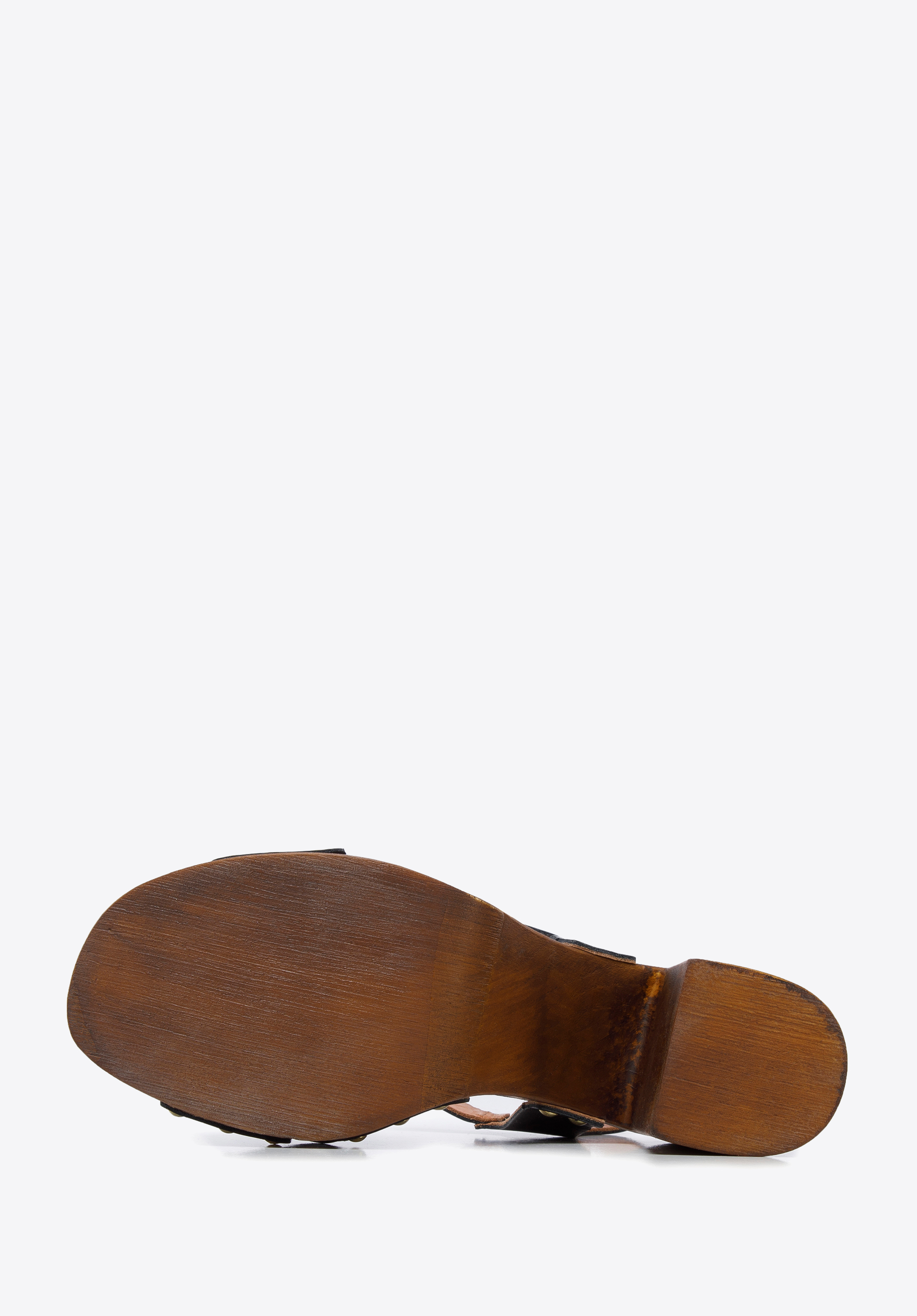 Ці стильні босоніжки — це класика з сучасним відтінком. Виготовлені в Італії з високоякісної натуральної шкіри. Перехрещені ремінці спереду гарно підкреслять стопу, а застібка на щиколотці надійно утримає її. Підошва з імітацією дерева додає цьому взуттю сучасний характер. Високий міцний каблук досить стійкий, тому витончить вашу фігуру та забезпечить комфорт при ходьбі. Носіть їх з улюбленим жіночим платтям або джинсами-бойфрендами і футболкою - ви будете виглядати неповторно в будь-якій ситуації. Жіночі шкіряні босоніжки з перехресними ремінцями - відмінний вибір для кожної любительки модних аксесуарів.