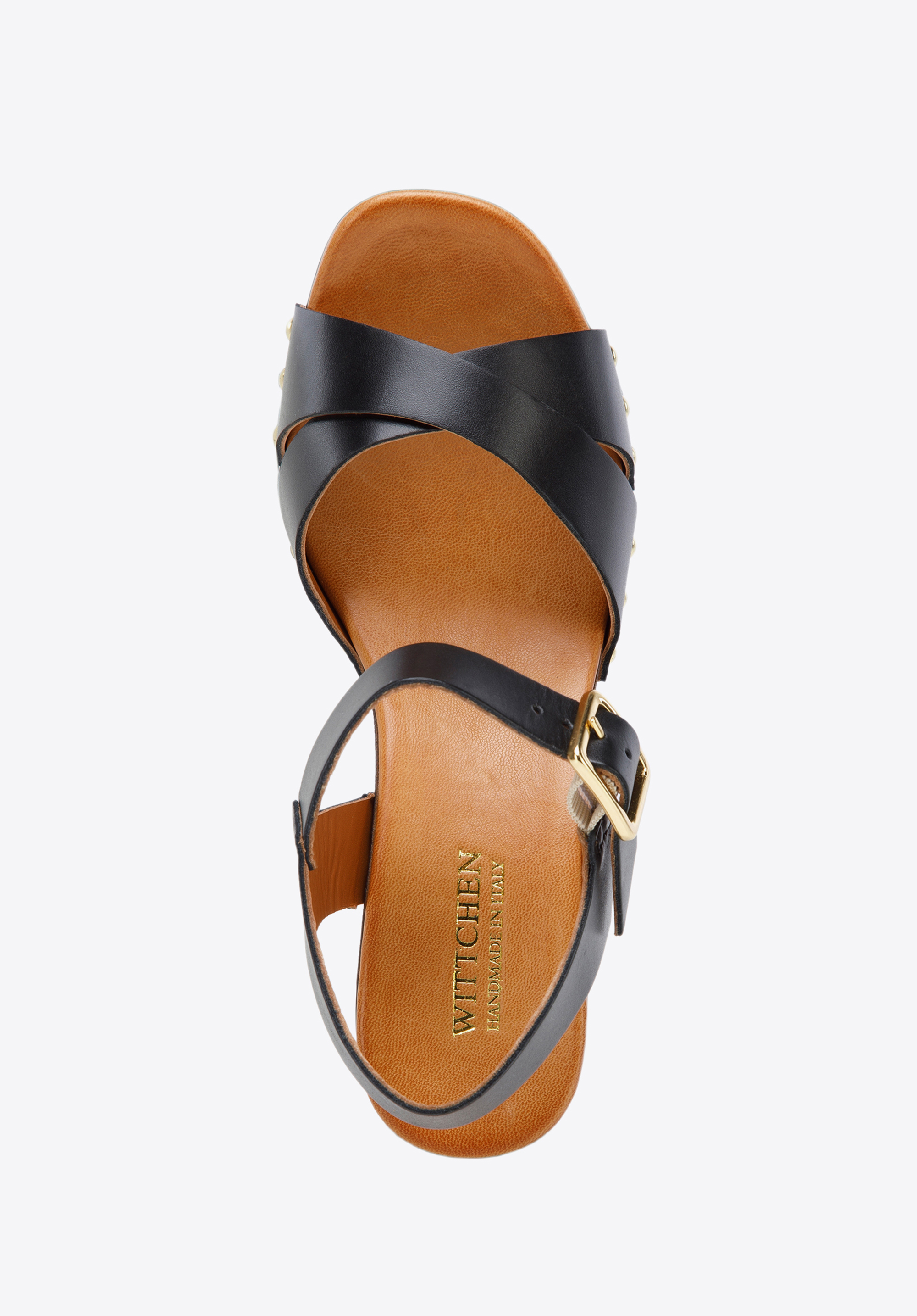 Жіночі шкіряні босоніжки з перехресними ремінцями чорні