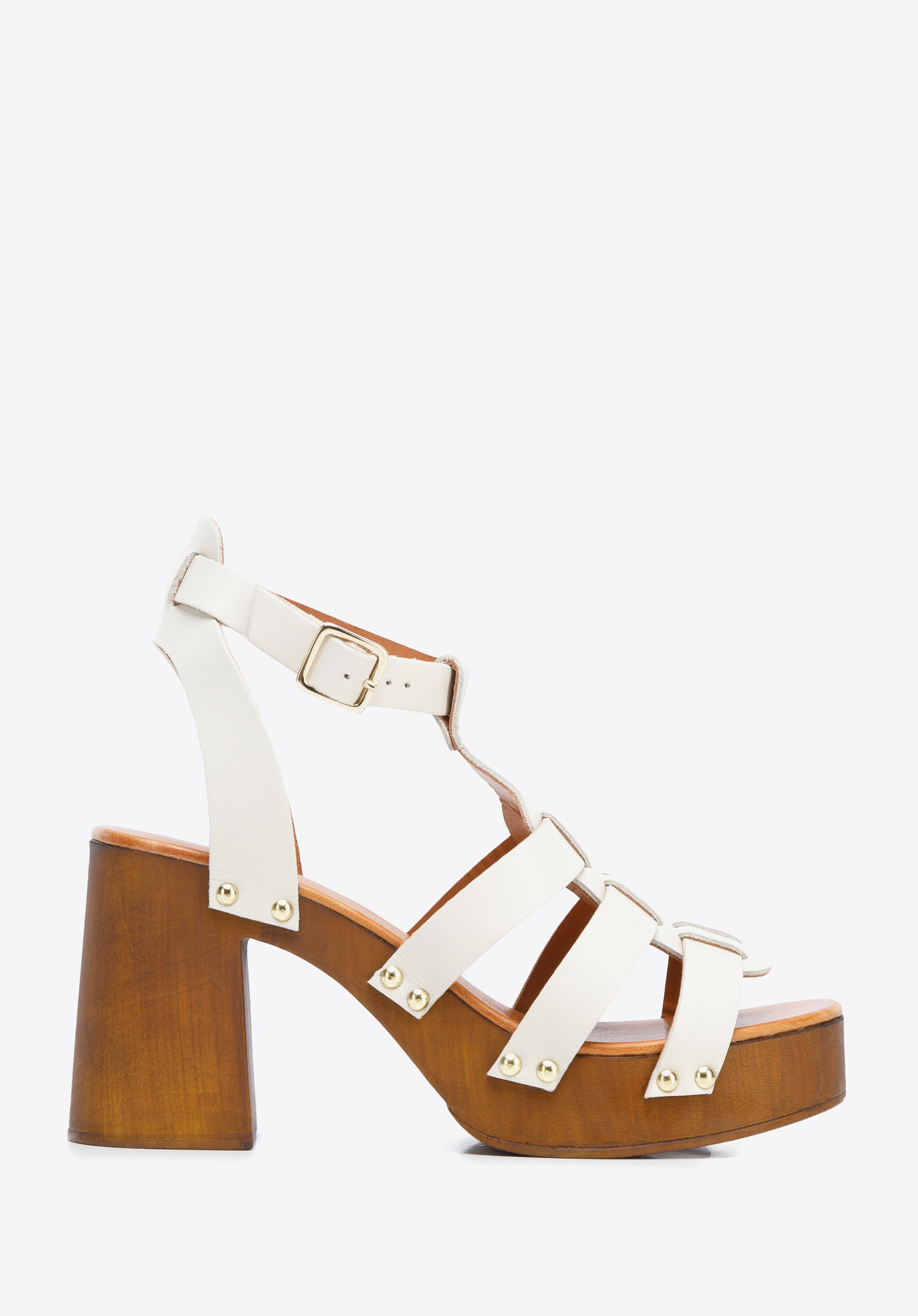 Ці унікальні босоніжки урізноманітнюють літні образи. Виготовлені в Італії з високоякісної натуральної шкіри. Спереду вони мають плетіння, натхненне римським взуттям, яке в той же час гарно підкреслює та стабільно тримає стопу. Підошва з імітацією дерева додає всьому оригінальний характер. Високий каблук також досить широкий і стійкий, що робить його комфортним у носінні та стрункішою фігуру. Жіночі шкіряні босоніжки з плетінням - відмінний вибір для жінок, які люблять грати з модою. Вони чудово виглядатимуть як з розкльошеною сукнею в стилі бохо, так і з рок-укладкою.