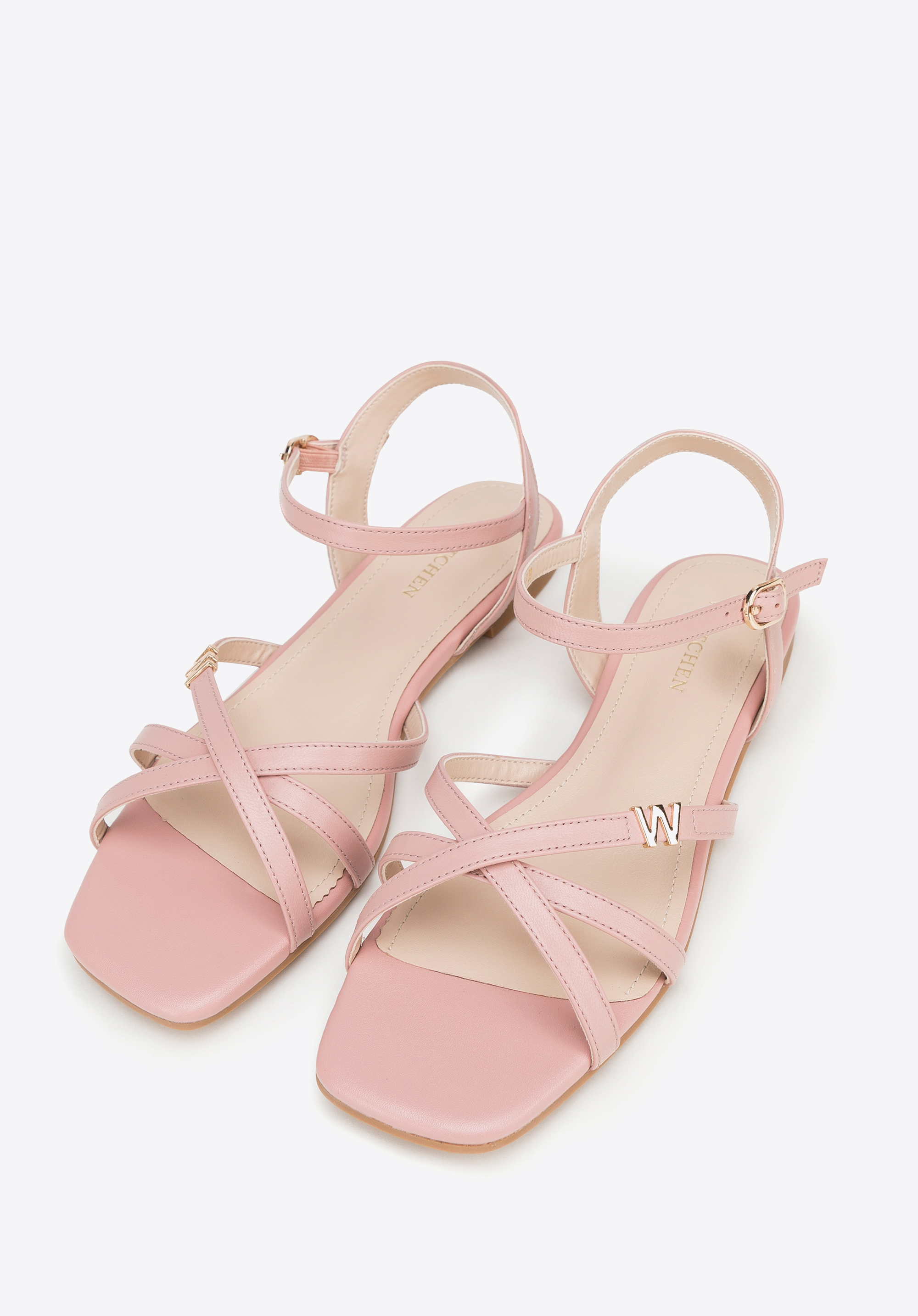Жіночі шкіряні босоніжки з ремінцями Колір: блякло-рожевий