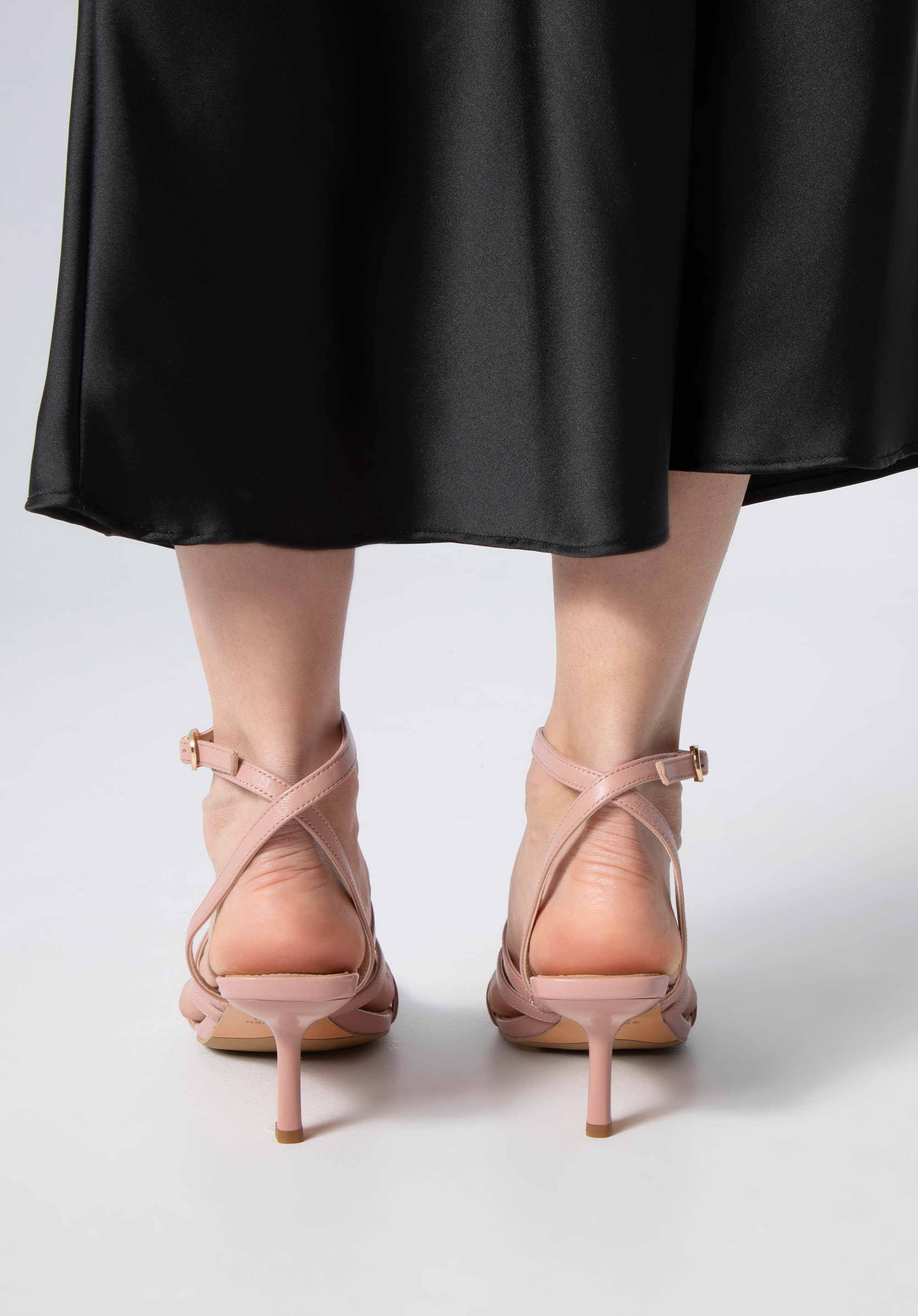 Ці жіночні босоніжки стильно доповнять ваш літній образ. Вони виготовлені з високоякісної натуральної шкіри. Застібка навколо щиколотки утримає ногу на місці, а тонкі ремінці гарно підкреслять стопу. Вони прикрашені маленькою блискучою буквою «W». Низькі підбори зроблять ваш силует стрункішим і додасть кілька сантиметрів зросту. Носіть їх з улюбленими широкими брюками та футболкою щодня або поєднуйте з коктейльною сукнею для особливих випадків. Жіночі шкіряні босоніжки з ремінцями на підборах - це незамінний аксесуар, який можна носити багато сезонів.