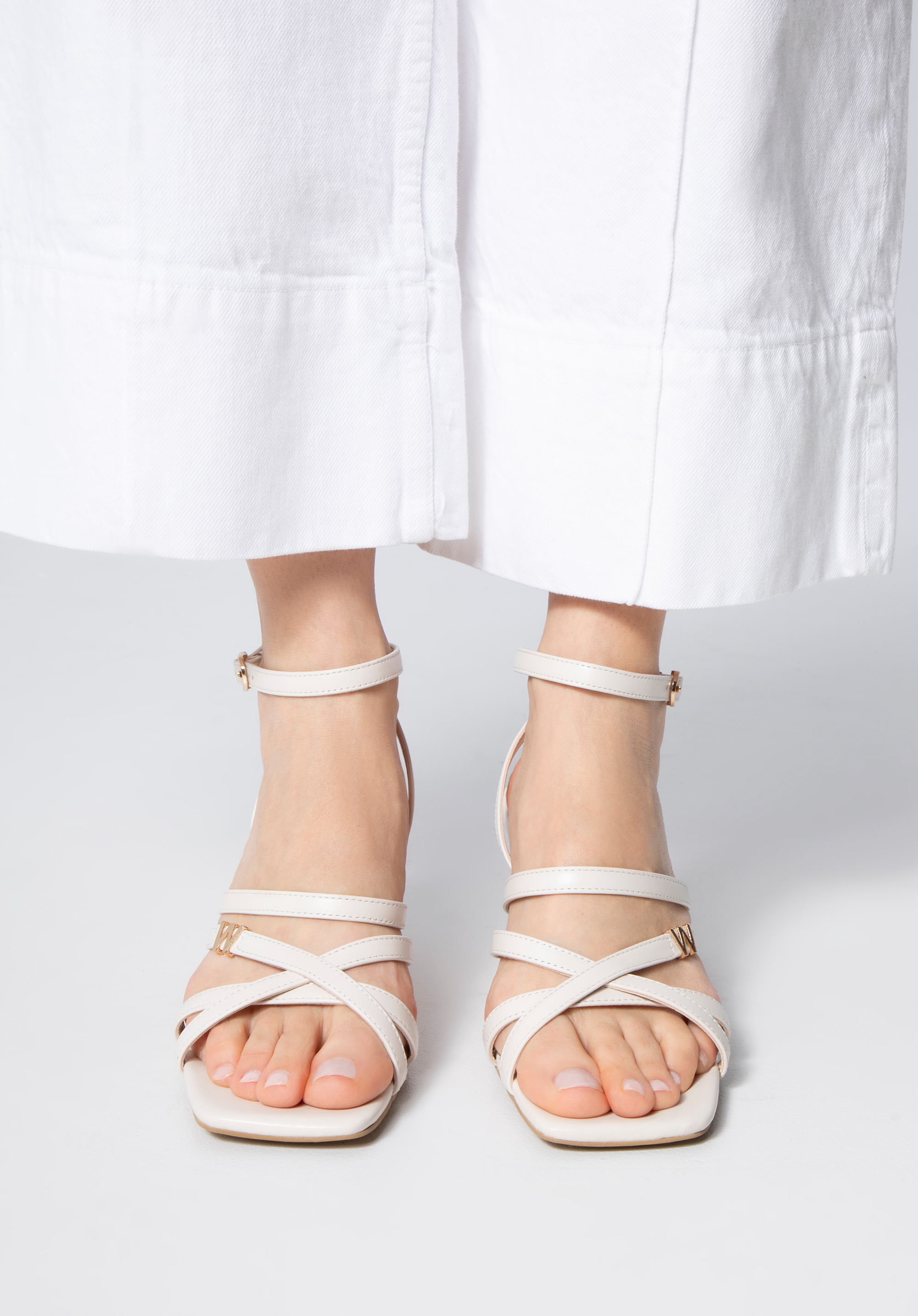Ці жіночні босоніжки стильно доповнять ваш літній образ. Вони виготовлені з високоякісної натуральної шкіри. Застібка навколо щиколотки утримає ногу на місці, а тонкі ремінці гарно підкреслять стопу. Вони прикрашені маленькою блискучою буквою «W». Низькі підбори зроблять ваш силует стрункішим і додасть кілька сантиметрів зросту. Носіть їх з улюбленими широкими брюками та футболкою щодня або поєднуйте з коктейльною сукнею для особливих випадків. Жіночі шкіряні босоніжки з ремінцями на підборах - це незамінний аксесуар, який можна носити багато сезонів.