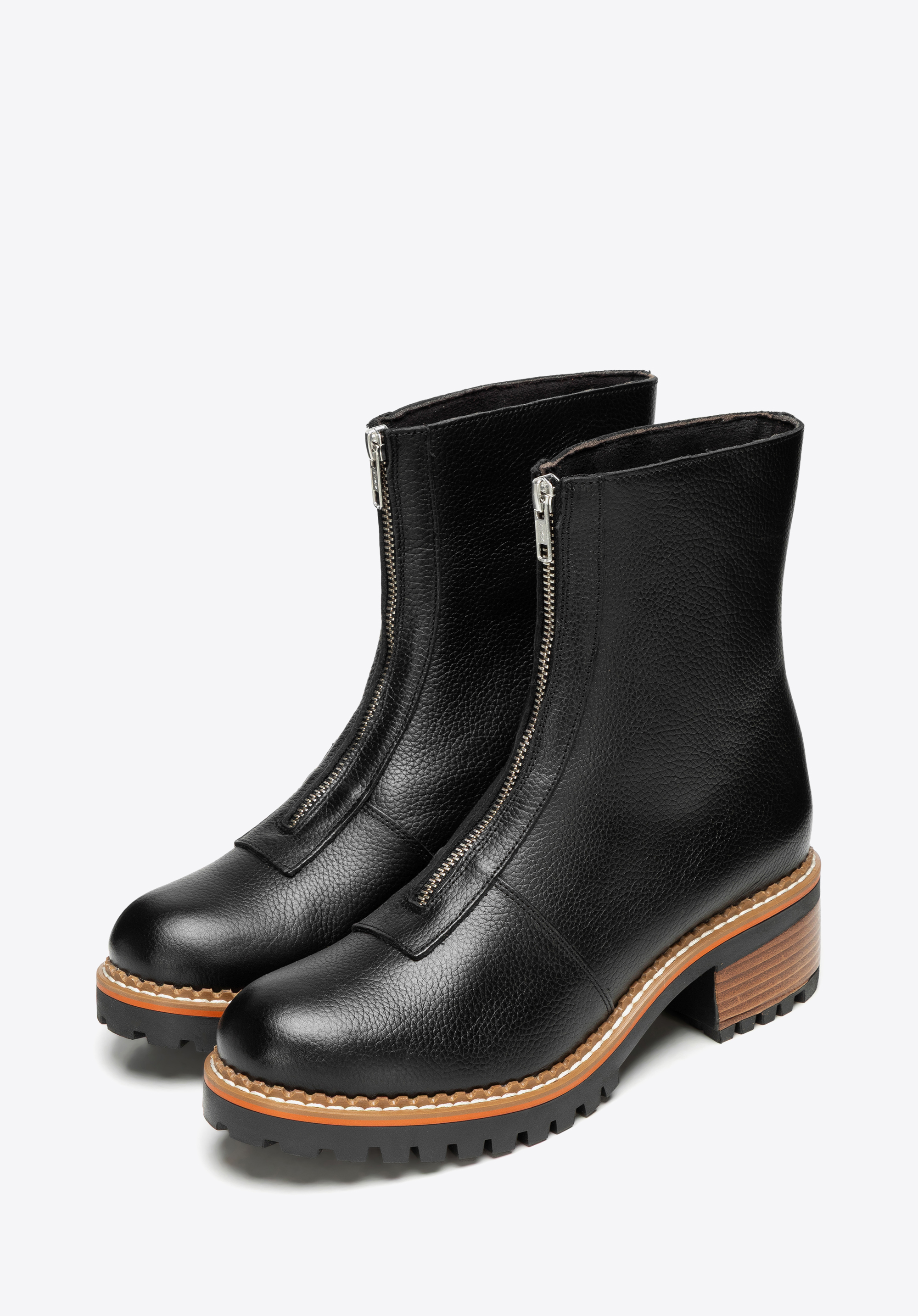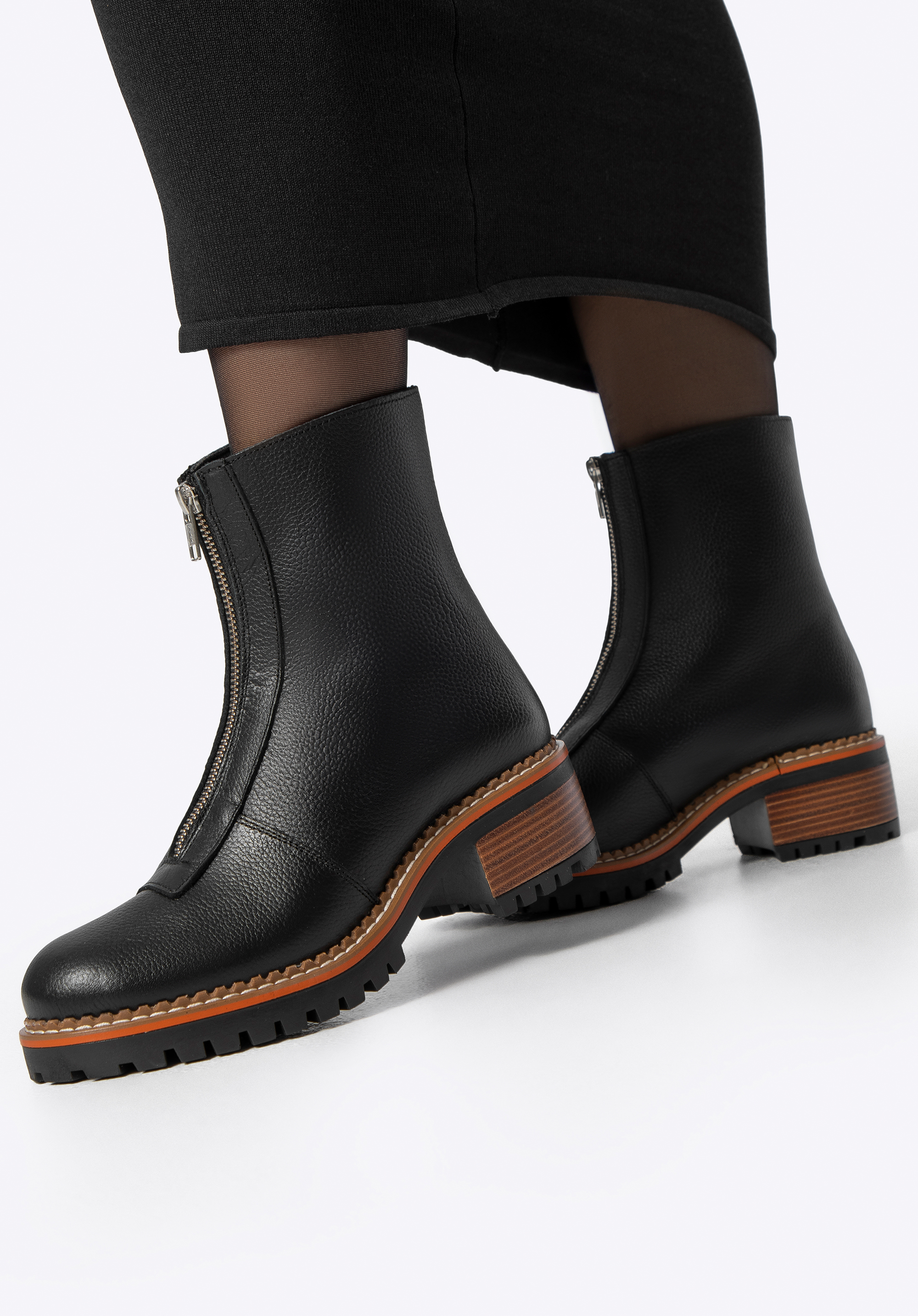 Ці класичні черевики ідеально поєднують позачасовий дизайн із щоденною практичністю. Виготовлені з високоякісної натуральної шкіри, вони можуть похвалитися елегантним оздобленням та довговічністю, на яку ви можете покластися. Масивна підошва типу track не лише підкреслює їхній стиль, але й забезпечує стійкість і комфорт на кожному кроці. Блискавка спереду дозволяє легко взувати їх, а мигдалеподібний носок додає жіночності та універсальності.