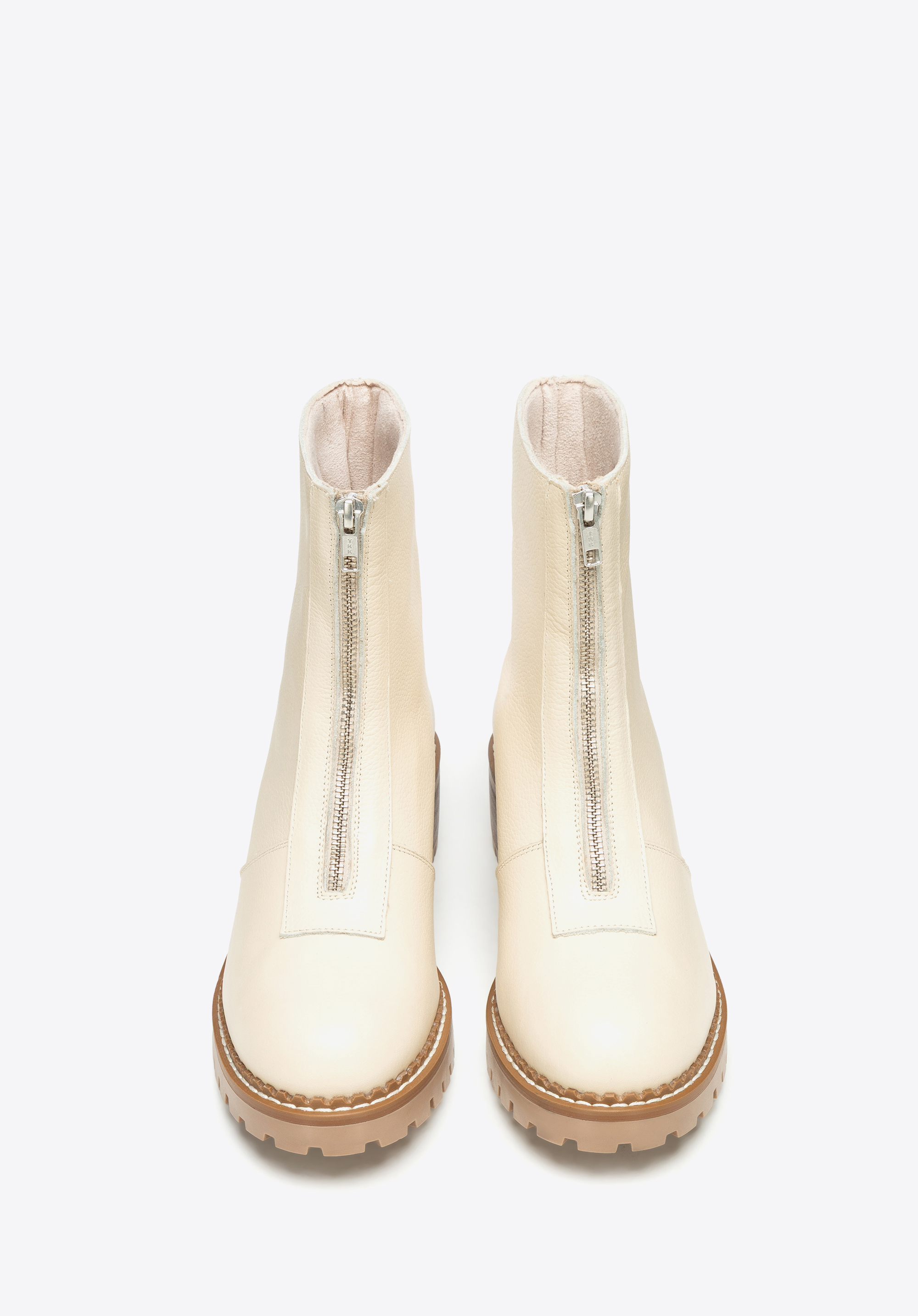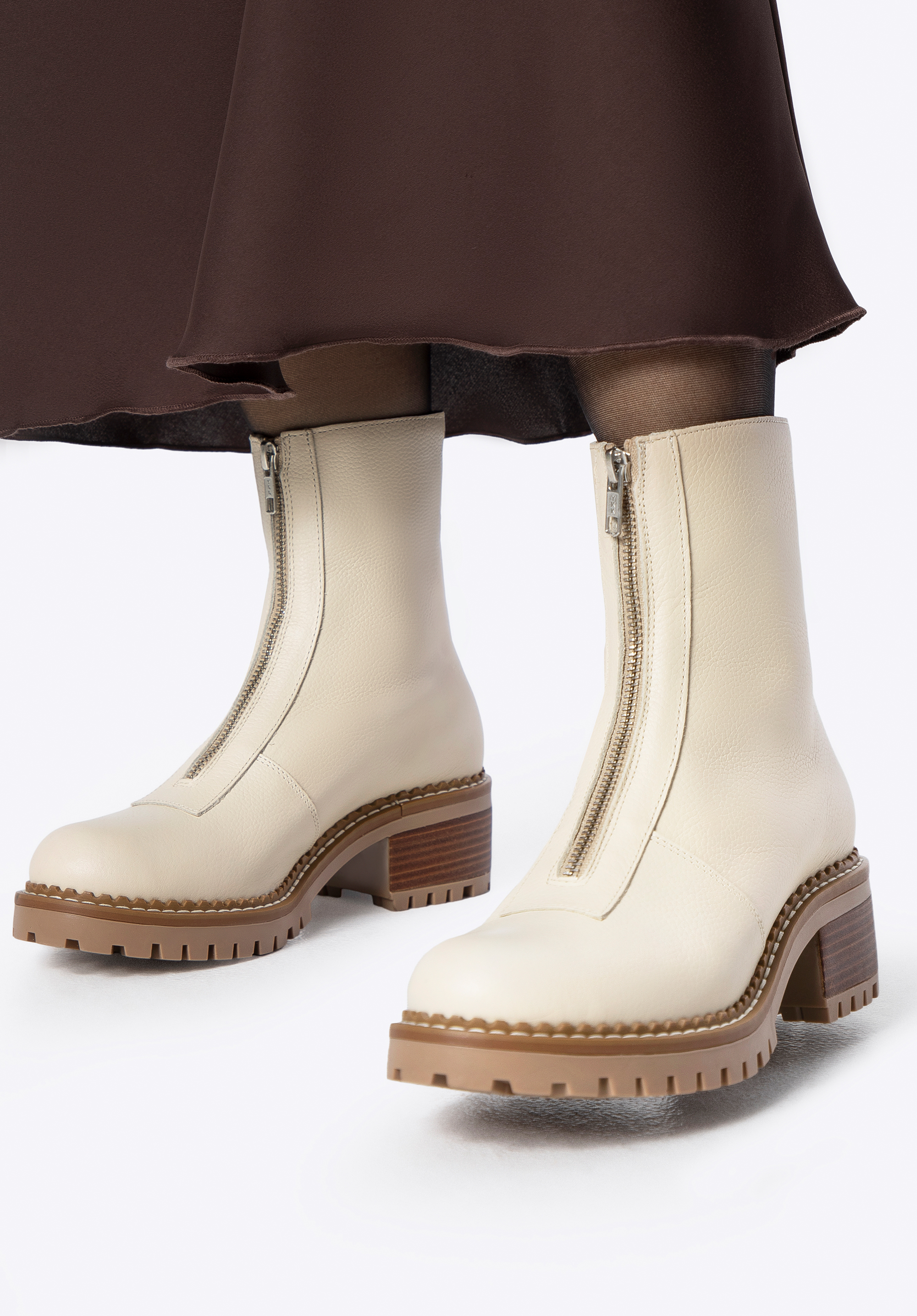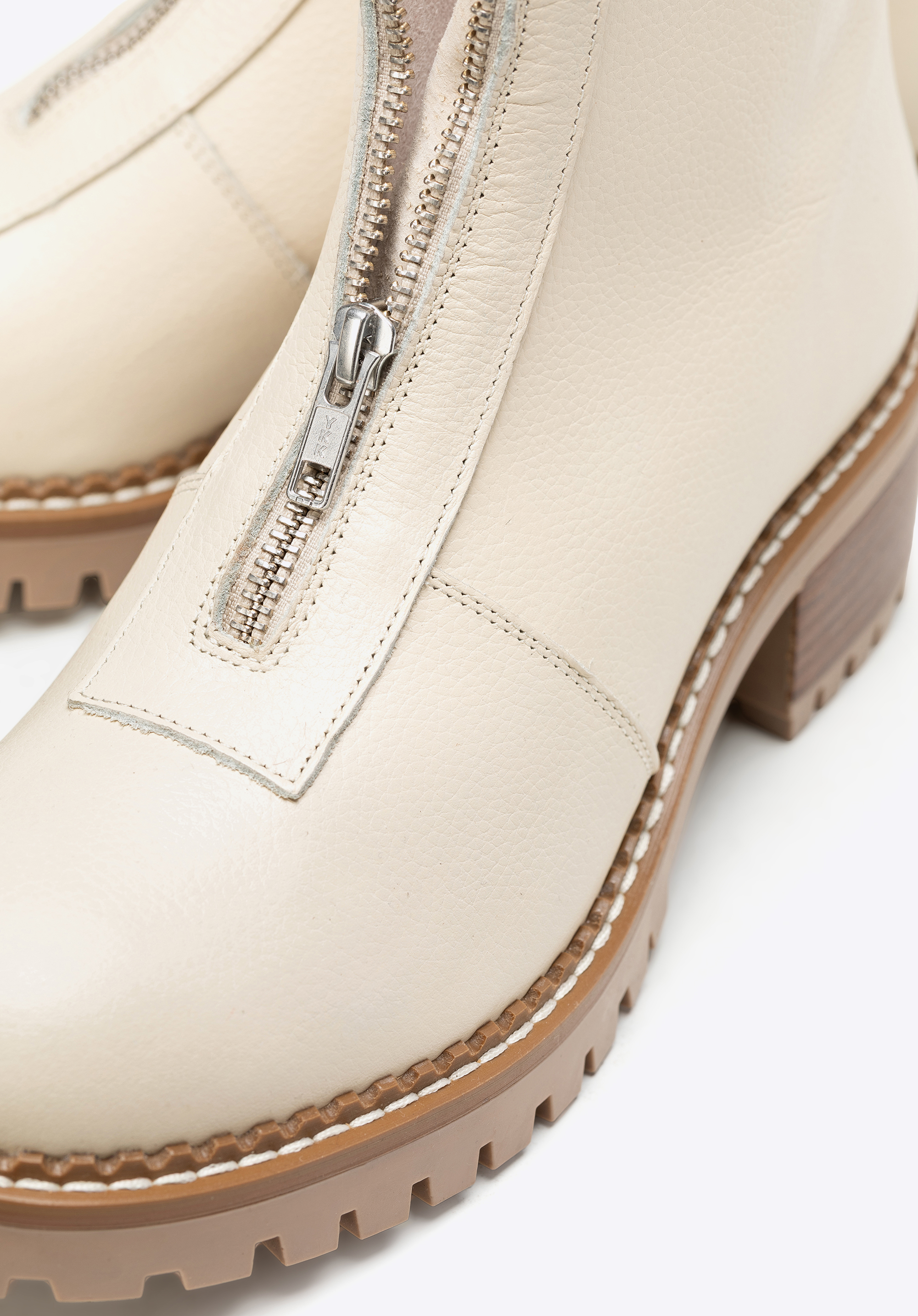 Ці класичні черевики ідеально поєднують позачасовий дизайн із щоденною практичністю. Виготовлені з високоякісної натуральної шкіри, вони можуть похвалитися елегантним оздобленням та довговічністю, на яку ви можете покластися. Масивна підошва типу track не лише підкреслює їхній стиль, але й забезпечує стійкість і комфорт на кожному кроці. Блискавка спереду дозволяє легко взувати їх, а мигдалеподібний носок додає жіночності та універсальності.