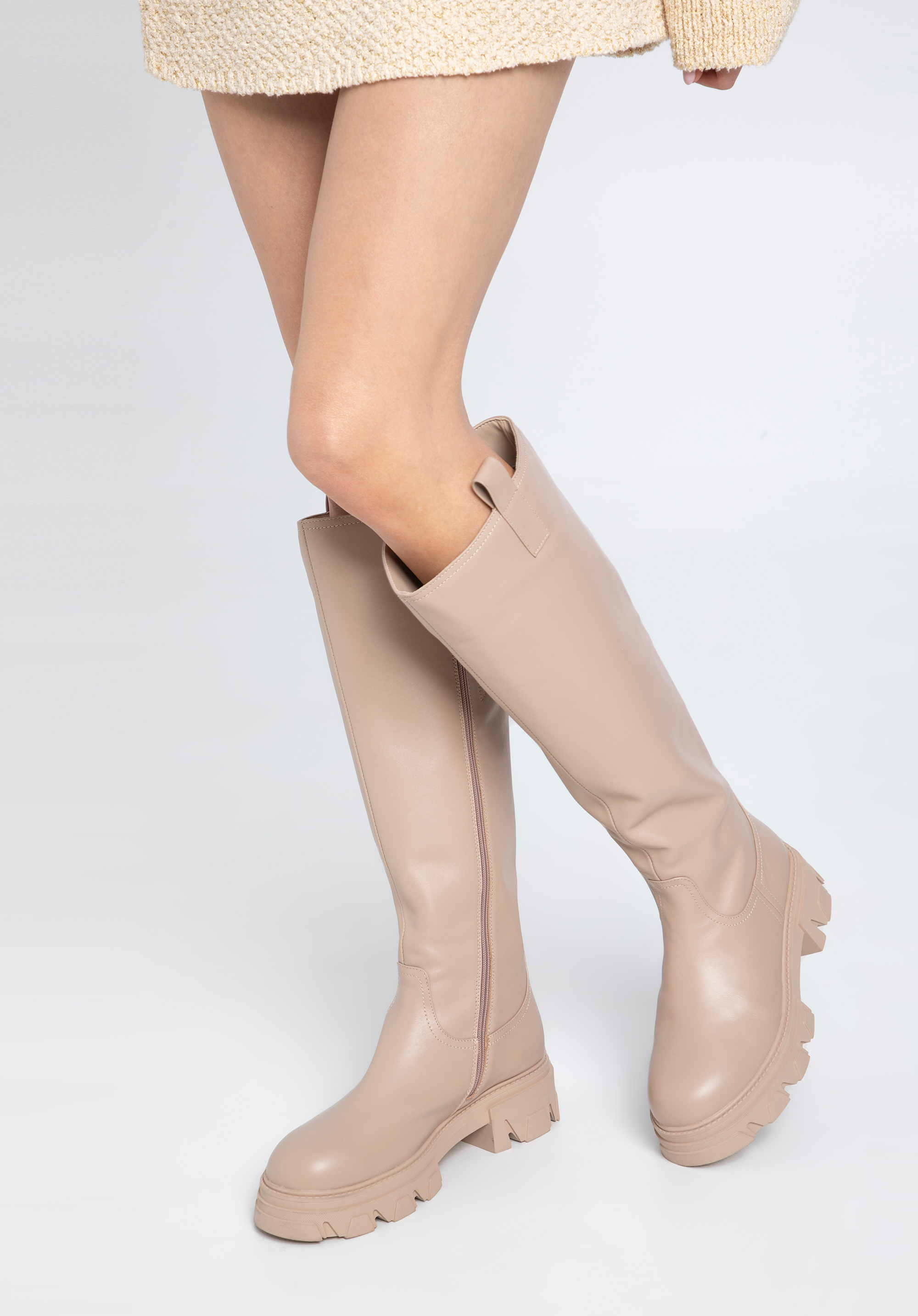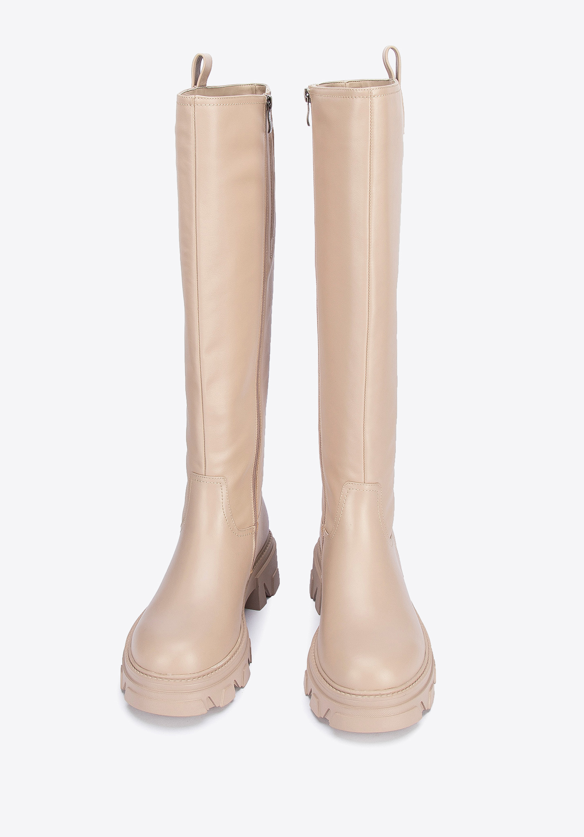 Ви можете носити ці стильні черевики щодня в холодні місяці. Вони виготовлені з якісної натуральної шкіри, тому є аксесуаром на довгі роки. Мають велюрову устілку та підкладку, що забезпечить комфорт ваших ніг. Товста підошва на платформі з чітким протектором відмінно ізолює від холоду і забезпечує хороше зчеплення в будь-яку погоду. Високий верх має блискавку з внутрішньої сторони, що полегшує надягання. До гладкого крою без декорацій можна підібрати довге пальто, а також шкіряну куртку або стьобану куртку. Жіночі шкіряні чоботи на товстій підошві - відмінний вибір для кожної сучасної жінки.