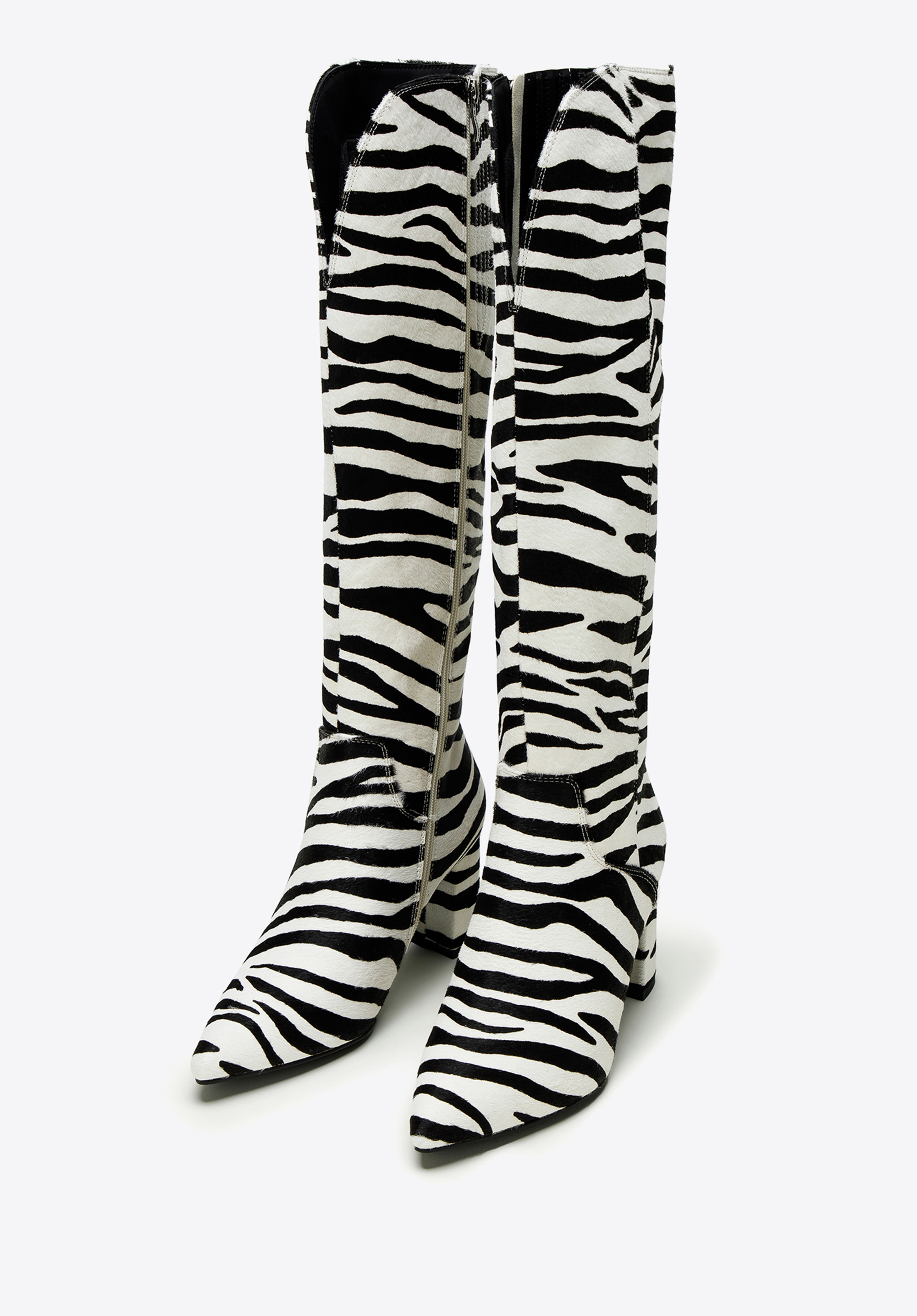 У цьому взутті ви не залишитеся непоміченою. Вони виготовлені з високоякісної шкіри з ворсом у модний тваринний візерунок. Вгорі є V-подібний виріз для підкреслення литки. Чоботи мають акуратний загострений носок і зручний каблук, який додасть кілька сантиметрів до вашого зросту. Зсередини є блискавка, тому їх буде легше одягати і знімати. Ця модель урізноманітнює комплект із класичним тренчем, а жіночій міні-сукні додасть вишуканості. Жіночі шкіряні чоботи зі звіриним візерунком - відмінний вибір для любительок аксесуарів з характером.