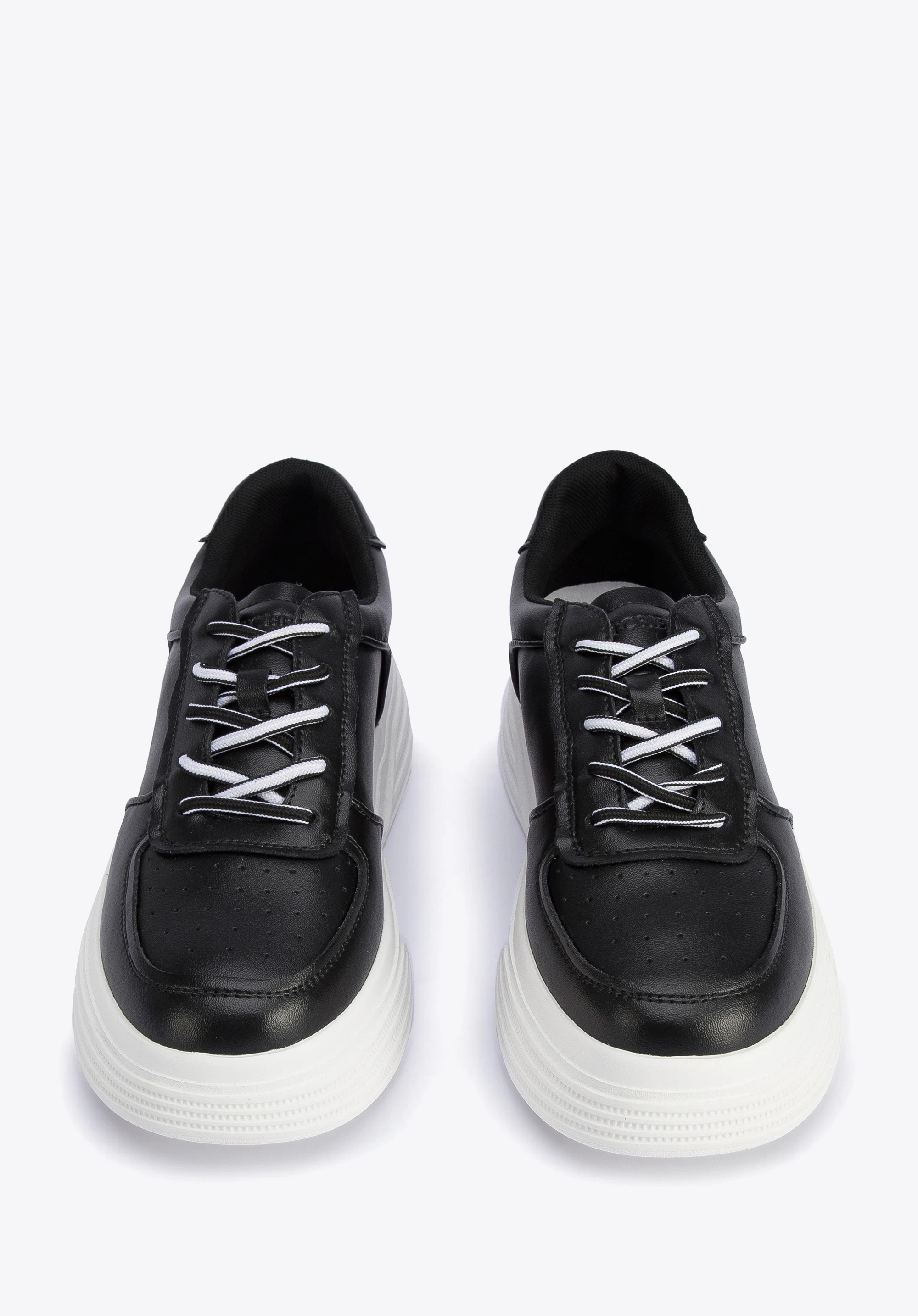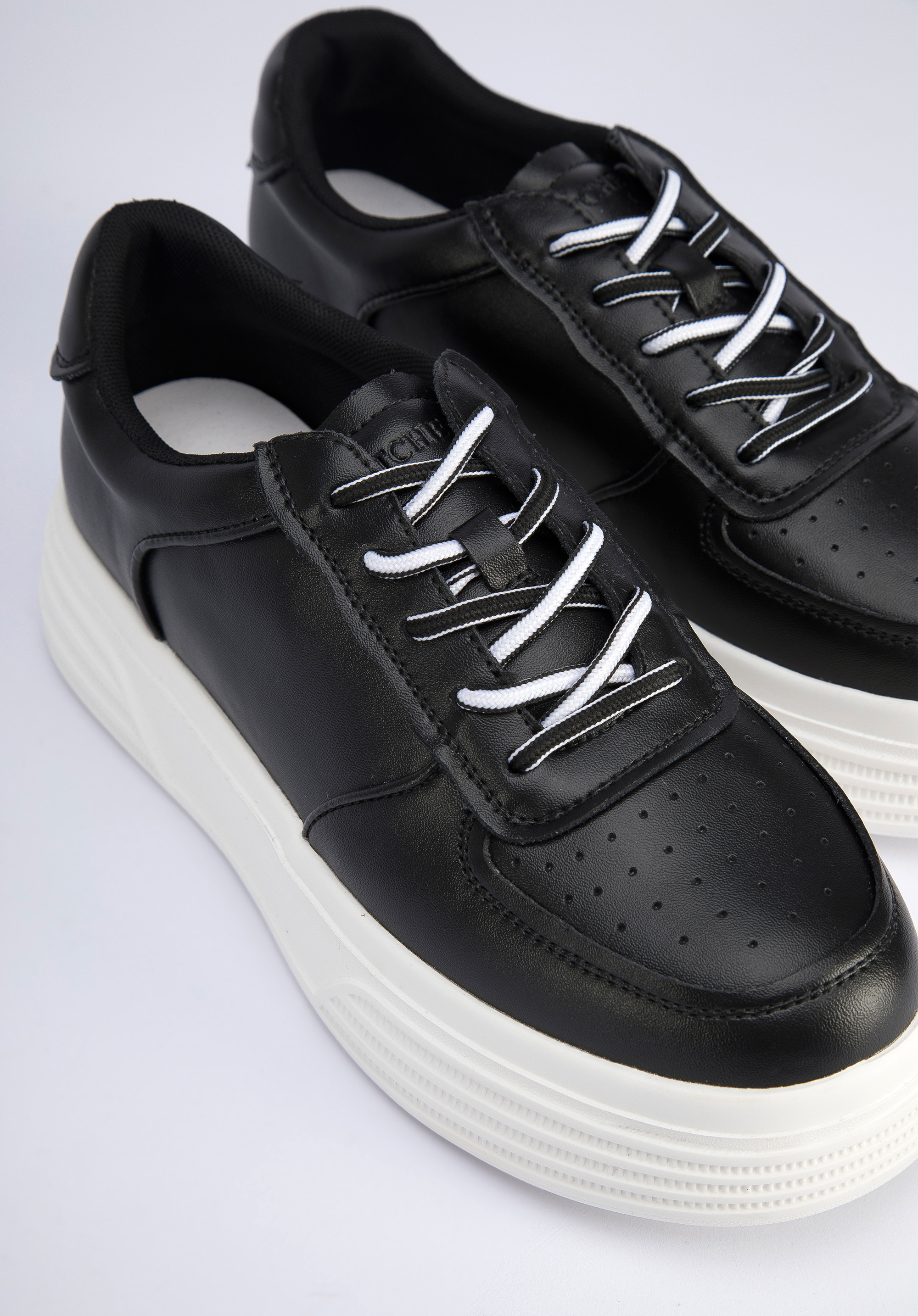 Жіночі шкіряні кросівки на легкій платформі чорно-білі