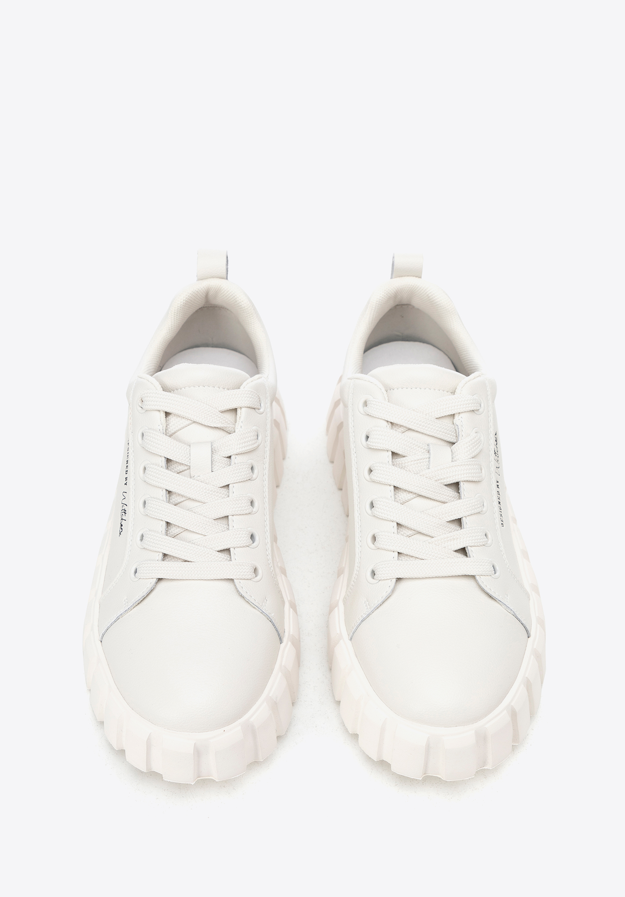 Ці кросівки поєднують класичний стиль із сучасною елегантністю. Виготовлені з натуральної шкіри, вони забезпечують комфорт завдяки м''якій синтетичній підкладці та шкіряній устілці. Гумова підошва на платформі з ребристими краями забезпечує чудове зчеплення та комфорт протягом усього дня. Тонкий логотип збоку додає стриманий декоративний штрих, підкреслюючи характер взуття, не перевантажуючи ваш вигляд.