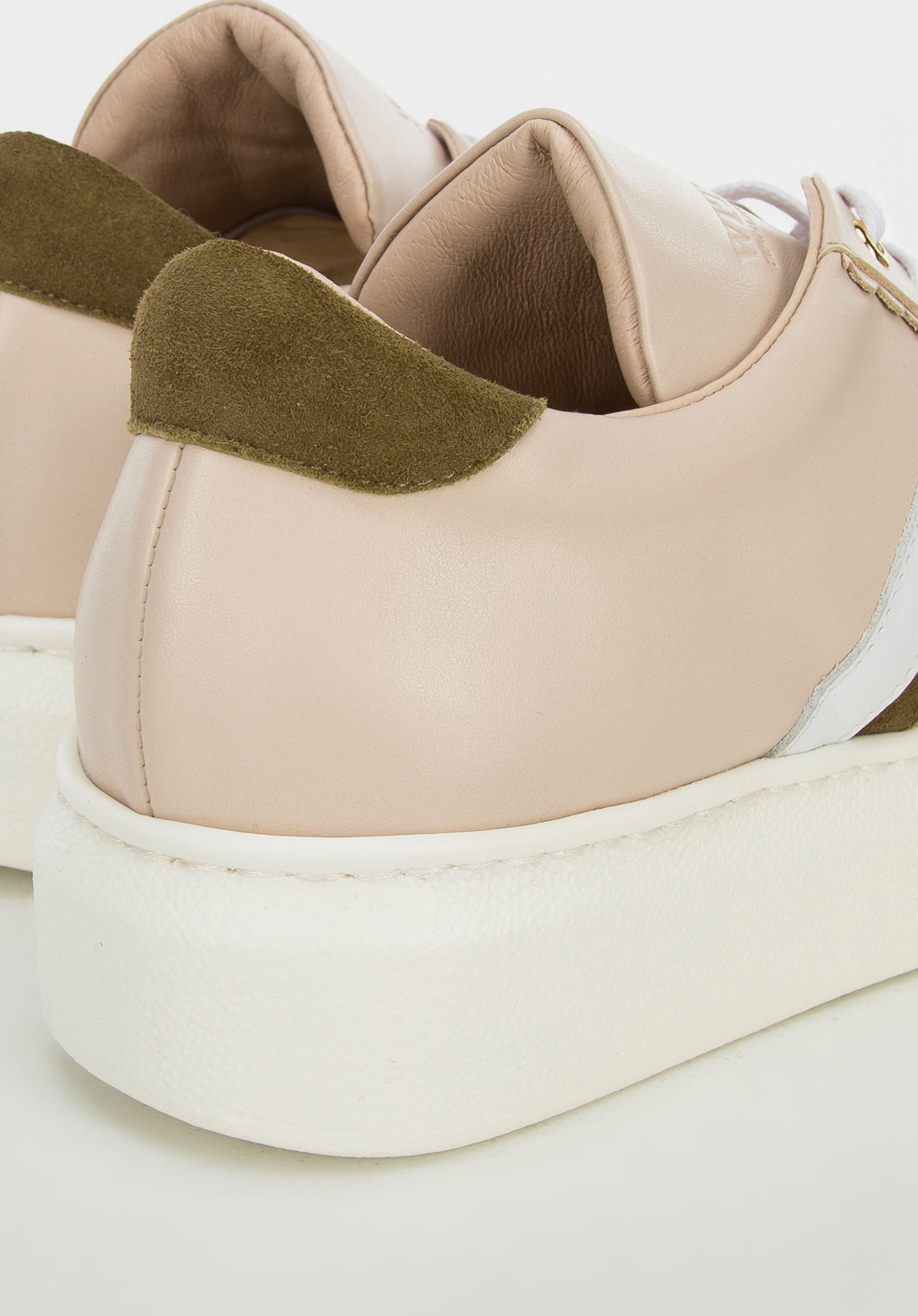 Ці витончені жіночі кросівки доводять, що вам не потрібно вибирати між стилем і комфортом. Вони були пошиті в Польщі зі шкіри найвищої якості, і завдяки ретельній обробці ідеально сидять на нозі. Вони мають класичну форму кросівок, доповнену деталями: шкіряною оборкою вздовж шнурків і контрастними смужками збоку. Ззаду зовні та всередині вставка замши, що ще більше підвищує комфорт носіння. Товста підошва легка і має потрібну висоту для комфортної ходьби у взутті протягом усього дня. Жіночі шкіряні кросівки – це просте і оригінальне взуття для багатьох повсякденних випадків.