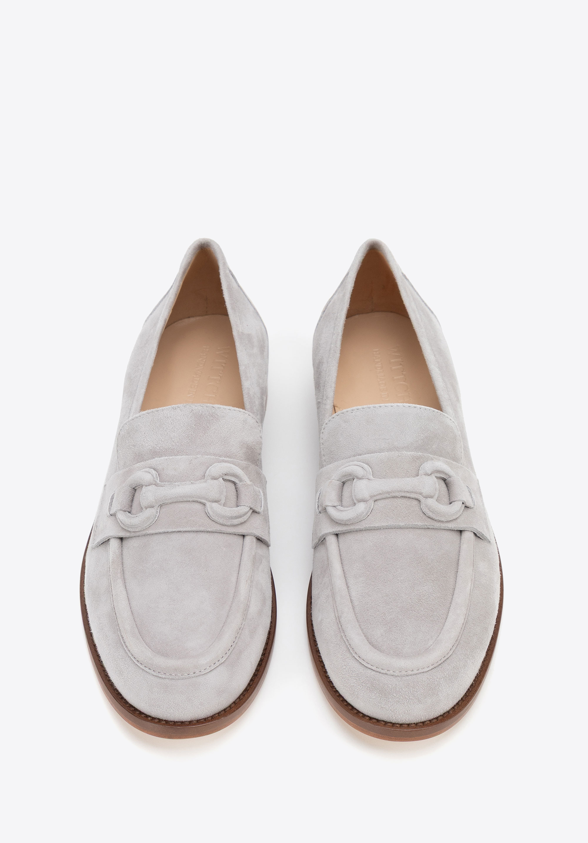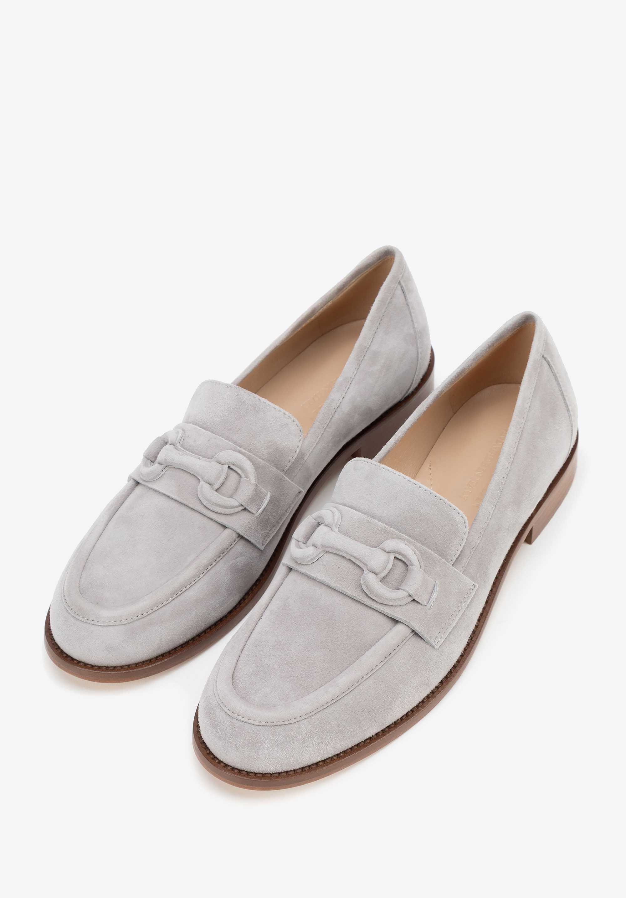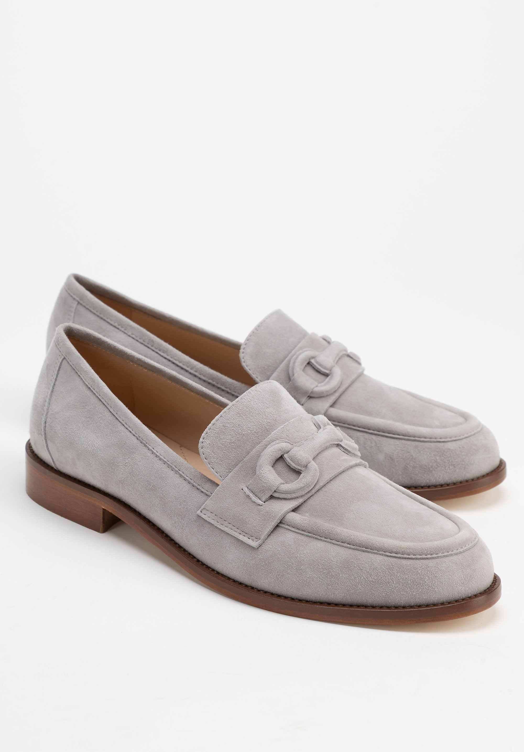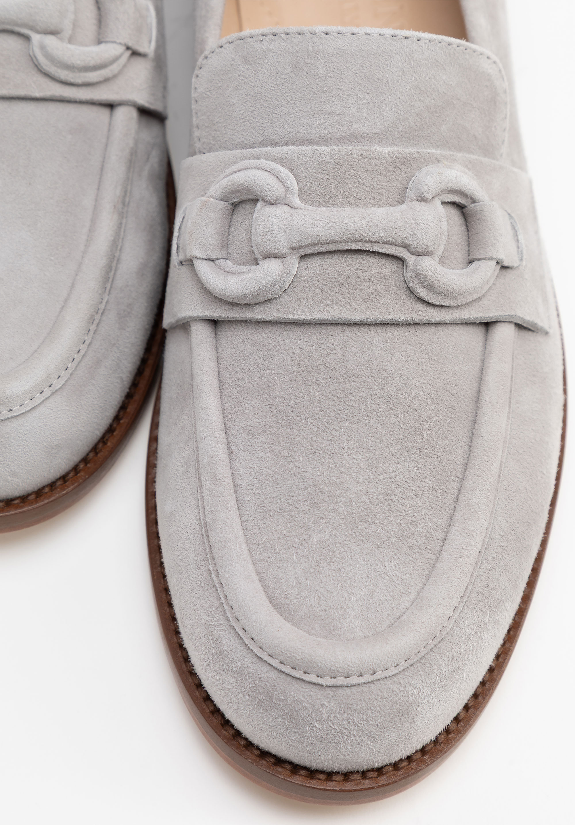 Жіночі шкіряні лофери з витонченою пряжкою Колір: сірий